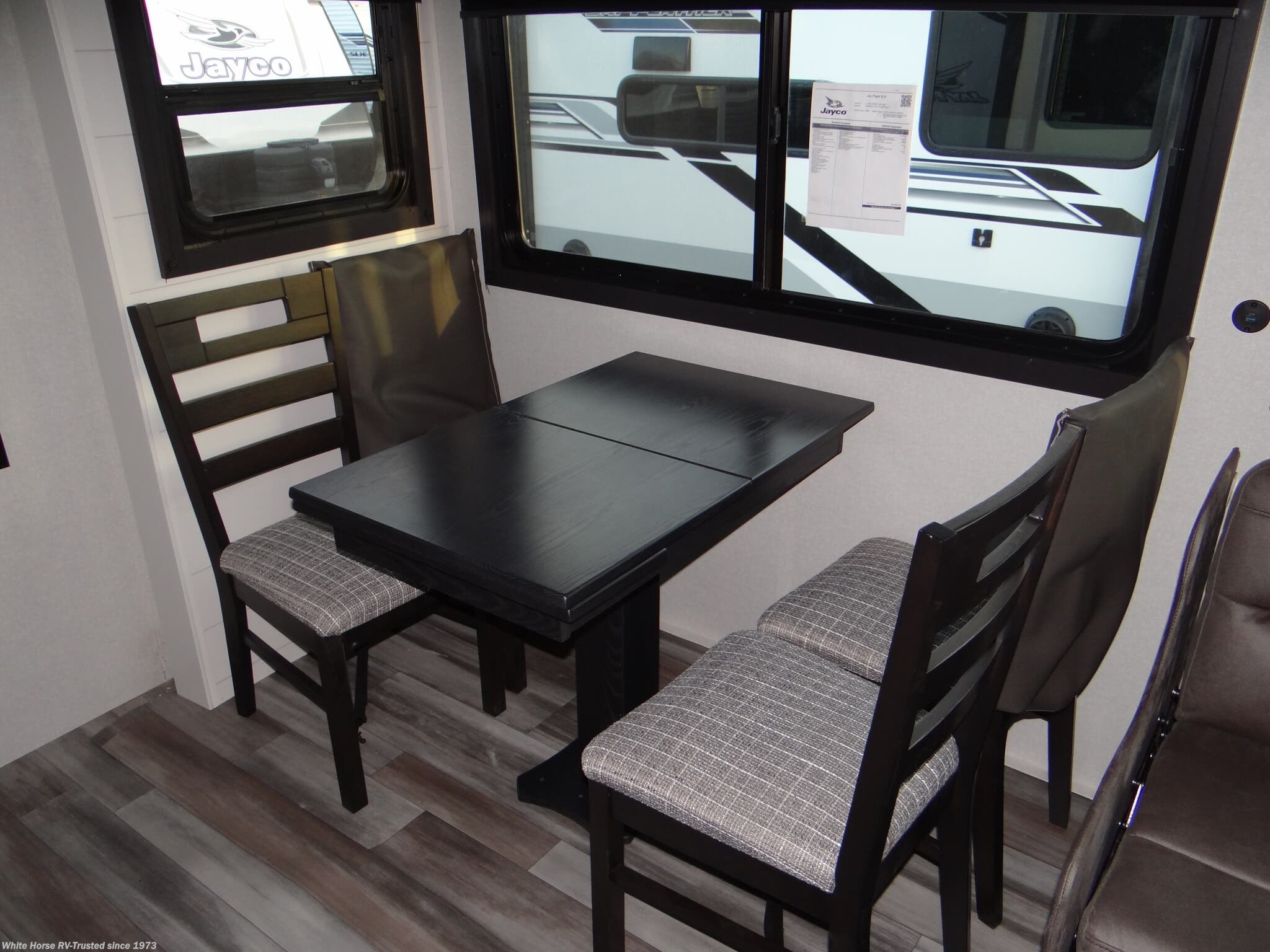 This Stock #J15657 also has the following factory options included: ...Interior Decor Country Linen, 15,000 BTU Roof Mounted AC , & Free Standing Table w/ 4 Chairs all backed by Jayco’s 2+3-year warranty! MSRP $42,452.