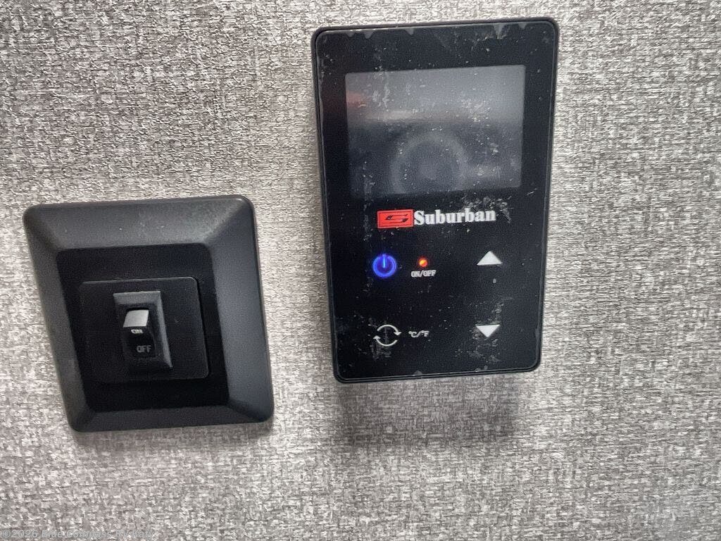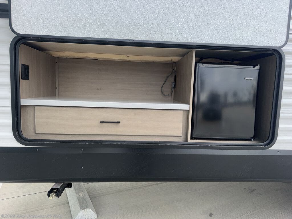 Comfort and fun is waiting for you! This trailer allows the owners to sleep in privacy behind the space saving sliding door on a 60" x 75" queen bed. And the kids or grandkids can sleep on the double-size bunks in the rear next to the full bathroom including a shower. They even have a wardrobe nearby for their things. The slide out jackknife sofa and U-shaped dinette offers more floor space, a place to relax and dine, plus you can play games at the dinette. This model also includes an exterior refrigerator so you can grab a cold drink while under the 16' power awning!