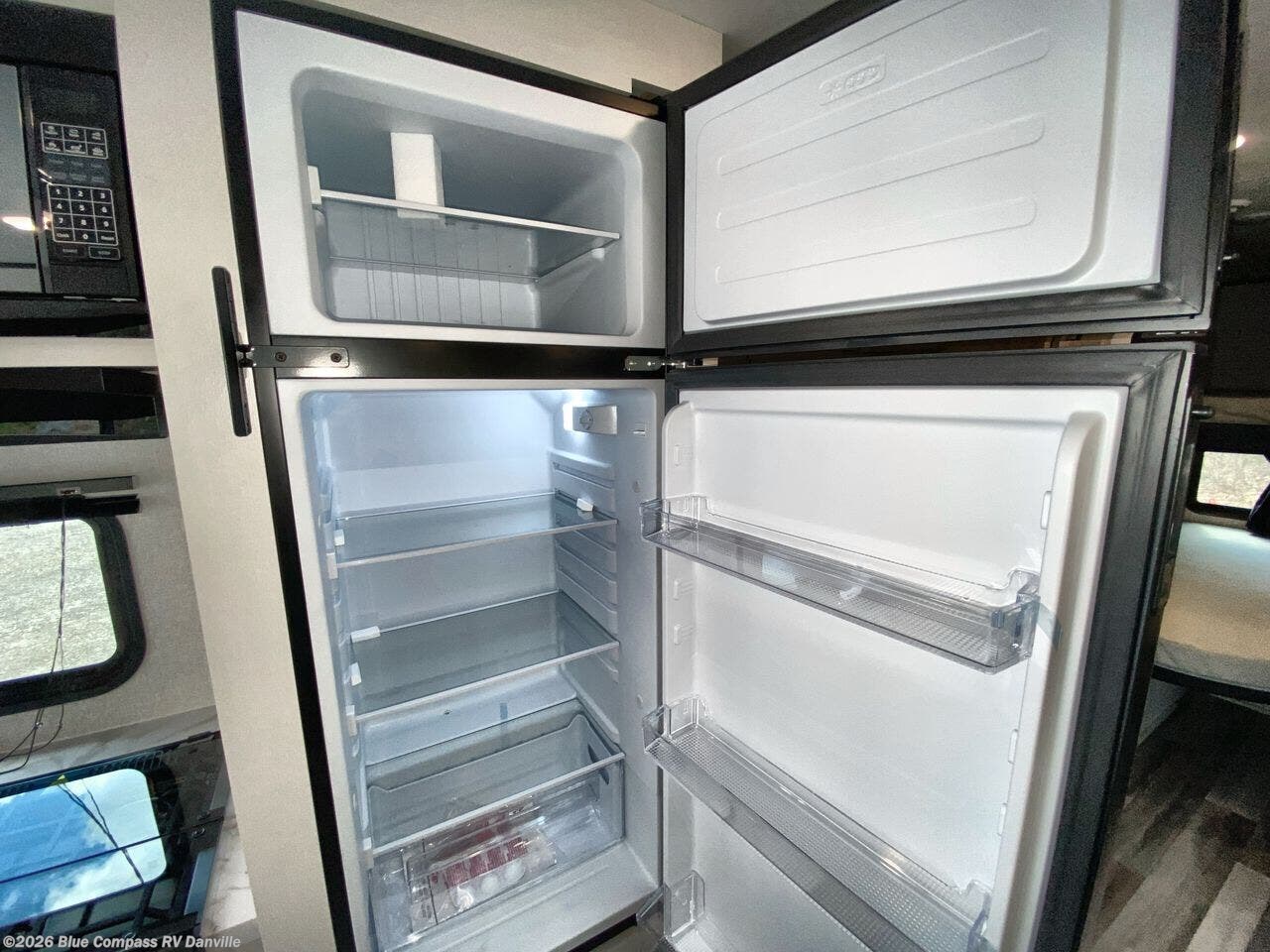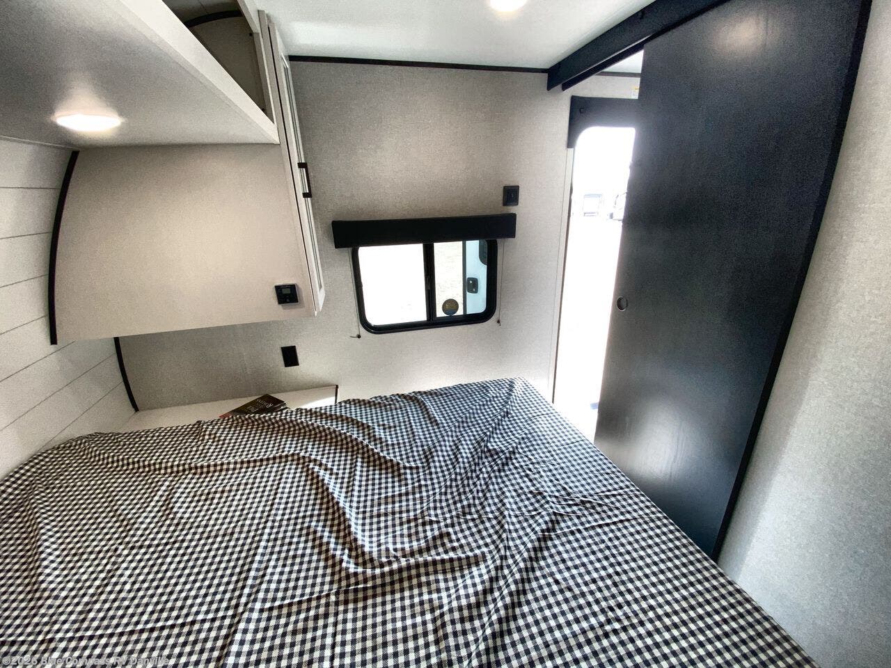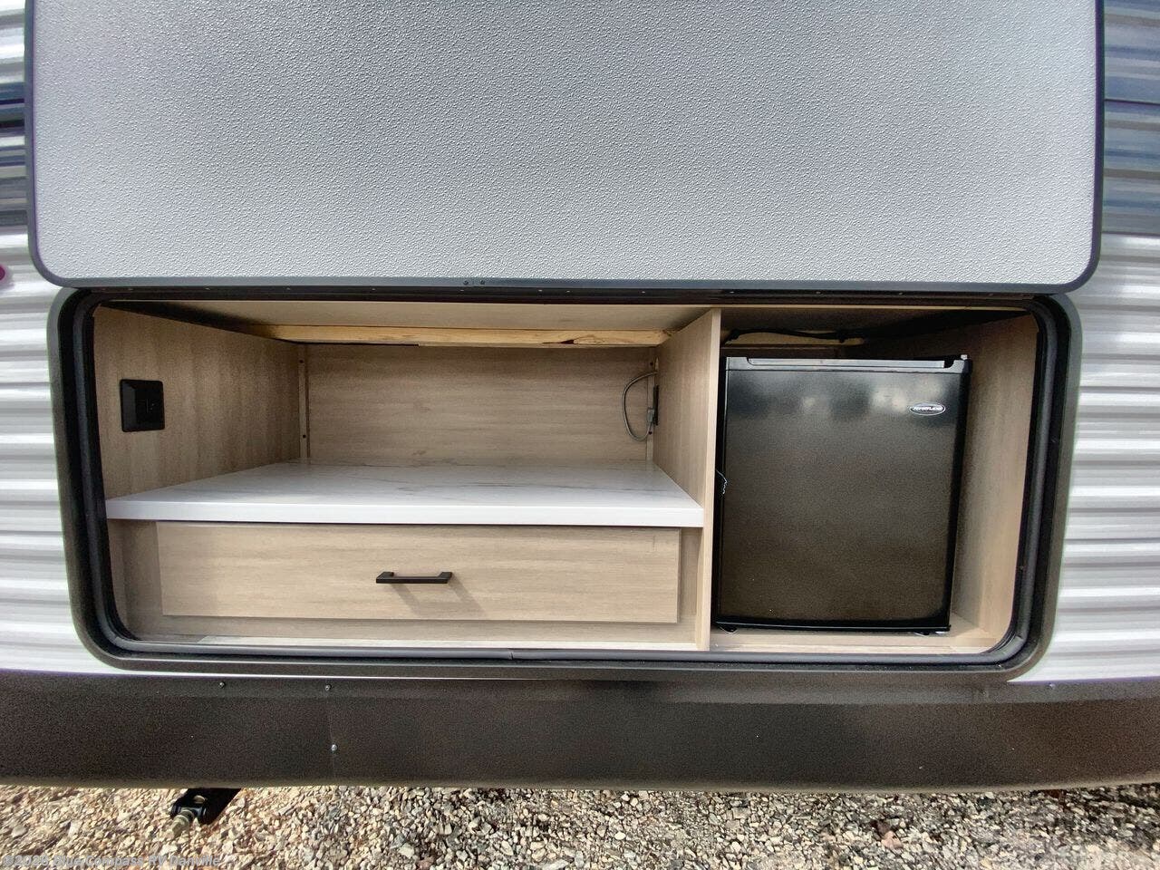 Comfort and fun is waiting for you! This trailer allows the owners to sleep in privacy behind the space saving sliding door on a 60" x 75" queen bed. And the kids or grandkids can sleep on the double-size bunks in the rear next to the full bathroom including a shower. They even have a wardrobe nearby for their things. The slide out jackknife sofa and U-shaped dinette offers more floor space, a place to relax and dine, plus you can play games at the dinette. This model also includes an exterior refrigerator so you can grab a cold drink while under the 16' power awning!