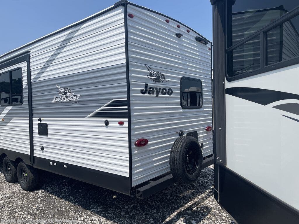 The Jayco Jay Flight SLX travel trailer is quite easy to own because it is lightweight for an easier towing experience. Built on a fully integrated A-frame with galvanized-steel, impact-resistant wheel wells, the Jay Flight SLX has quality at its very foundation. That quality continues on to the electric self-adjusting brakes, easy-lube hubs, Magnum Truss roof system, and LP quick connect. Some of what the mandatory Customer Value Package includes is backup camera prep, Keyed-Alike entry and baggage doors, marine grade exterior speakers, and an on-demand tankless water heater.
