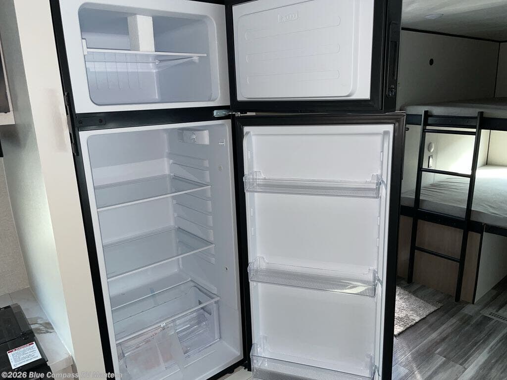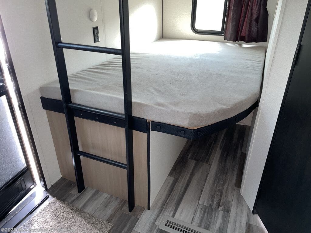 Pack your bags and load up the whole family for a fun camping experience in this travel trailer! It has a front private bedroom with a 60" x 75" queen bed to lay your head on at night, and a set of 48" x 75" bunk beds for the kids to sleep. You could even transform the U-shaped dinette and jackknife sofa slide into extra sleeping spaces for some cousins to tag along. The front bedroom also has one of the dual entry doors to the unit so you can slip away for an early morning fishing trip without waking the rest of the group. Prepare your best home cooked meals with the three burner cooktop, and stay hydrated even outside thanks to the outside refrigerator!