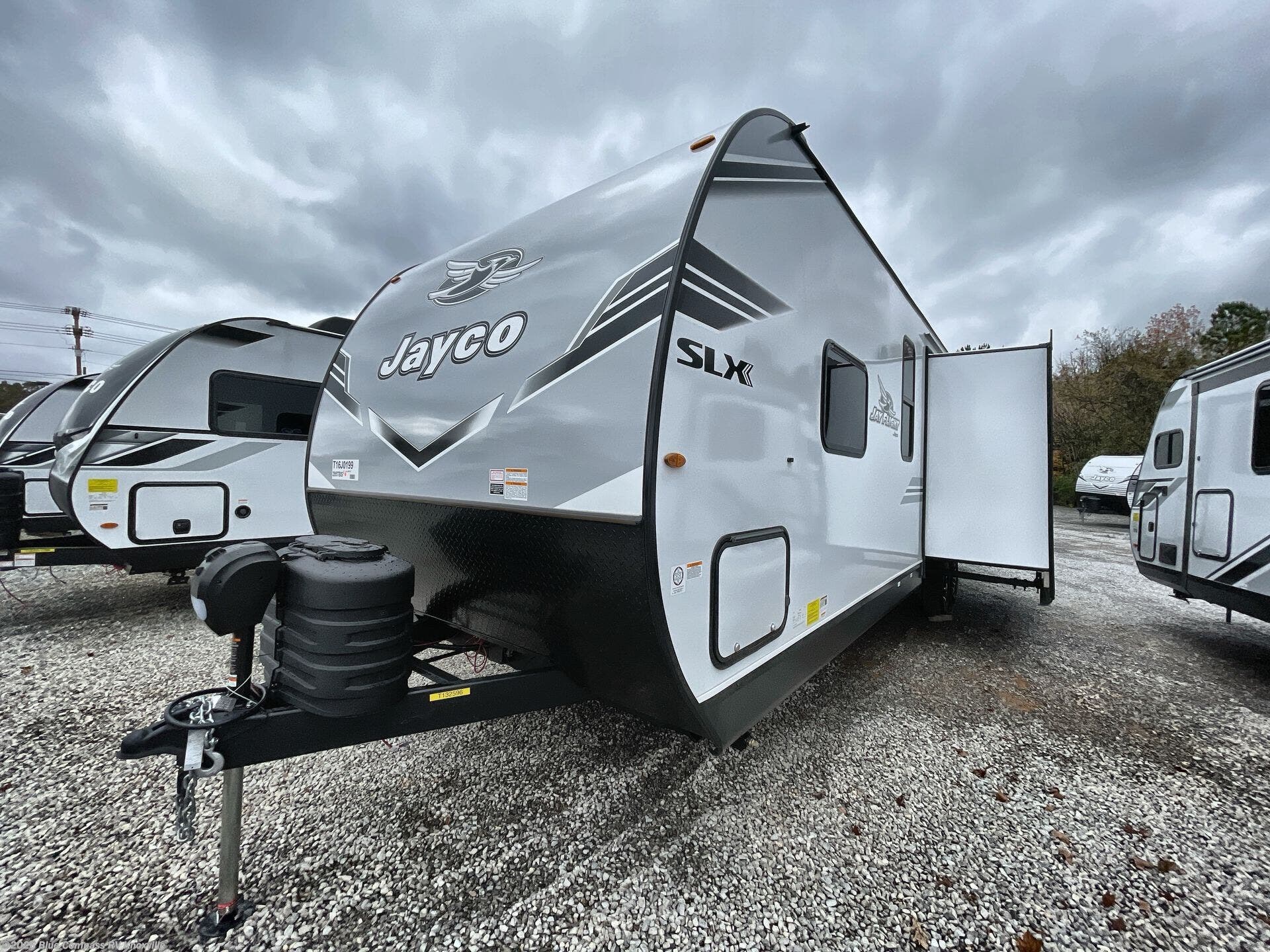 The Jayco Jay Flight SLX travel trailer is quite easy to own because it is lightweight for an easier towing experience. Built on a fully integrated A-frame with galvanized-steel, impact-resistant wheel wells, the Jay Flight SLX has quality at its very foundation. That quality continues on to the electric self-adjusting brakes, easy-lube hubs, Magnum Truss roof system, and LP quick connect. Some of what the mandatory Customer Value Package includes is backup camera prep, Keyed-Alike entry and baggage doors, and an on-demand tankless water heater.