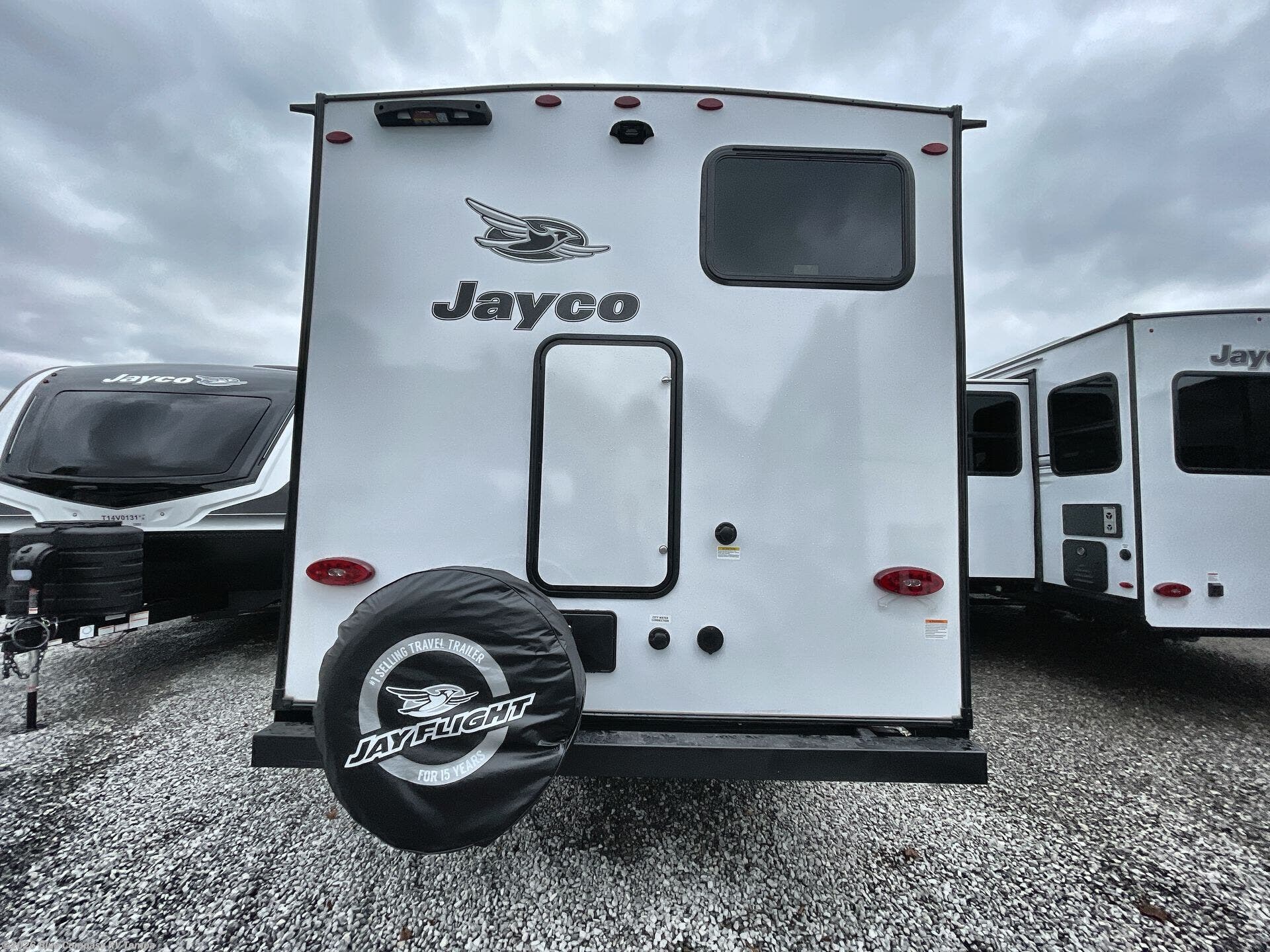 The Jayco Jay Flight SLX travel trailer is quite easy to own because it is lightweight for an easier towing experience. Built on a fully integrated A-frame with galvanized-steel, impact-resistant wheel wells, the Jay Flight SLX has quality at its very foundation. That quality continues on to the electric self-adjusting brakes, easy-lube hubs, Magnum Truss roof system, and LP quick connect. Some of what the mandatory Customer Value Package includes is backup camera prep, Keyed-Alike entry and baggage doors, and an on-demand tankless water heater.