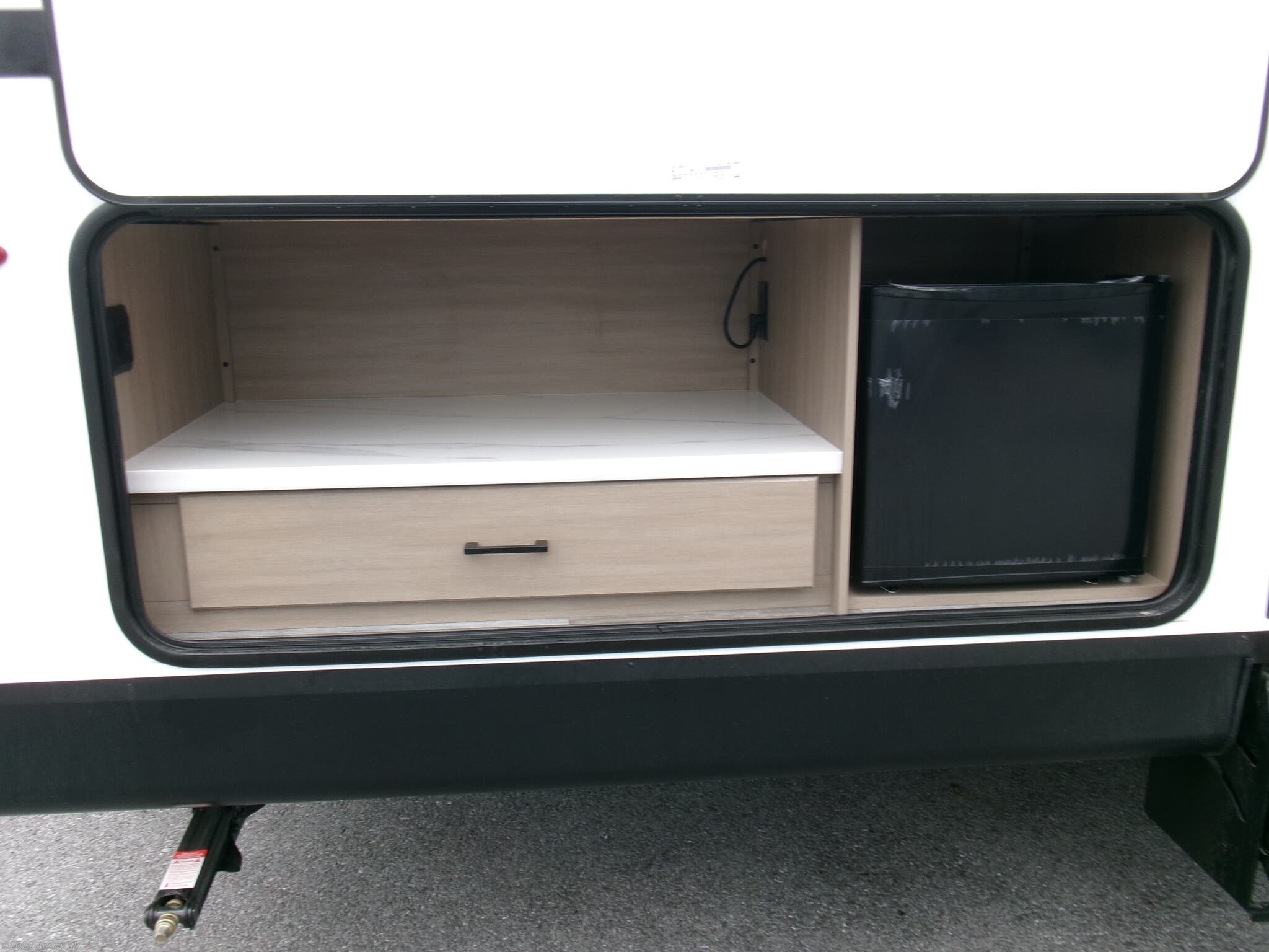 - Exterior shower and leveling jacks for quick campsite setup