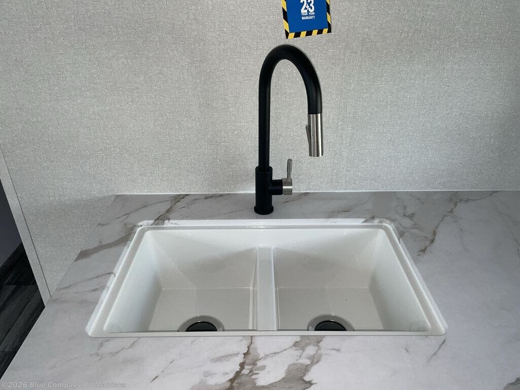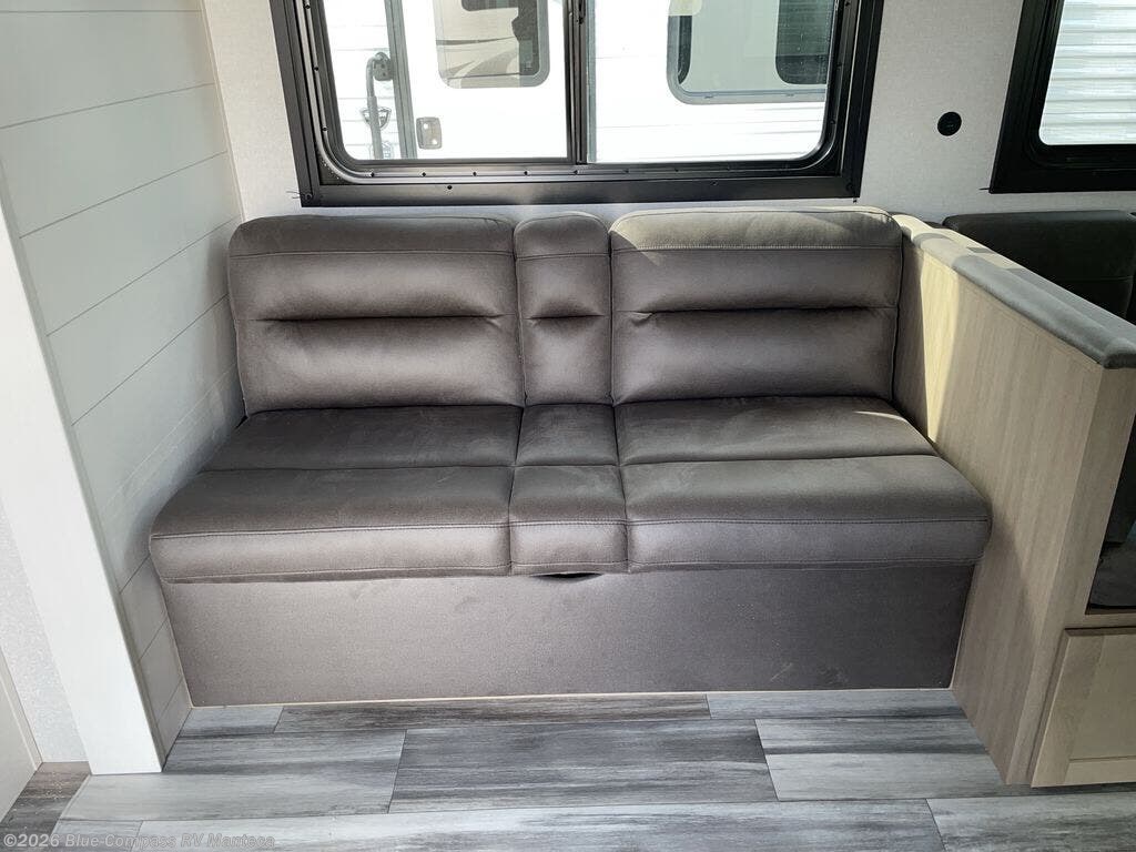 It's time to ditch that old tent and upgrade to this spacious travel trailer! The little ones or your guests will love the double-size bunks in the rear bunkhouse, along with a half bath and storage space for their things. You'll enjoy the front private bedroom all to yourselves with a queen bed and dual wardrobes, and the full bath is close by for easy nighttime use. A U-shaped dinette slide and sofa in the main living area provide your crew with space to relax and dine together, and the fully equipped kitchen lets you cook up your best meals. Outside, you'll find exterior storage, a 20' power awning, plus an outdoor kitchen to enjoy a sunrise breakfast!