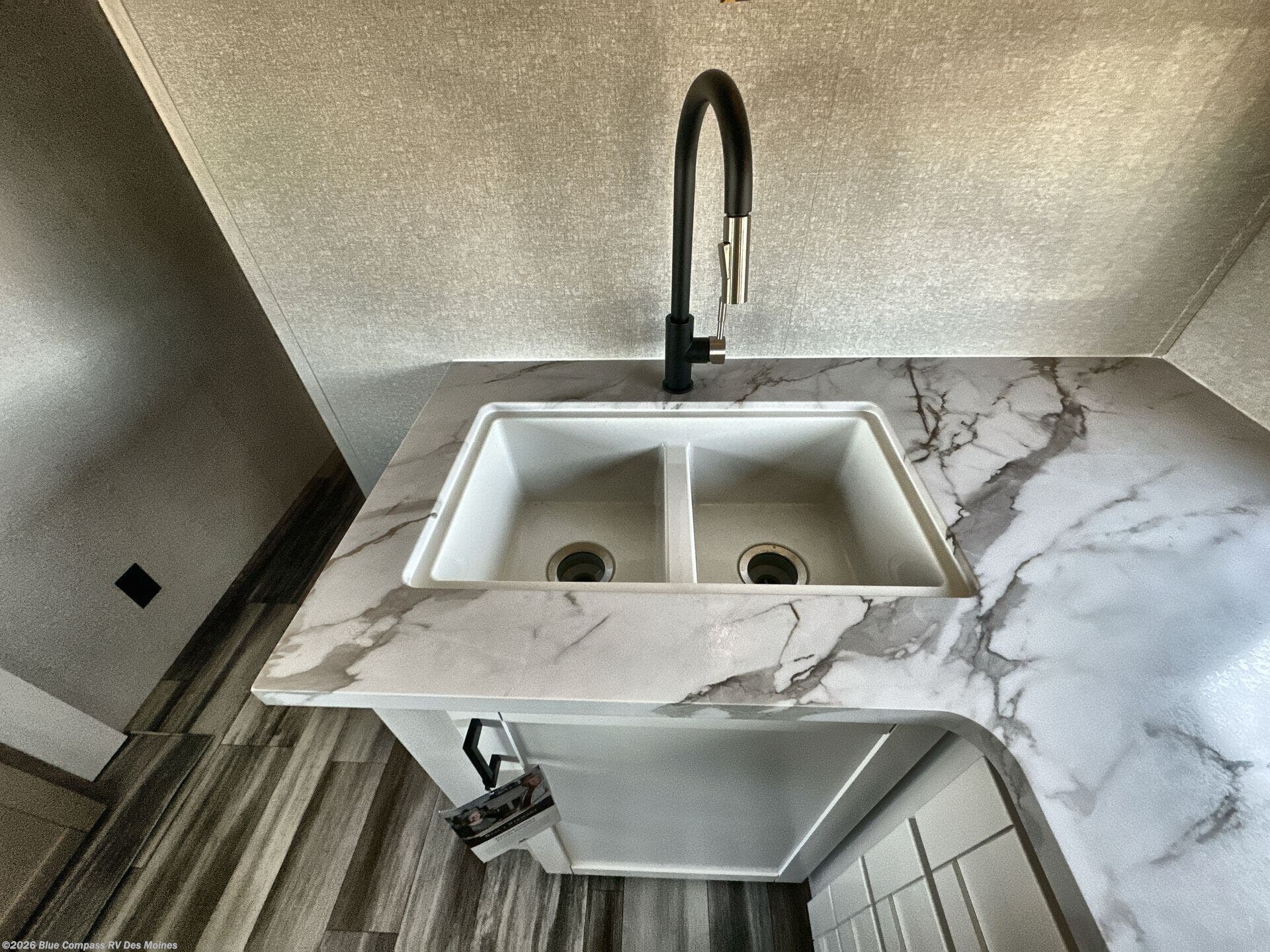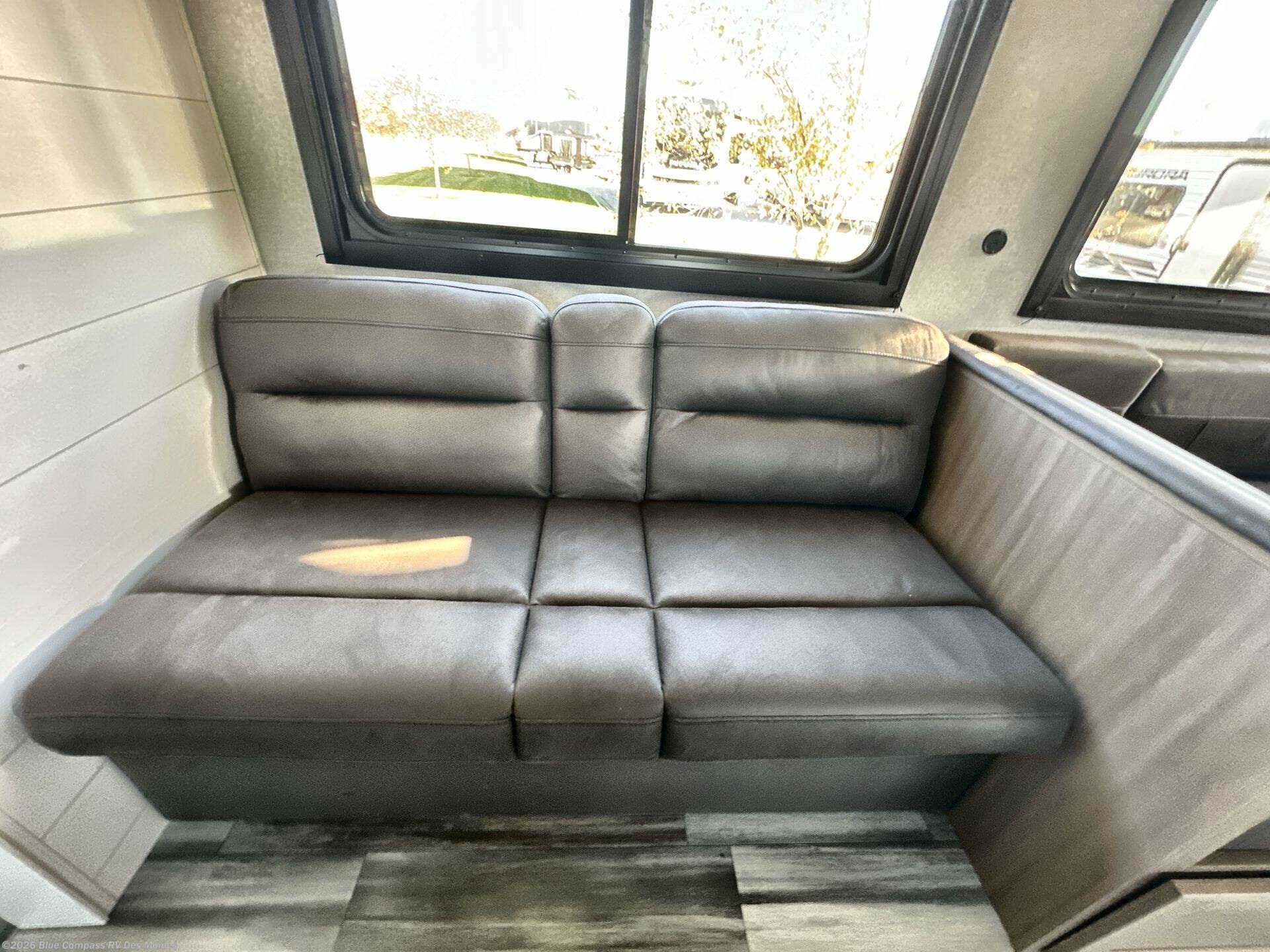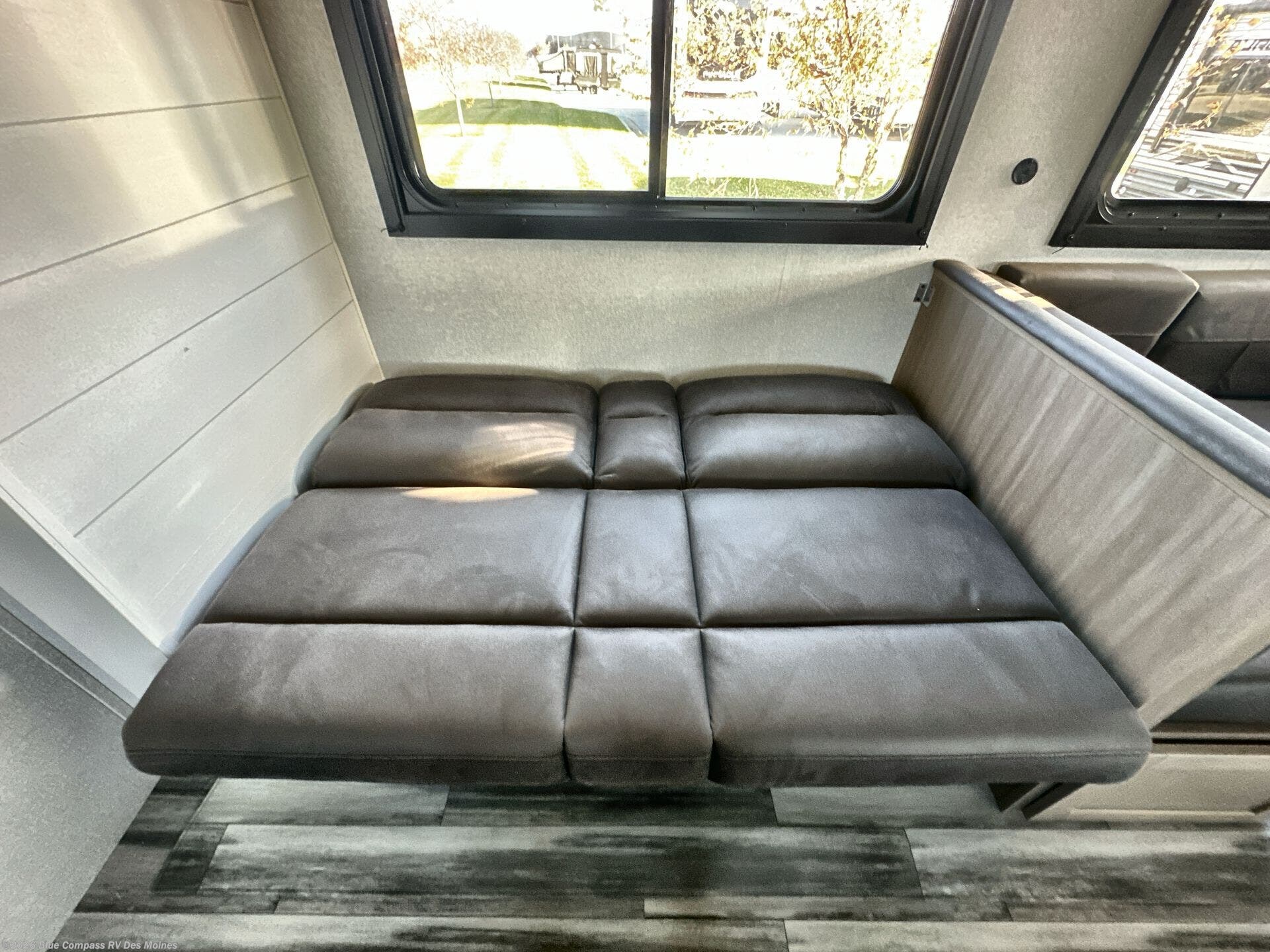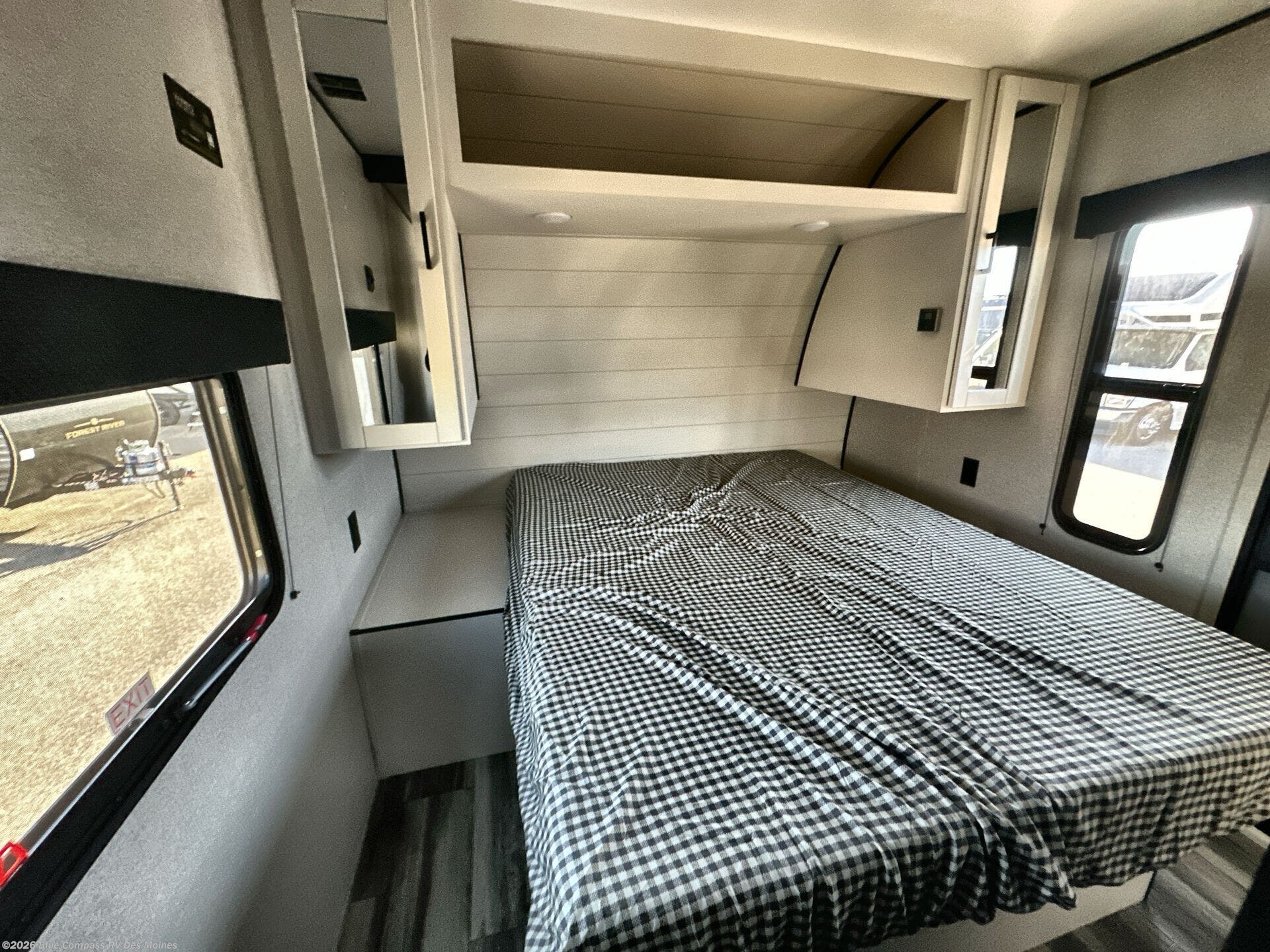 It's time to ditch that old tent and upgrade to this spacious travel trailer! The little ones or your guests will love the double-size bunks in the rear bunkhouse, along with a half bath and storage space for their things. You'll enjoy the front private bedroom all to yourselves with a queen bed and dual wardrobes, and the full bath is close by for easy nighttime use. A U-shaped dinette slide and sofa in the main living area provide your crew with space to relax and dine together, and the fully equipped kitchen lets you cook up your best meals. Outside, you'll find exterior storage, a 20' power awning, plus an outdoor kitchen to enjoy a sunrise breakfast!