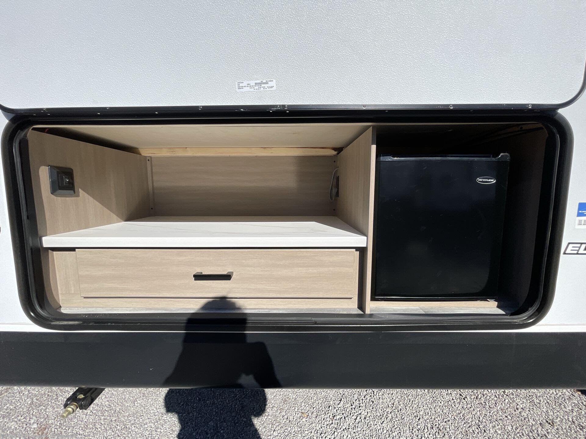 It's time to ditch that old tent and upgrade to this spacious travel trailer! The little ones or your guests will love the double-size bunks in the rear bunkhouse, along with a half bath and storage space for their things. You'll enjoy the front private bedroom all to yourselves with a queen bed and dual wardrobes, and the full bath is close by for easy nighttime use. A U-shaped dinette slide and sofa in the main living area provide your crew with space to relax and dine together, and the fully equipped kitchen lets you cook up your best meals. Outside, you'll find exterior storage, a 20' power awning, plus an outdoor kitchen to enjoy a sunrise breakfast!