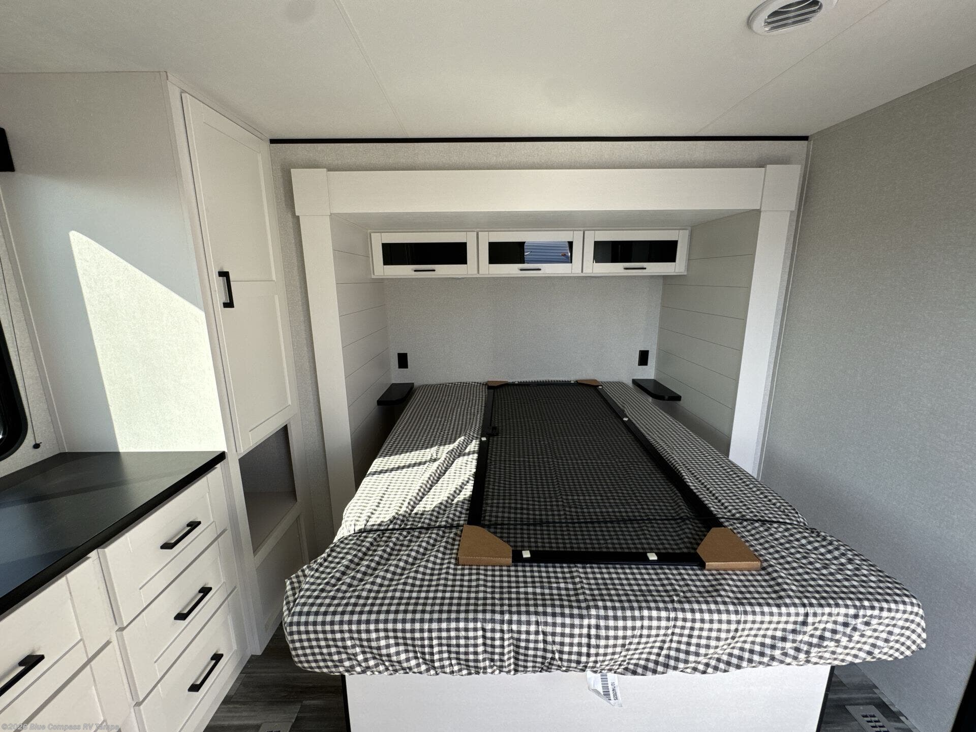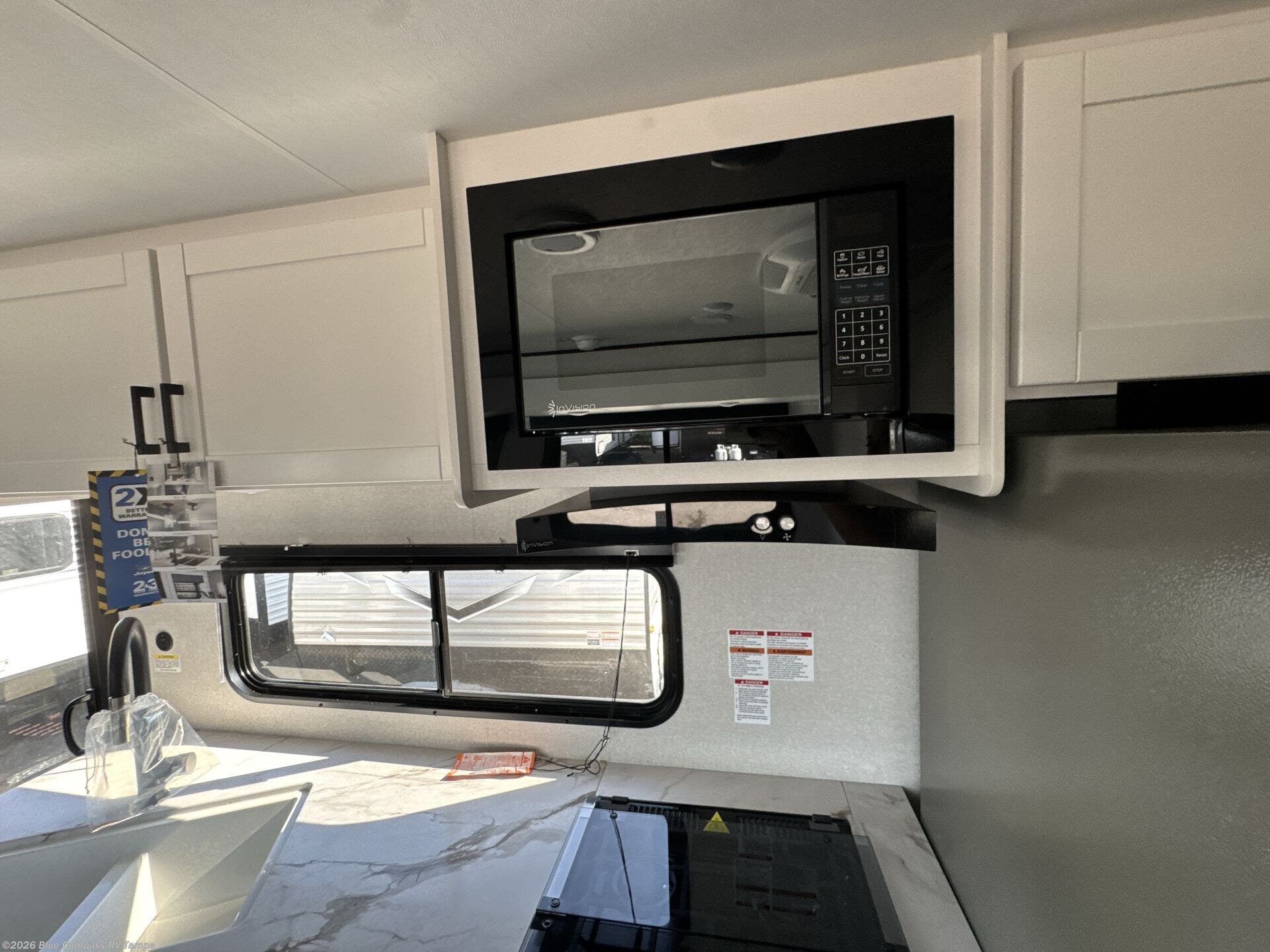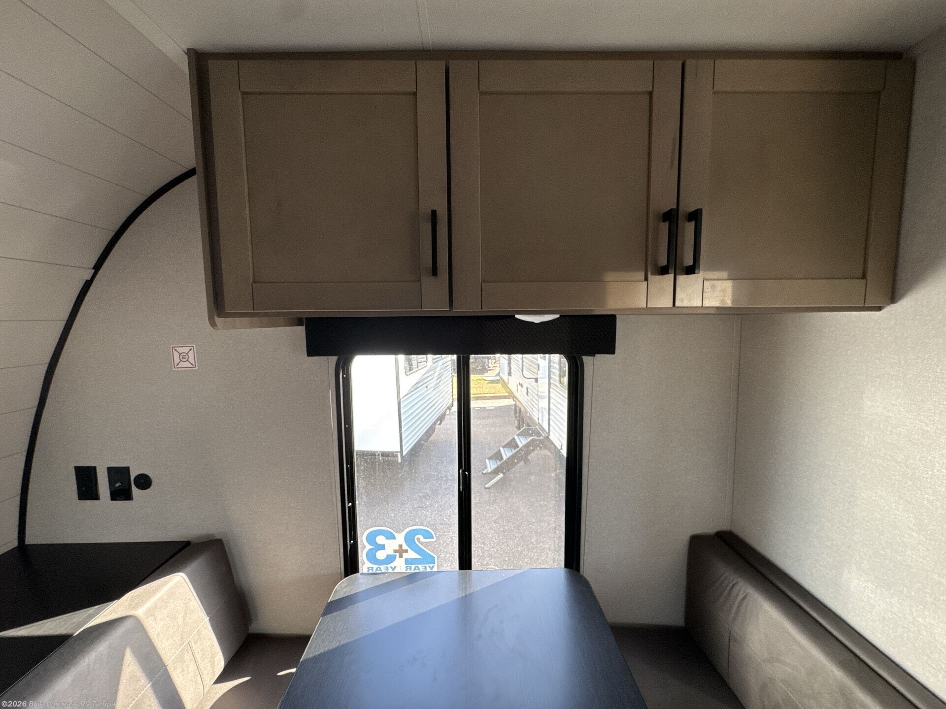 With two private bedrooms, everyone will have a comfortable place to sleep in this travel trailer! The front private bedroom has a 60" x 75" queen bed with wardrobes on either side and the rear private bedroom has a 60" x 80" queen bed slide with a dresser, a wardrobe, one of the exit/entrance doors, and an entrance into the walk-through bathroom which has a radius shower for everyone to stay squeaky clean. The patio doors not only make it easy to enter and exit the unit, but also bring in tons of natural lighting. After you have prepared a delicious home cooked meal, you can can head to the U-shaped dinette to enjoy it there comfortably then relax on the Jack-knife sofa across from the entertainment center!