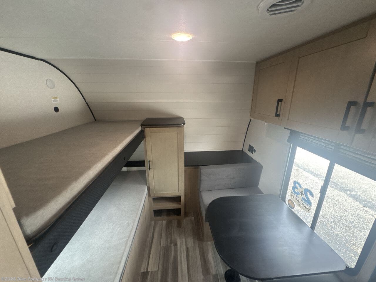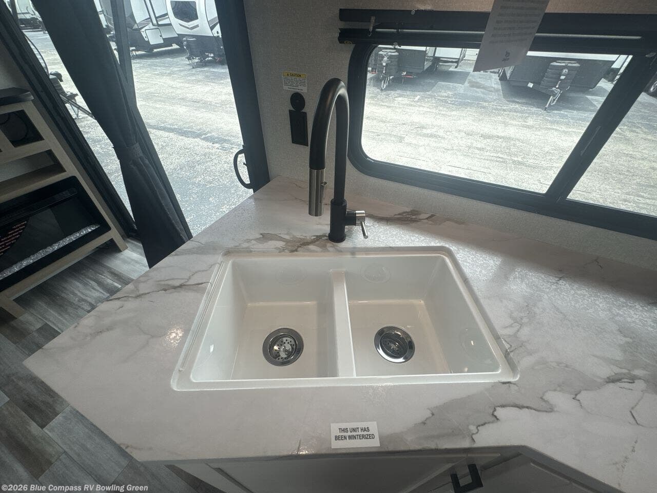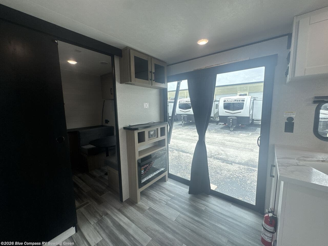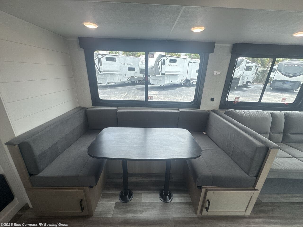 With two private bedrooms, everyone will have a comfortable place to sleep in this travel trailer! The front private bedroom has a 60" x 75" queen bed with wardrobes on either side and the rear private bedroom has a 60" x 80" queen bed slide with a dresser, a wardrobe, one of the exit/entrance doors, and an entrance into the walk-through bathroom which has a radius shower for everyone to stay squeaky clean. The patio doors not only make it easy to enter and exit the unit, but also bring in tons of natural lighting. After you have prepared a delicious home cooked meal, you can can head to the U-shaped dinette to enjoy it there comfortably then relax on the Jack-knife sofa across from the entertainment center!