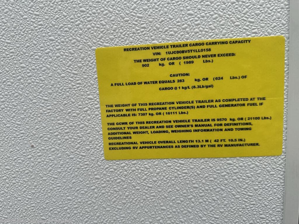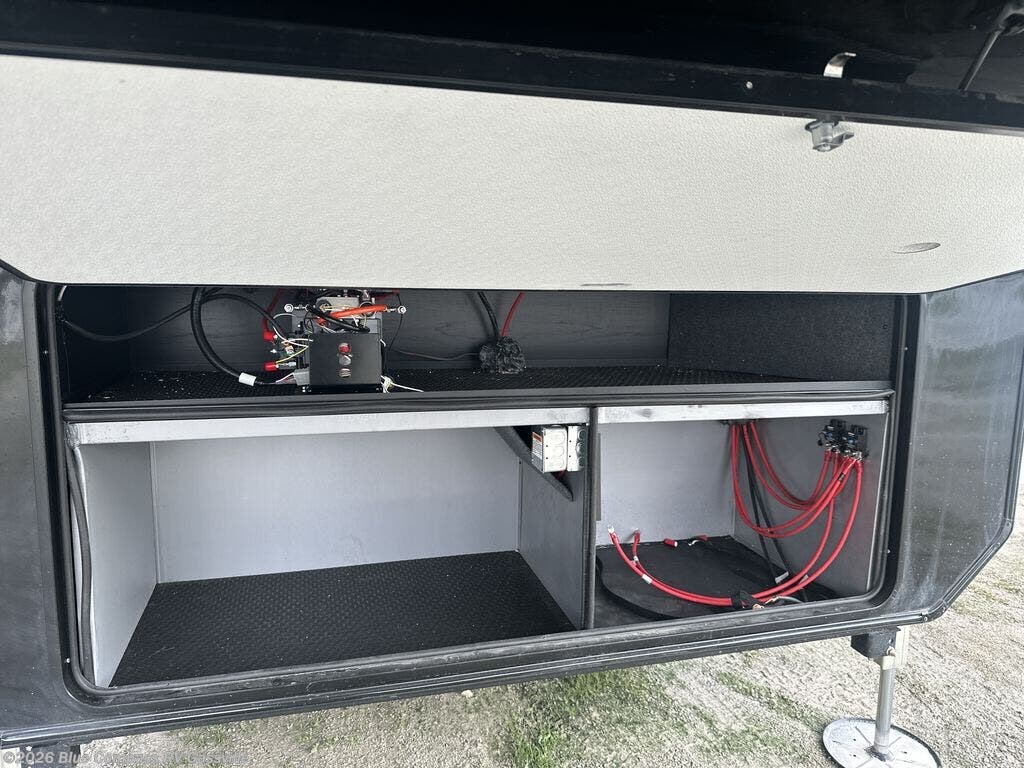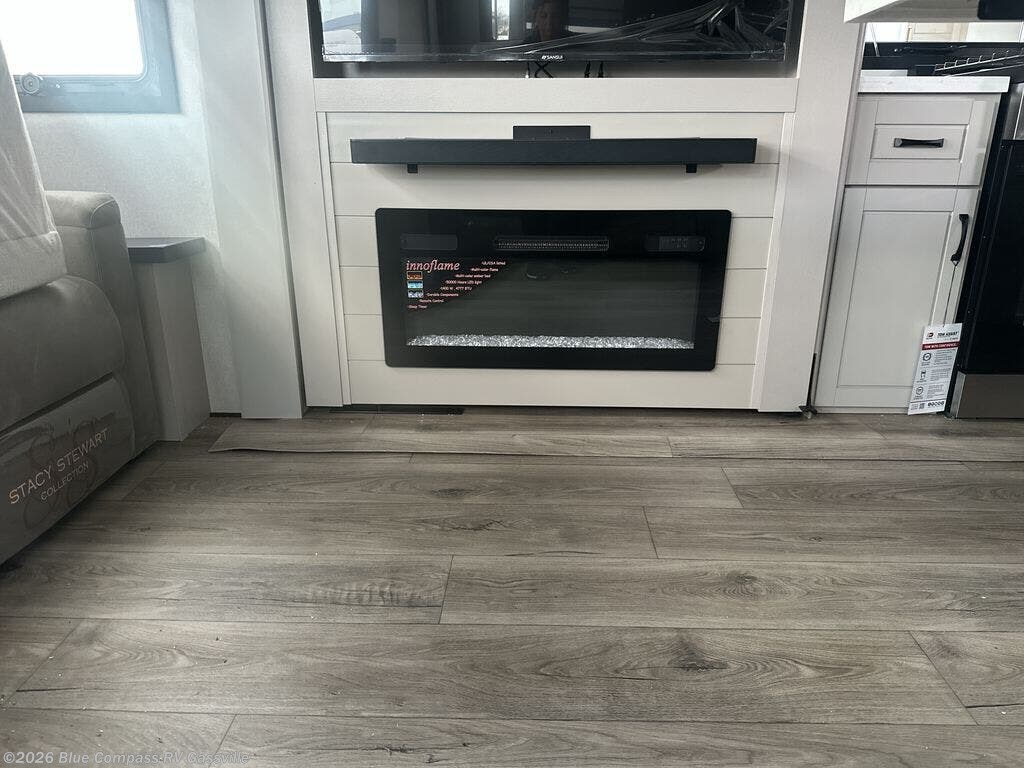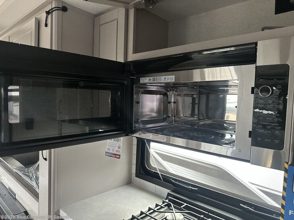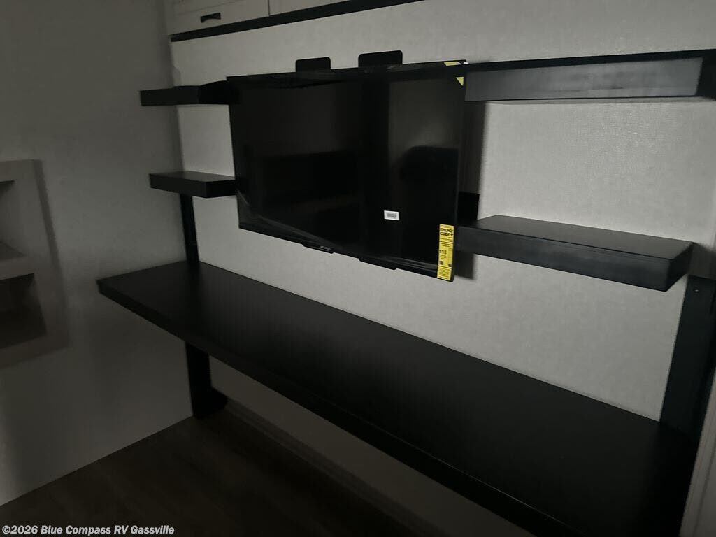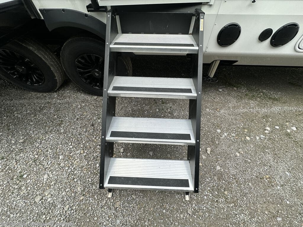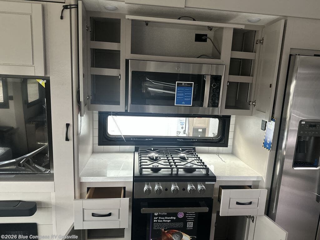 You can work from anywhere with this fifth wheel thanks to the middle bonus room that offers a desk with TV above, a tri-fold sofa with removable table, a flip-up bunk and a murphy bed. This multi-use room works for just about anything including an extra living area and bunkhouse. The linen cabinet in the full bathroom, the drawers / hamper in the bedroom, and the overhead cabinets plus multiple shelves throughout the floorplan allows you to bring whatever you want. Enjoy cooking in the kitchen that provides an island with a flip-up butcher block, a residential refrigerator, a pantry, and everything you need to keep everyone fed. The theater seats and the tri-fold sofa are great places to sit while watching the 4K Smart LED HDTV with fully digital HDMI output and home entertainment system with subwoofer.