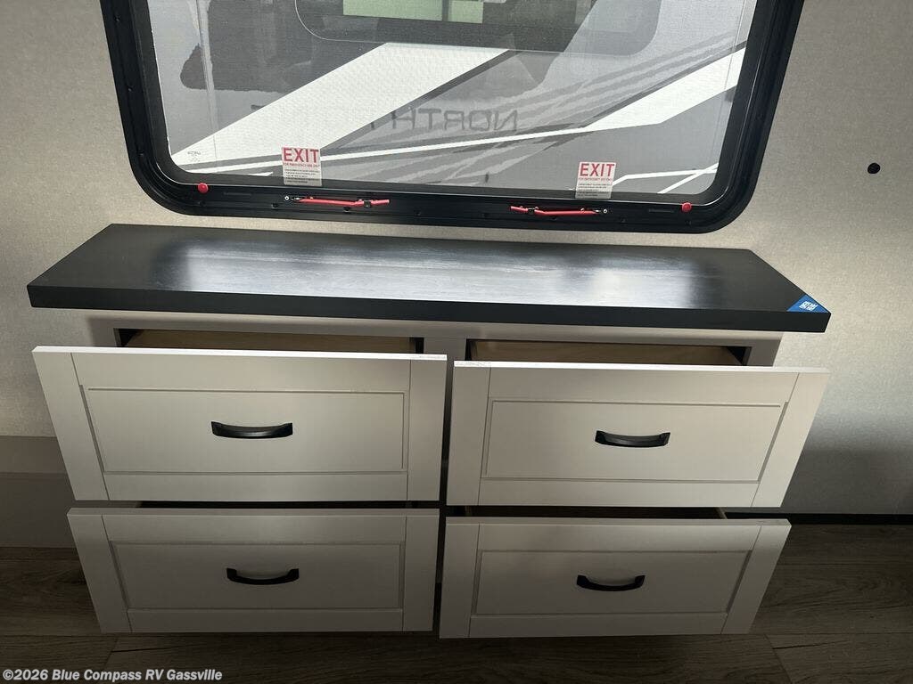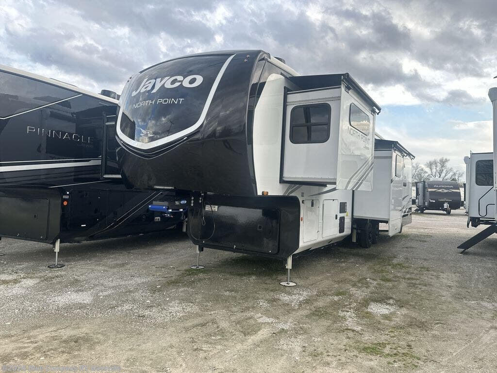 With any North Point fifth wheel by Jayco you begin with a strong foundation with a custom frame, designed and sized specifically to best support each unit. Constructed with Stronghold VBL™ aluminum framed, vacuum bond laminated walls and the Magnum Truss™ XL6™ roof system with an Alpha roof membrane system, which is the strongest tested roof in the industry. The 5-Star Handling package is included with H-rated tires with TPMS, a MORryde rubber pin box, Dexter axles with Nev-R-Adjust brakes, MORryde CRE-3000 rubberized suspension and wet bolt fasteners and bronze bushings. The interior has handcrafted hardwood glazed doors and drawers, vinyl flooring throughout, an integrated under-mount sink in the main bathroom, plus so much more you just have to see one to believe it all!