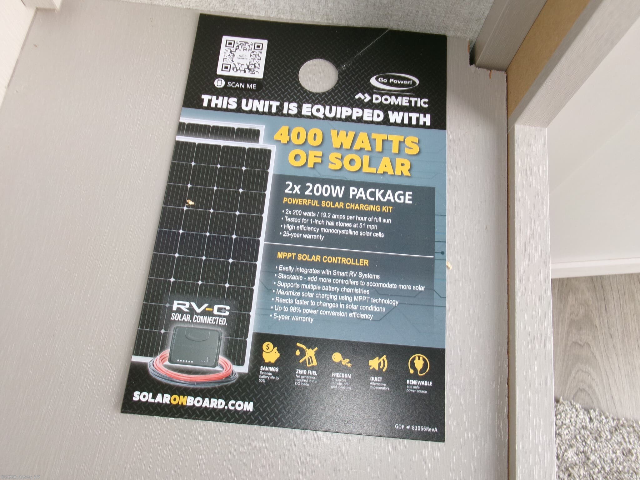 3rd A/C - 15,000 BTU A/C in Living Room, Generator LP Prep, Slideout Awnings, Back-Up/Side/Entry Door Observation Camera Prep, Tinted Safety Glass Windows, Roof Ladder, Electric Drum Brakes, King Bed