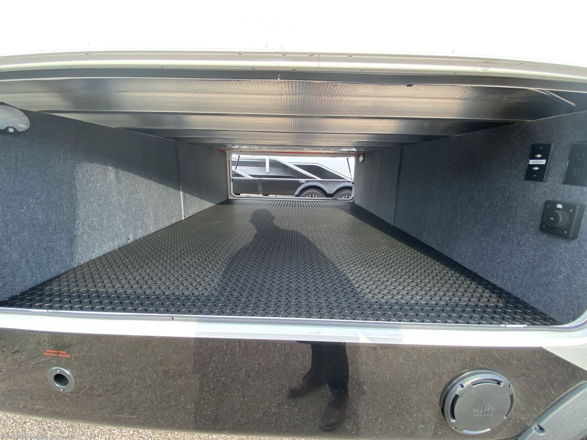 Entertainment can be found throughout this fifth wheel from the front living area with a 50" Smart LED HDTV with fully digital HDMI output and home entertainment system with subwoofer including a fireplace below that you can enjoy while relaxing on theater seats and two tri-fold sofas, a 32" TV in the middle kitchen and there is a bedroom 32" TV. You might even like to add the tailgate TV option along the exterior. Back inside the kitchen, the cook will love the center island, the pantry, the residential refrigerator, and the roll-top dinette. The half bath is a few steps away as an added convenience. The master bedroom includes a king bed slide, a bench, two wardrobes and a sliding door into the bathroom which offers two sinks, a space prepped for a washer/dryer option, and a walk-in shower. And don't forget about the exterior features such as the outside kitchen for more choices when making meals, the storage for your outdoor gear and chairs, and two awnings with integrated LED lighting.