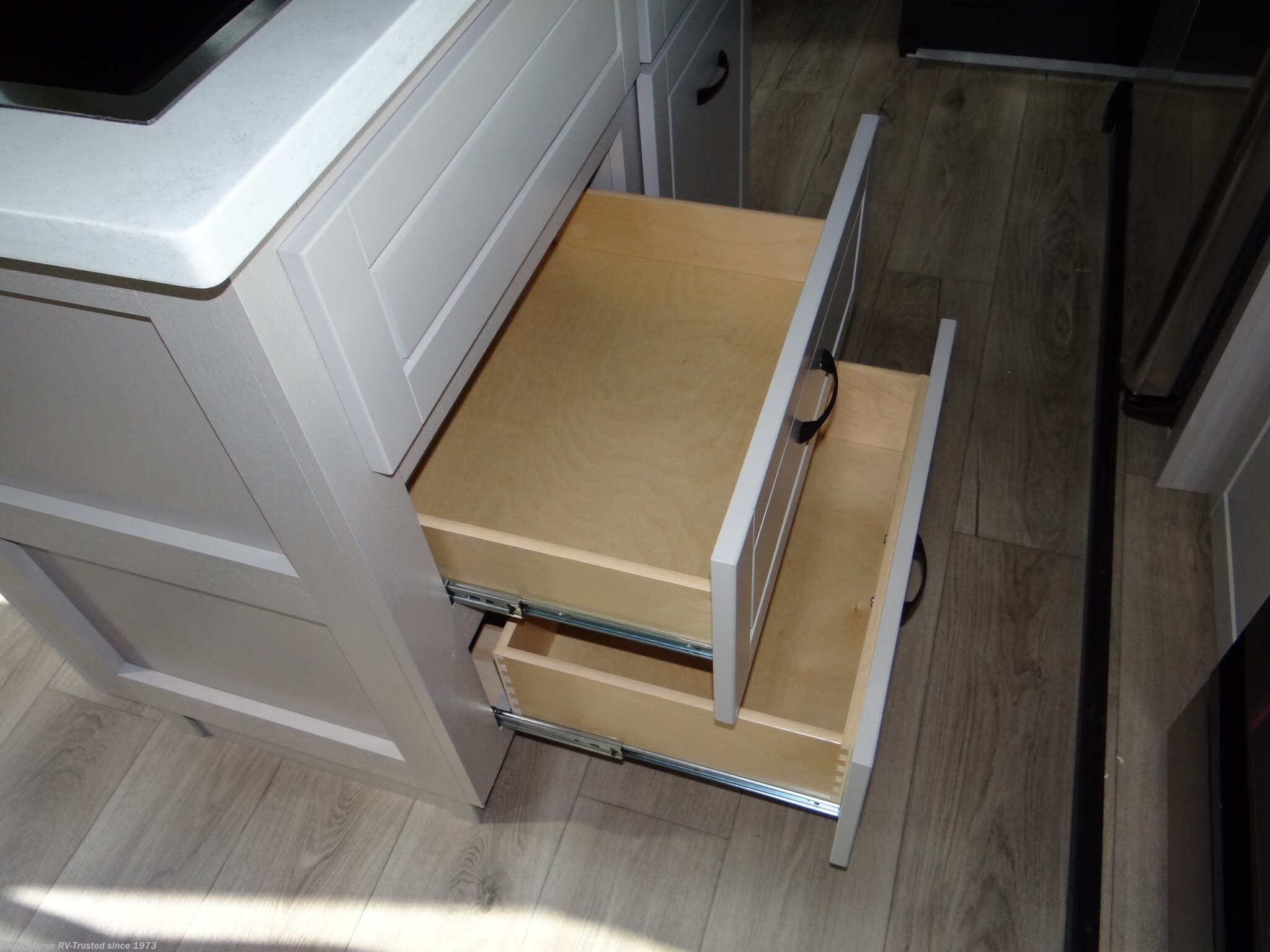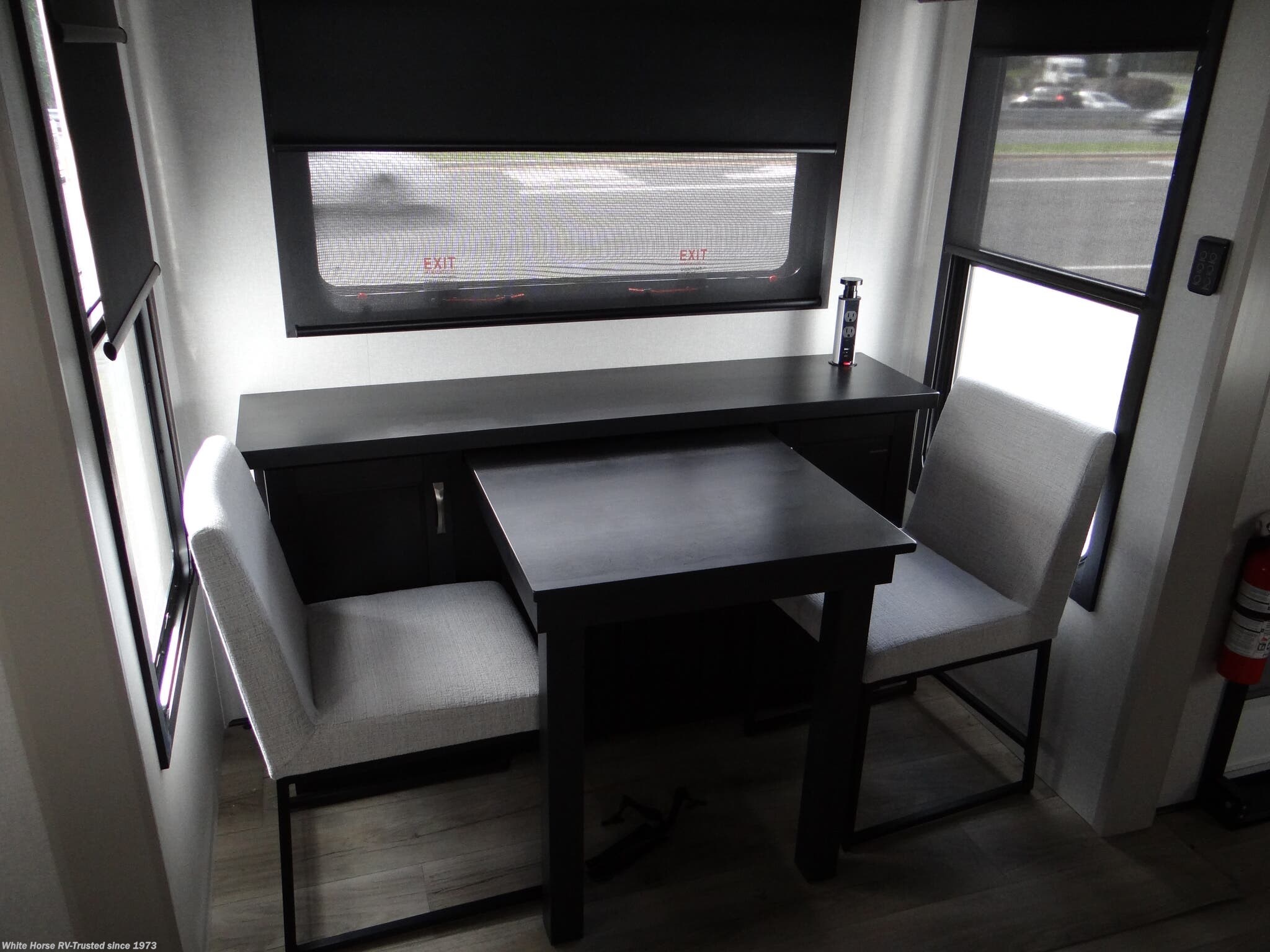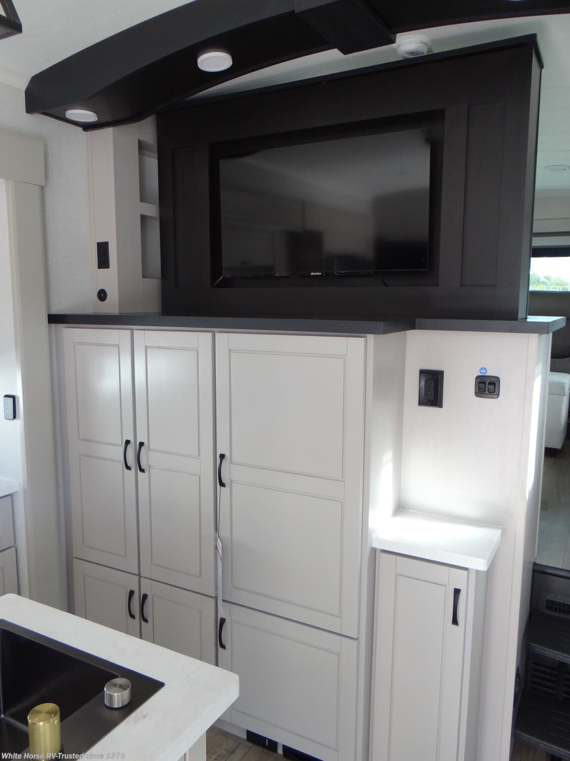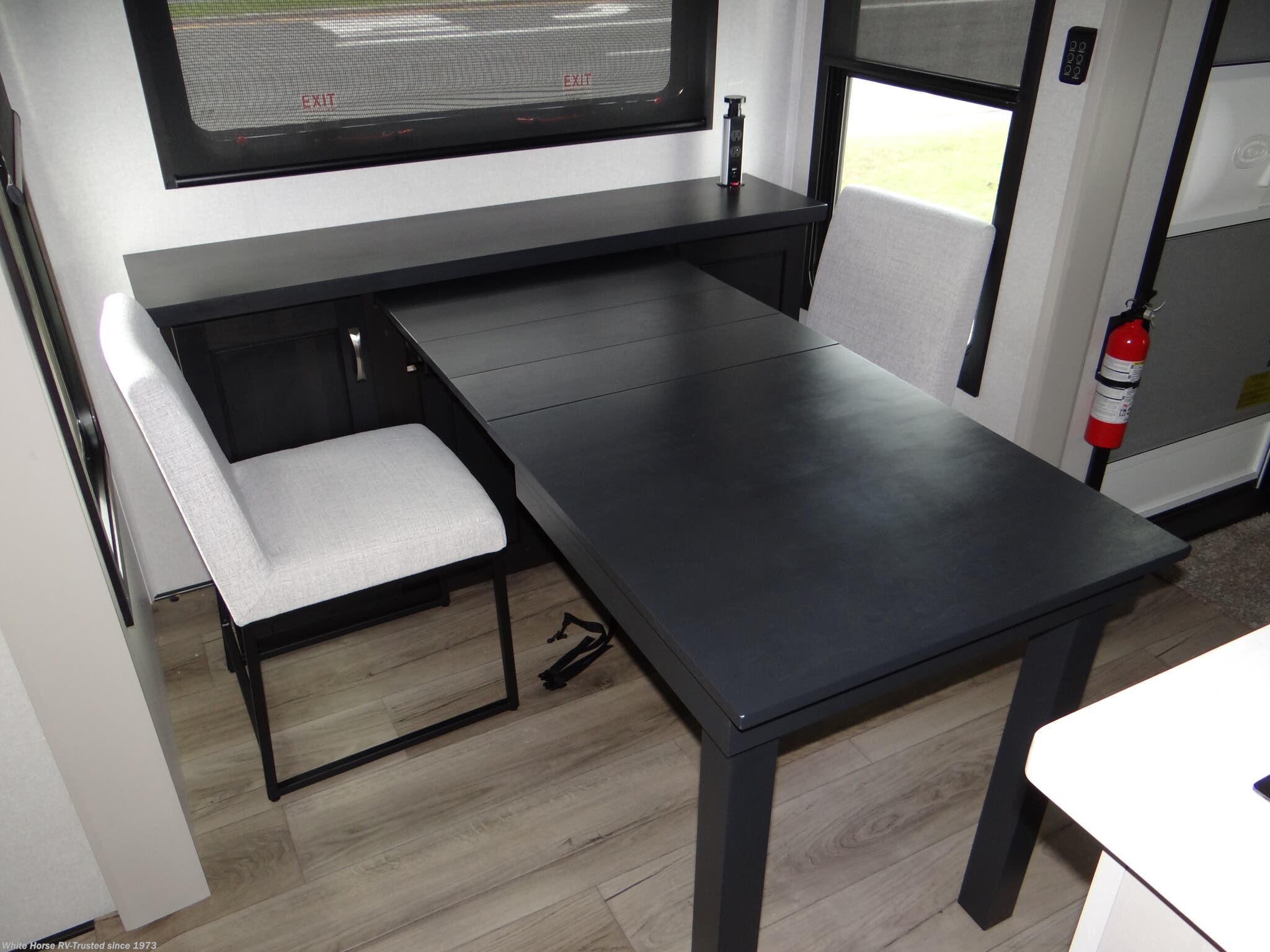 NP Luxury Package: 2nd Electric Patio Awning w/Integrated RGB Lights, 32" 4K Smart TV in Bedroom, 6 pt. Hydraulic Auto-Leveling System, Central Vacuum System w/Dust Port, Frameless Dark Tinted Safety Glass Windows, Freestanding Roll Top (No Pedestal) Table with 2- Freestanding Chairs and 2- Folding Chairs, GE 21 Cu Ft Residential Refrigerator w/1800W Inverter, GE 30" Space Saver Convection Microwave w/Built In Air Fryer, GE Profile Series Residential 24" Range (3.7 cu ft w/9100 BTU High Output Burner), High Gloss Gel-Coated Sidewalls, LED Fireplace w/Electric Space Heater, MORryde® StepAbove™ Entrance Steps (Main Entrance), Oversized Multi-Battery Compartment (Industry Leading Room for 4-6 Batteries), Privacy Day/Night Roller Shades in Living Room, Residential Solid-Surface Kitchen and Bathroom Countertops, Residential Walk In Shower w/ Shampoo/Soap Holder, Teak Seat and Shower Tower, Washer/Dryer Prep, Residential NuVo H2O Whole Coach Water System w/Water Softening and includes (3) Cartridges, Residential Do It All Kitchen Sink, JAYCOMMAND® "Smart RV System.