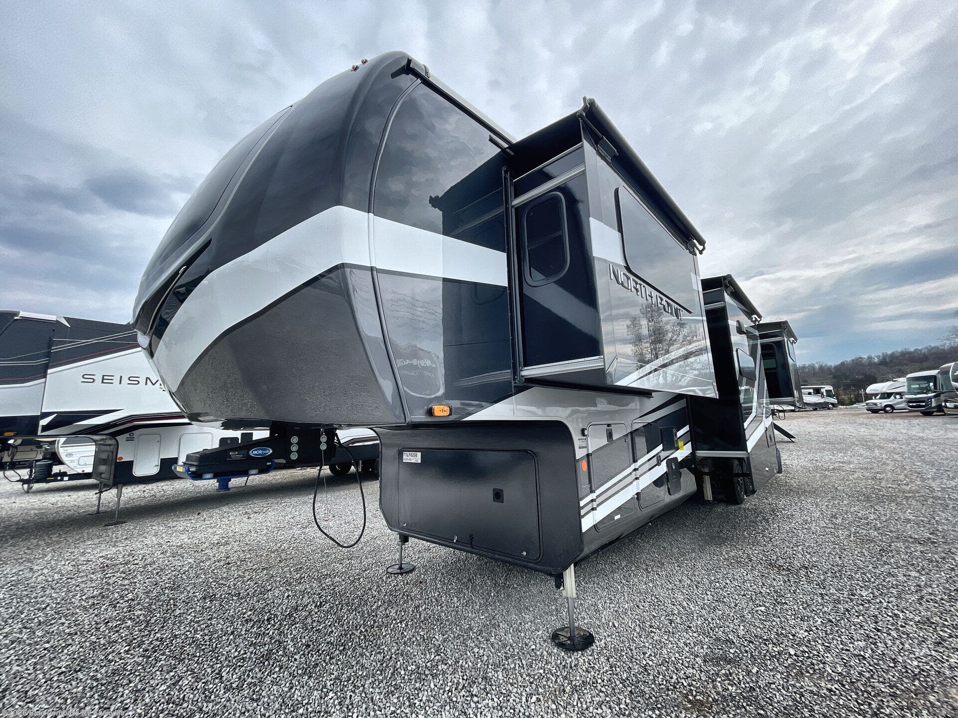 With any North Point fifth wheel by Jayco you begin with a strong foundation with a custom frame, designed and sized specifically to best support each unit. Constructed with Stronghold VBL™ aluminum framed, vacuum bond laminated walls and the Magnum Truss™ XL6™ roof system with an Alpha roof membrane system, which is the strongest tested roof in the industry. The 5-Star Handling package is included with H-rated tires with TPMS, a MORryde rubber pin box, Dexter axles with Nev-R-Adjust brakes, MORryde CRE-3000 rubberized suspension and wet bolt fasteners and bronze bushings. The interior has handcrafted hardwood glazed doors and drawers, vinyl flooring throughout, an integrated under-mount sink in the main bathroom, plus so much more you just have to see one to believe it all!