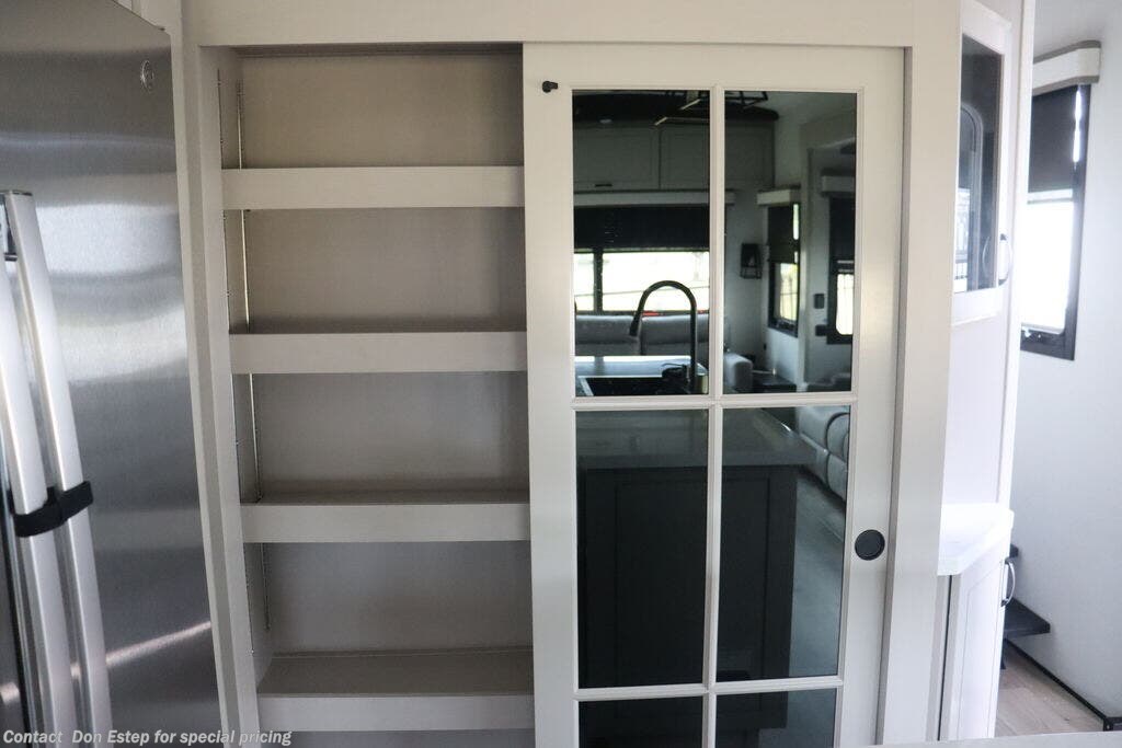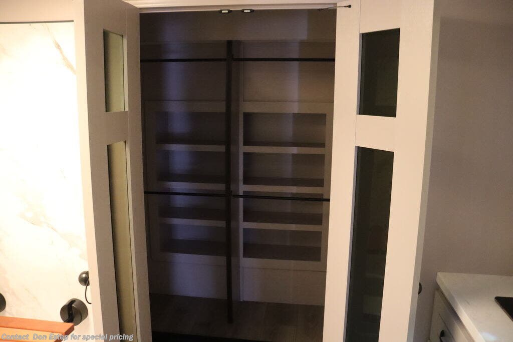 - Pantry with adjustable shelves (includes 120V outlet)