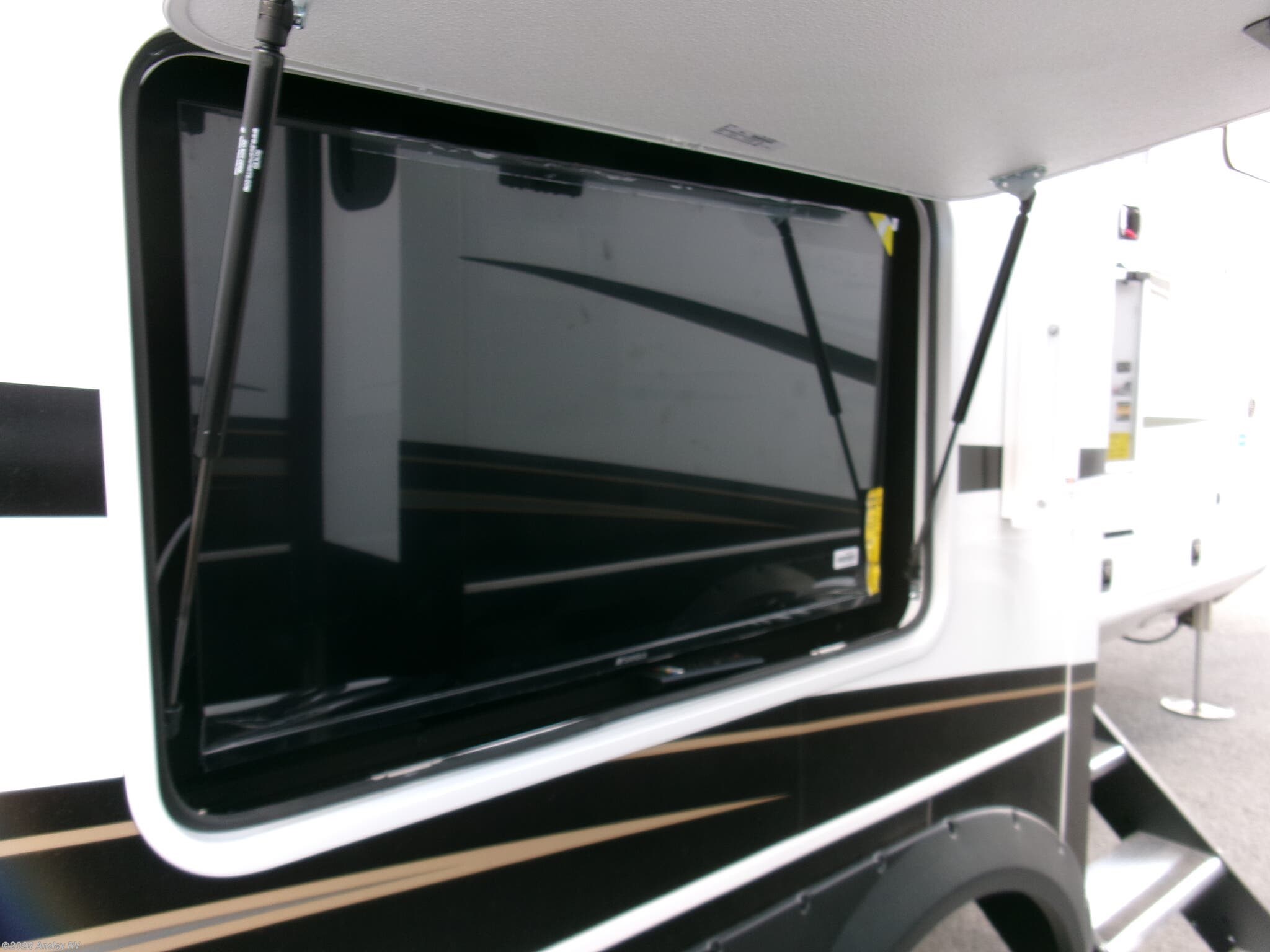 Awning, Exterior Speakers, External Shower, Hitch, Ladder, Leveling Jacks, Outside Entertainment Center, Power Roof Vent, Skylight, Slideout, Spare Tire Kit -