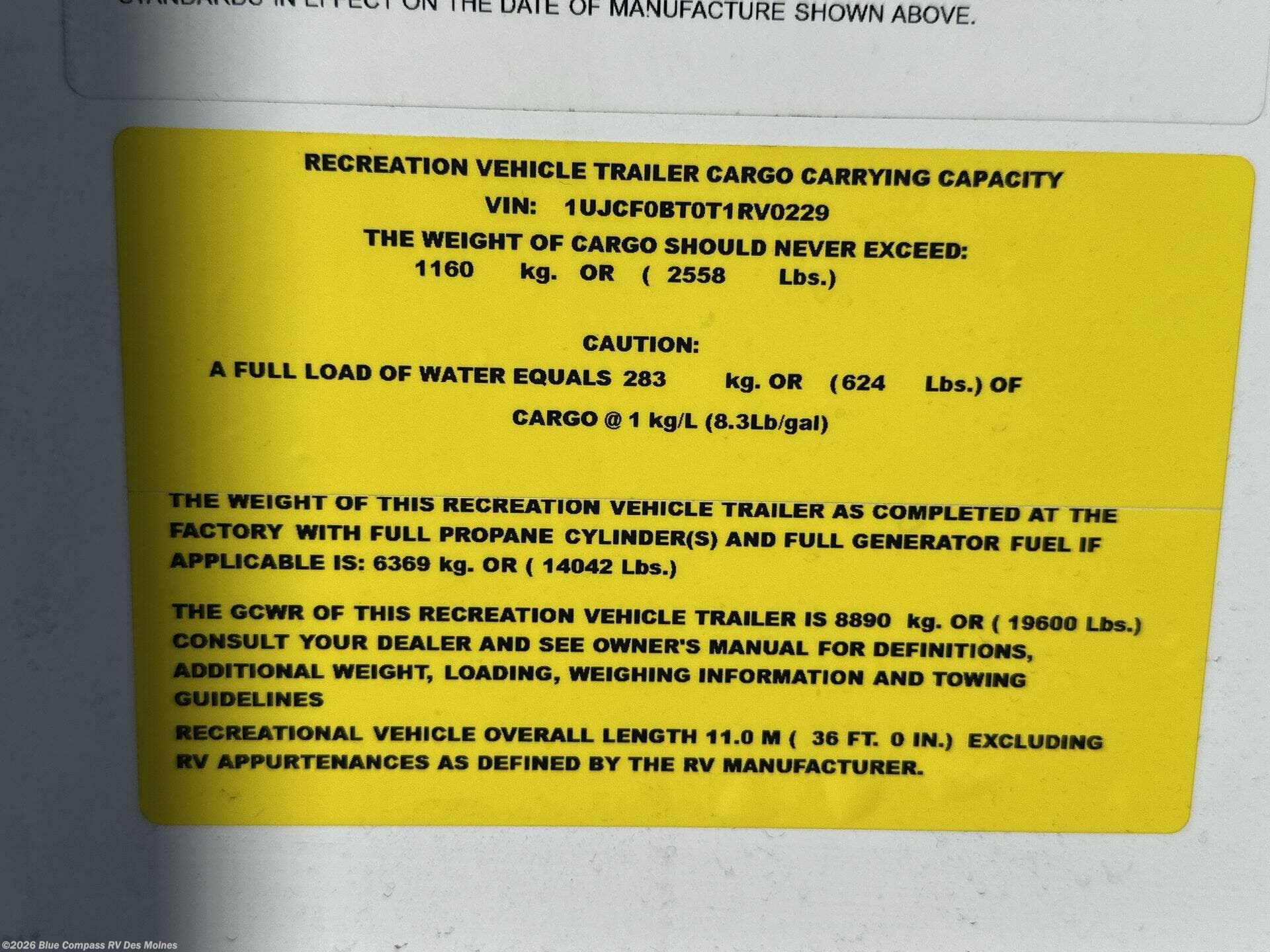 - VIN1UJCF0BT0T1RV0229
