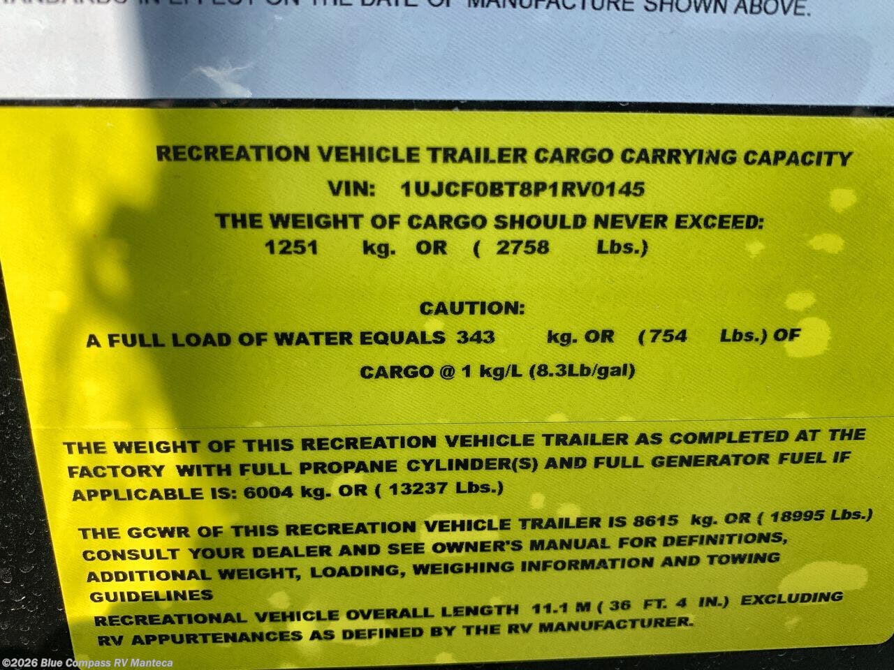 - VIN1UJCF0BT8T1RV0303