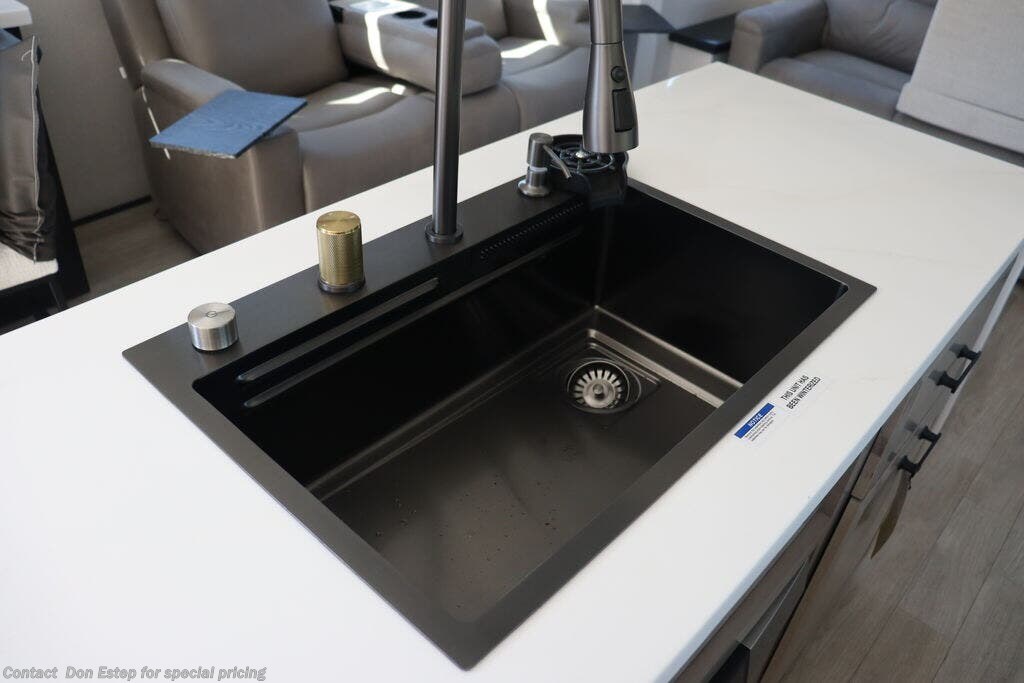- Residential "Do it all" sink with pull-out kitchen faucet, glass rinse, and vegetable rinse