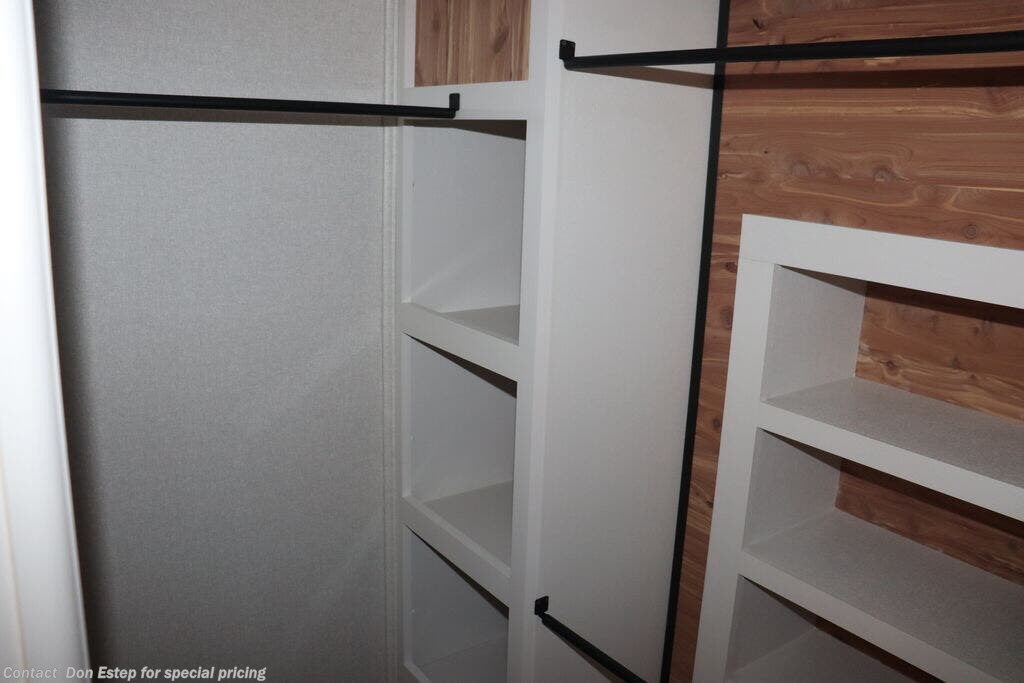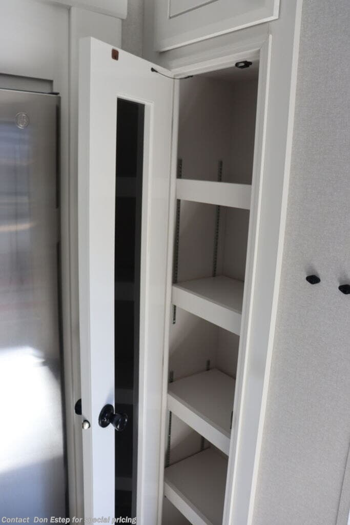 - Pantry with adjustable shelves and 120V outlet (most models)