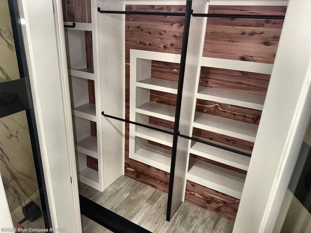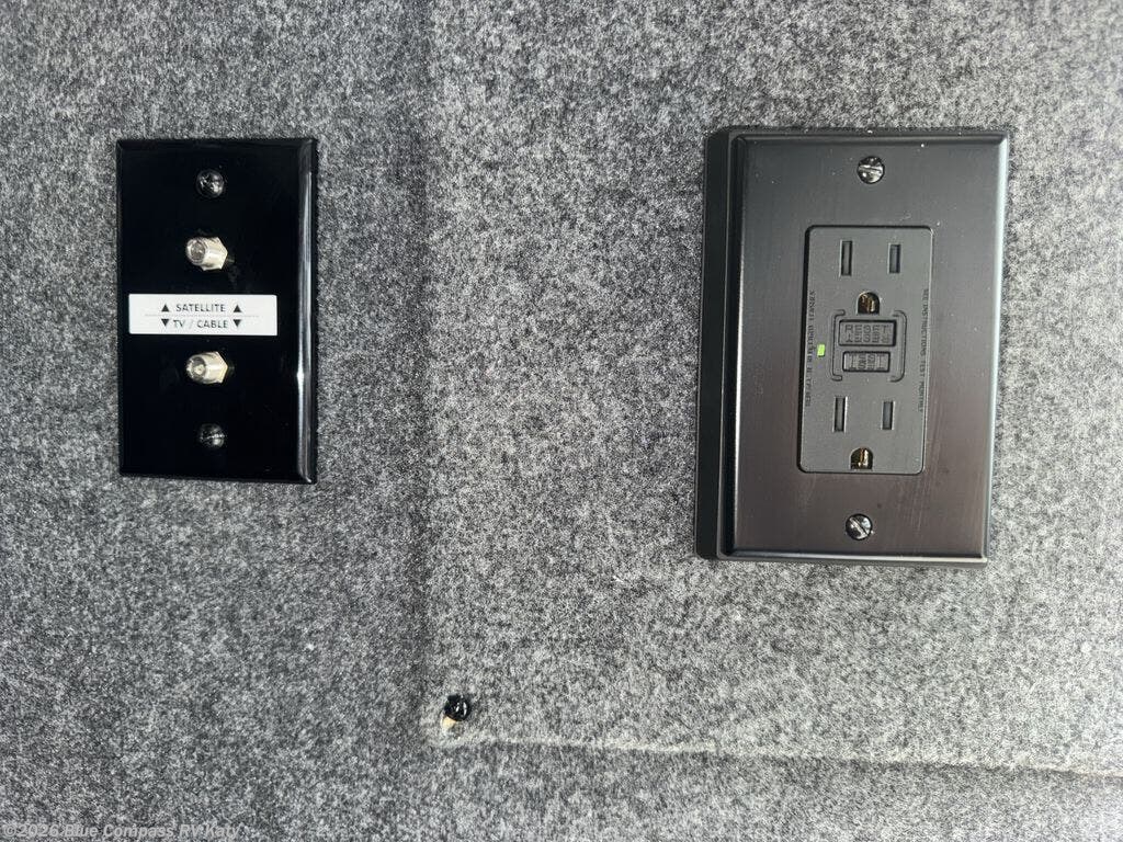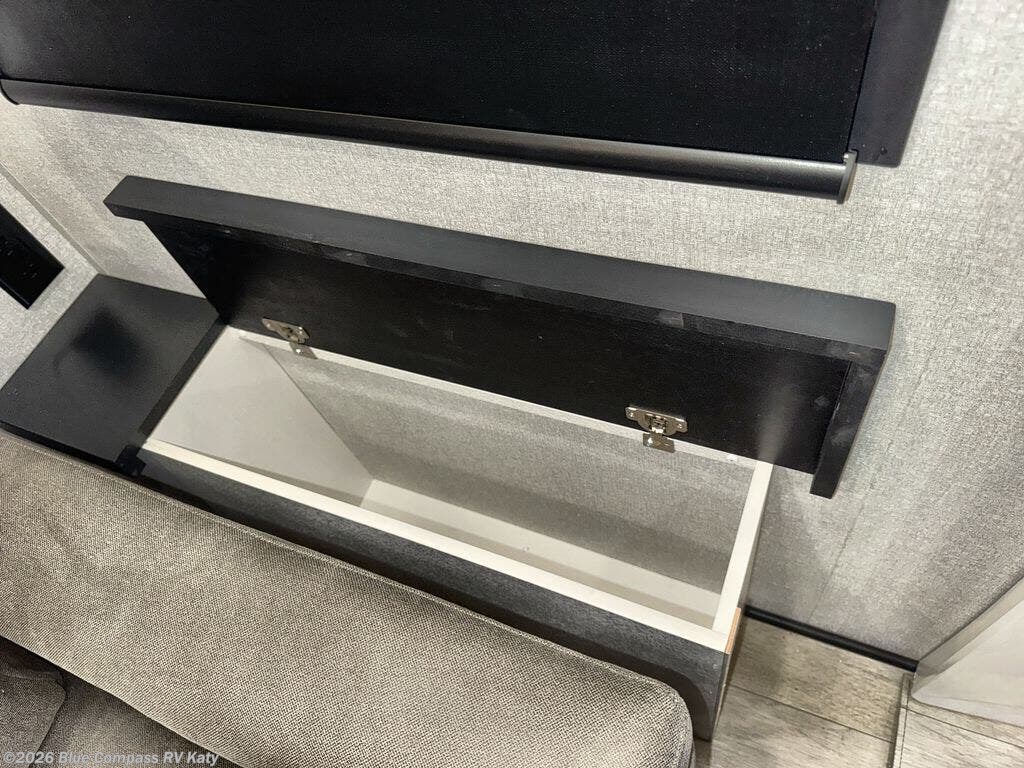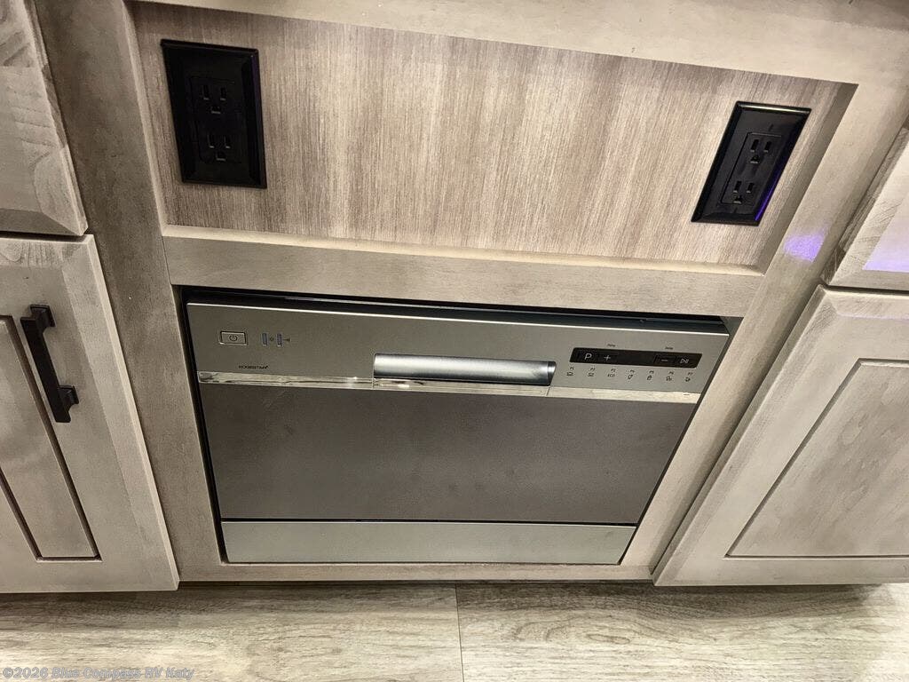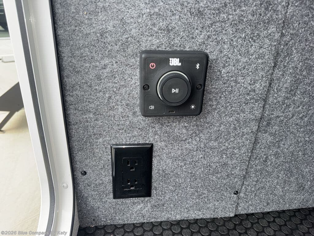 You can't go wrong with this fifth wheel that can sleep four! You will love how much space you have in the main living area thanks to the dual opposing slides, and there is a kitchen island here with a pull-out extension for added prep space. The convenient half bath is right off of the kitchen for quick restroom breaks, and you'll find a shoe garage and a wardrobe just as you enter the unit to keep the RV tidy. Head to the master bedroom for a rest on the king bed slide out, or you may want to watch a show on the 32" bedroom TV. The front master bath may be your favorite feature of this unit. Here, you'll find a spacious counter sink, a walk-in shower with a seat, plus a spacious walk-in closet for your clothes. And don't overlook the exterior with its two power awnings, 32" exterior TV, and a Jayport with LP quick connect for your outdoor grill.
