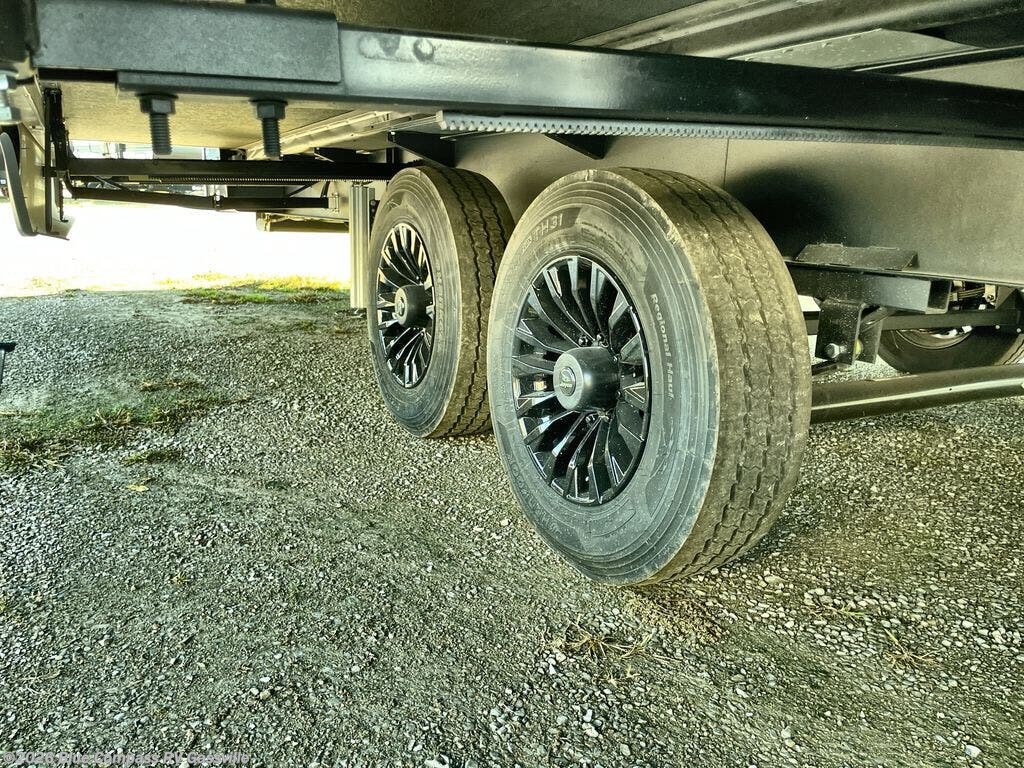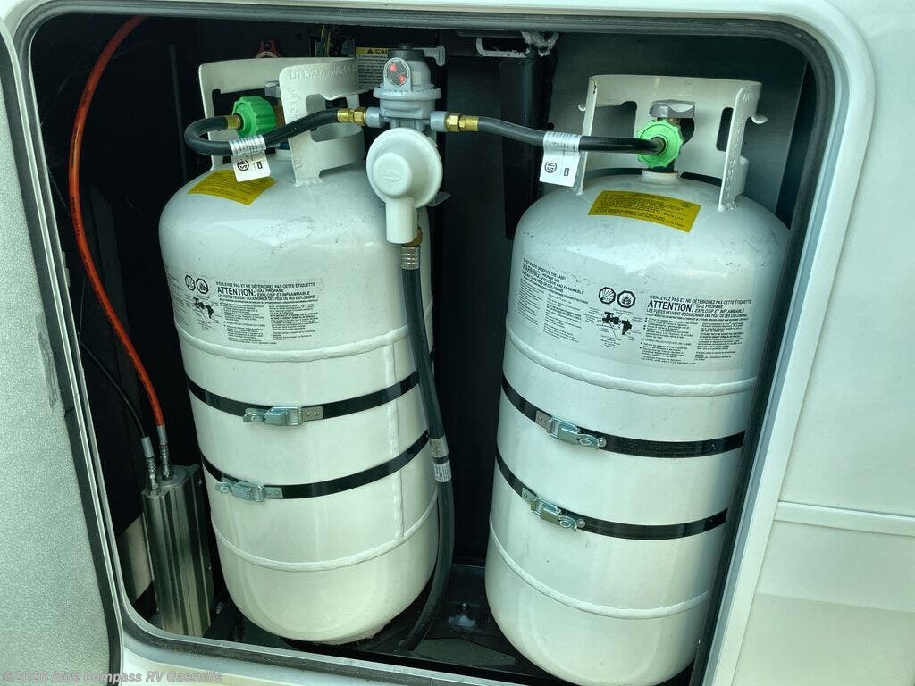 Triples slides, a desk/coffee bar, fireplace, and a huge master bath in front all indicate the kind of vacation you will experience in this Pinnacle Fifth Wheel! As you enter, a convenient half bath is located straight ahead. Slightly to your left, a nice seating area for gathering with family or friends to relax and watch TV, enjoy the fireplace while reading a book or watching a movie, and the dining table with chairs. The dinette slide also houses a 21 cu. ft. residential refrigerator and pantry. The rear kitchen features a u-shaped counter, all the appliances you need to cook like at home, even a pull-out butcher block space for chopping up your veggies. Back through and up the steps to your right in front, the master bedroom will make you feel like royalty with its king bed, plus luxurious full rear bath. A huge vanity with dual bath sinks will allow you both to get ready at the same time, plus there is a walk-in shower with a seat for added convenience. Speaking of walk-in, you will also love the spacious walk-in closet that includes washer/dryer prep.