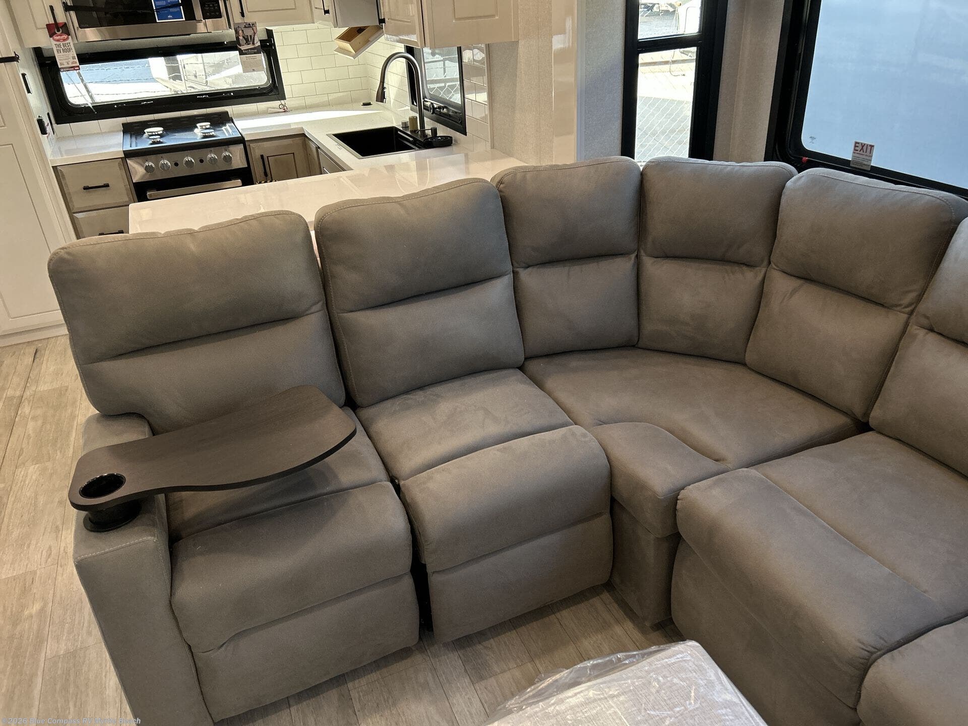 Each Pinnacle fifth wheel features Stronghold VBL lamination for the lightest, yet strongest construction in the RV industry. Add that to the Magnum Truss XL6 roof system and Climate Shield zero-degree tested weather protection and you'll be enjoying your fifth wheel even in harsh weather. Some of the exterior conveniences you will appreciate are the Keyed-Alike lock system, the fully enclosed, universal docking center, and the 6-point hydraulic auto-leveling system for quick and easy set up. The 5 Star Handling Package will make towing a fifth wheel a walk in the park, and the two Whisper Quiet A/C units will keep you comfortable during the hot summer months. Inside, you'll enjoy the residential "Do it all" sink, the solid hardwood cabinet doors, stiles, and fascia, the vinyl flooring throughout, plus many more comforts. There is even a central vacuum system, a wireless remote-control system, 12V charging station, plus many more conveniences to make each trip enjoyable.