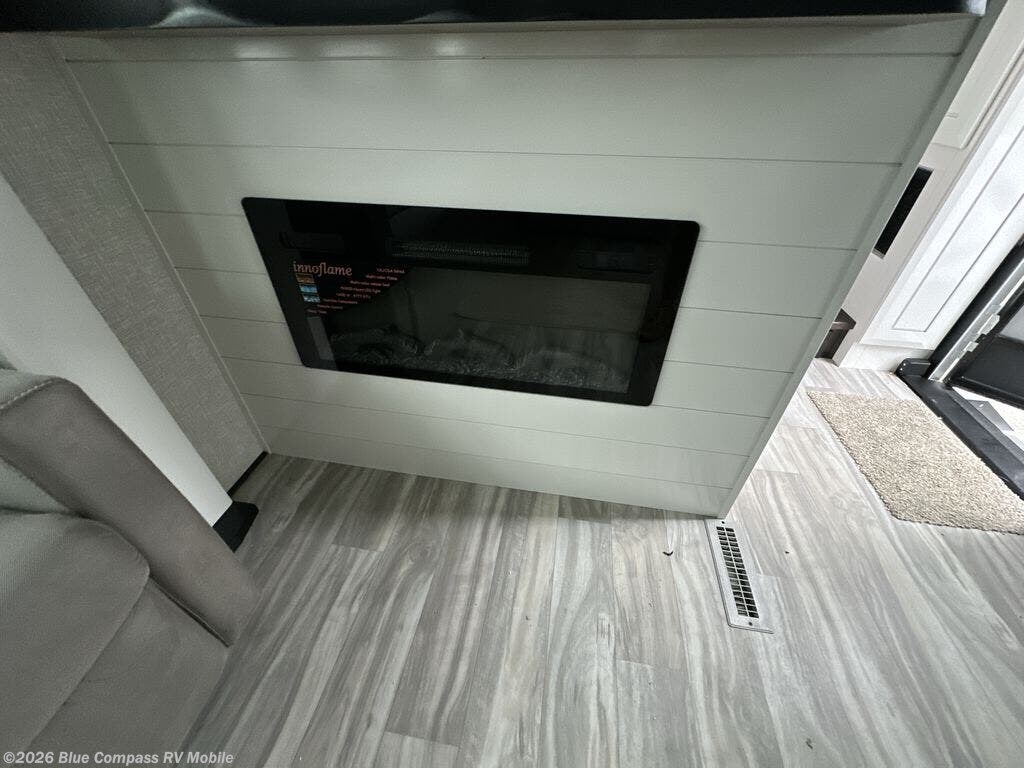 Triples slides, a desk/coffee bar, fireplace, and a huge master bath in front all indicate the kind of vacation you will experience in this Pinnacle Fifth Wheel! As you enter, a convenient half bath is located straight ahead. Slightly to your left, a nice seating area for gathering with family or friends to relax and watch TV, enjoy the fireplace while reading a book or watching a movie, and the dining table with chairs. The dinette slide also houses a 21 cu. ft. residential refrigerator and pantry. The rear kitchen features a u-shaped counter, all the appliances you need to cook like at home, even a pull-out butcher block space for chopping up your veggies. Back through and up the steps to your right in front, the master bedroom will make you feel like royalty with its king bed, plus luxurious full rear bath. A huge vanity with dual bath sinks will allow you both to get ready at the same time, plus there is a walk-in shower with a seat for added convenience. Speaking of walk-in, you will also love the spacious walk-in closet that includes washer/dryer prep.