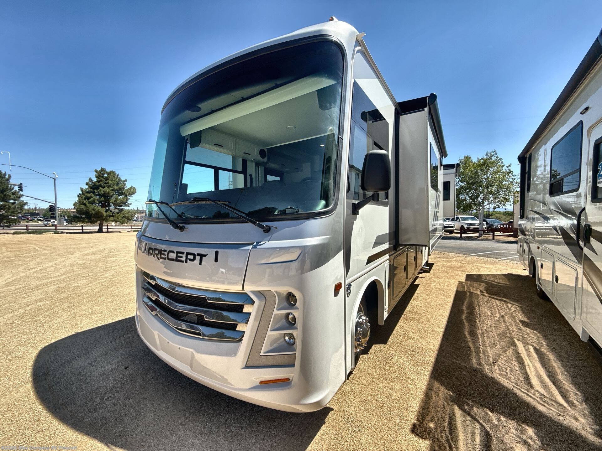 The Jayco Precept Class A gas motorhome comes with some features that you'll only find on a Jayco product, like the JRide Plus which offers you a powerful blend of precise handling and renowned stability on the road and the Firefly total coach control system which allows you to control your coach's operations from just about anywhere with your phone. You'll find two-point lap seatbelts in all designated seating locations, and the one-piece, seamless fiberglass front and rear caps resist wear and tear over the years. The Precept also offers you the lightest yet strongest construction in the industry with the Stronghold VBL lamination on the roof, floor, and sidewalls. You'll also be very pleased to find a 120" panoramic windshield, automatic hydraulic leveling jacks, and a 5,500W generator with auto-gen start.