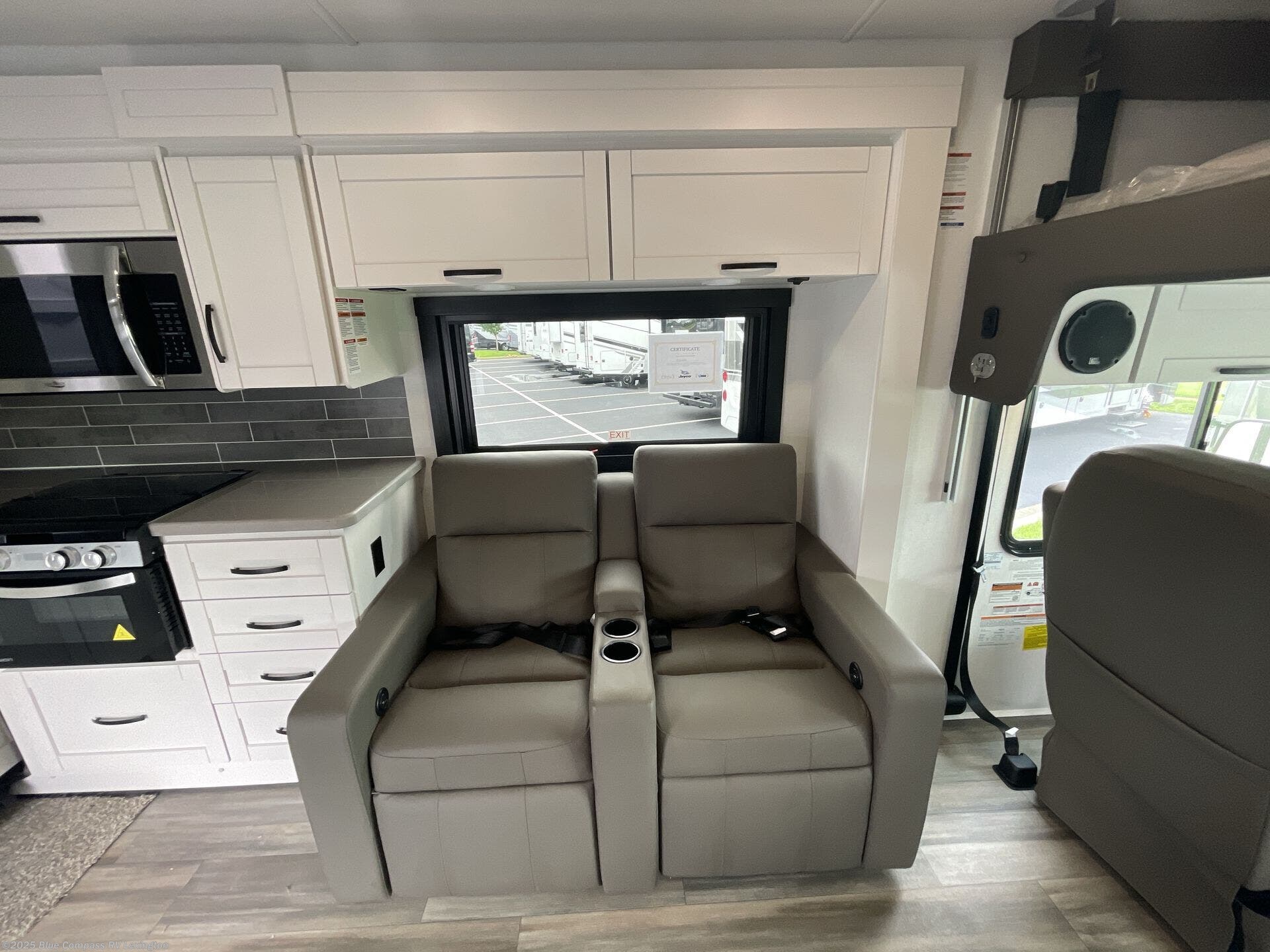 The Jayco Precept Class A gas motorhome comes with some features that you'll only find on a Jayco product, like the JRide Plus which offers you a powerful blend of precise handling and renowned stability on the road and the Firefly total coach control system which allows you to control your coach's operations from just about anywhere with your phone. You'll find two-point lap seatbelts in all designated seating locations, and the one-piece, seamless fiberglass front and rear caps resist wear and tear over the years. The Precept also offers you the lightest yet strongest construction in the industry with the Stronghold VBL lamination on the roof, floor, and sidewalls. You'll also be very pleased to find a 120" panoramic windshield, automatic hydraulic leveling jacks, and a 5,500W generator with auto-gen start.