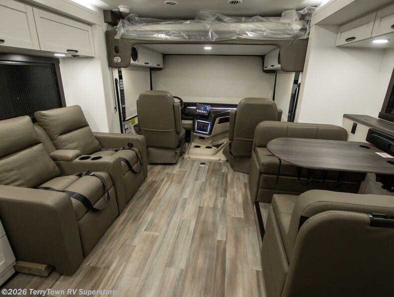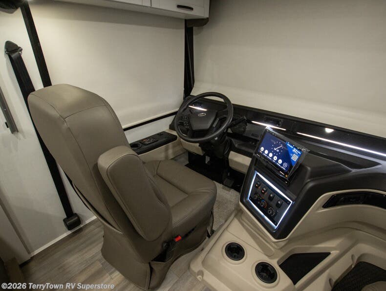 The Jayco Precept Class A gas motorhome comes with some features that you'll only find on a Jayco product, like the JRide Plus which offers you a powerful blend of precise handling and renowned stability on the road and the Firefly total coach control system which allows you to control your coach's operations from just about anywhere with your phone. You'll find two-point lap seatbelts in all designated seating locations, and the one-piece, seamless fiberglass front and rear caps resist wear and tear over the years. The Precept also offers you the lightest yet strongest construction in the industry with the Stronghold VBL lamination on the roof, floor, and sidewalls. You'll also be very pleased to find a 120" panoramic windshield, automatic hydraulic leveling jacks, and a 5,500W generator with auto-gen start.