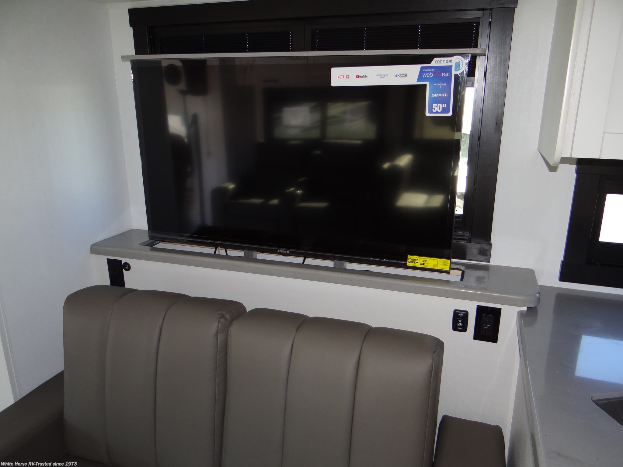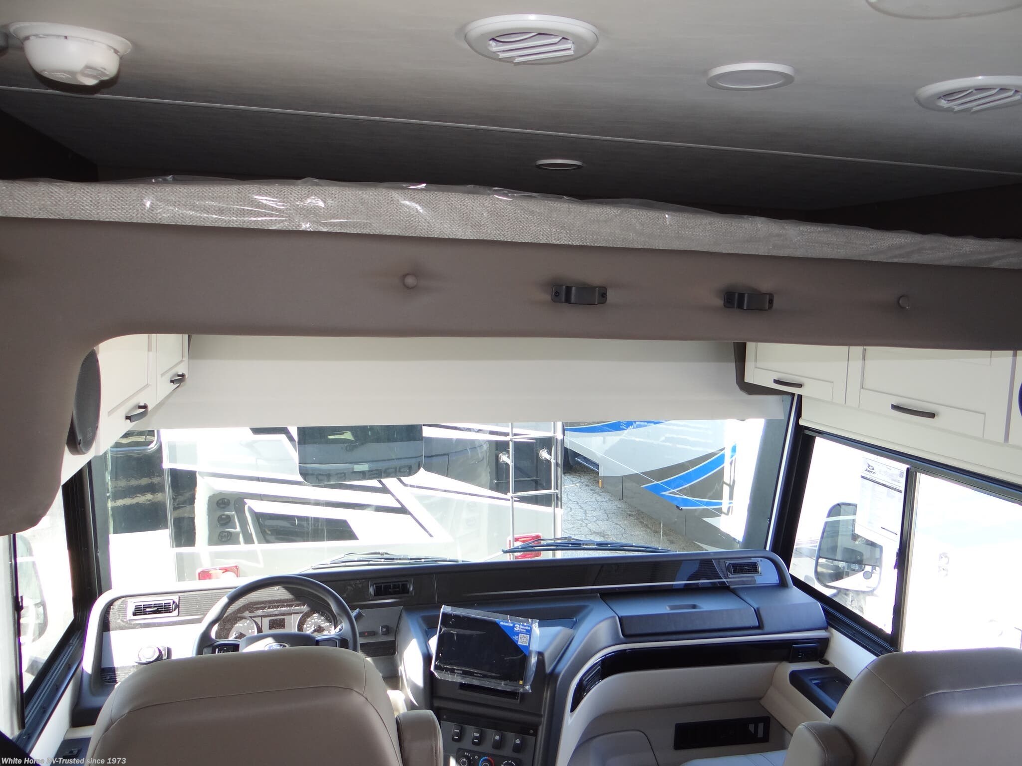 CUSTOMER VALUE PACKAGE: Jride Plus, Automatic hydraulic leveling jacks, Frameless windows, 15,000 BTU A/C unit with heat pump and second 13,5000 BTU A/C unit, Exterior entertainment center with outside speakers and LED HD Smart TV mounted on swivel bracket, Electric patio awning with LED lights, Slide out cover awnings, 5,500-watt generator with auto-gen start, 1,200-watt inverter, 50-amp electrical service, Sony infotainment center-Apple CarPlay/Android Auto, Backup and side-view cameras, Removable driver/passenger cockpit table, LED-lit, solid-surface kitchen countertops with recessed stainless steel sink and sink covers, LED HD Smart TV in living area, Integrated day/night cassette shades, Tankless water heater.