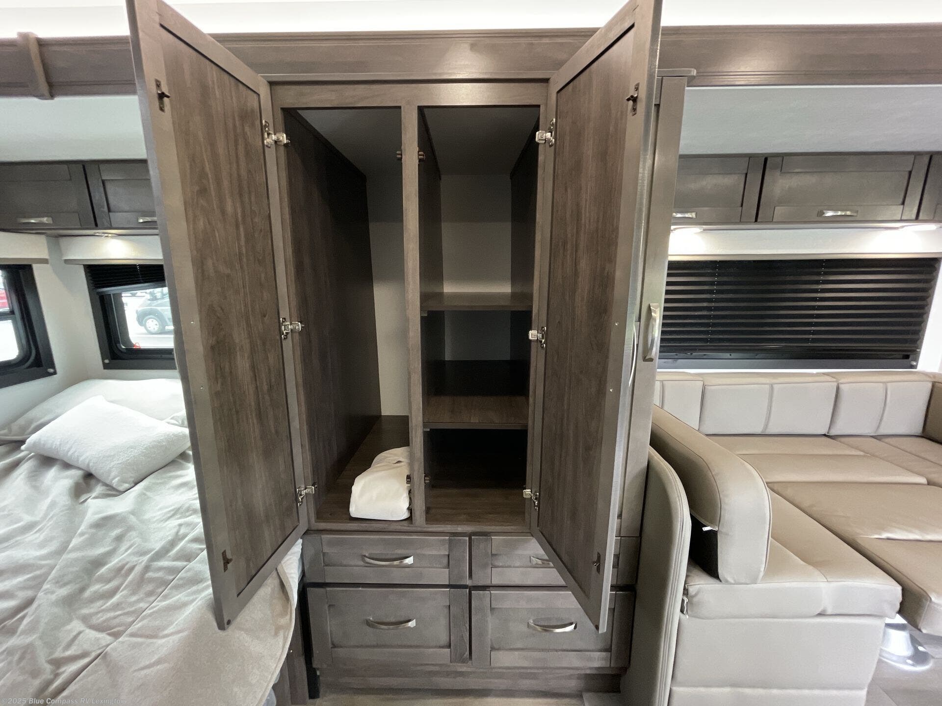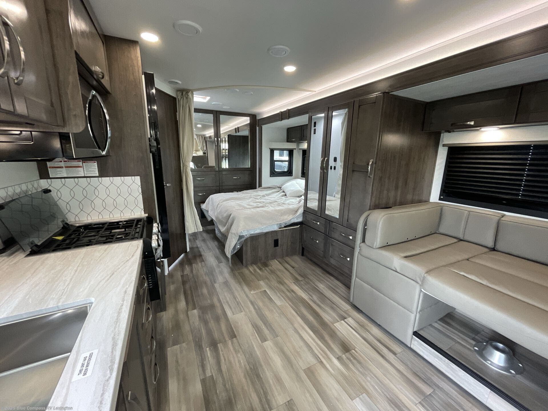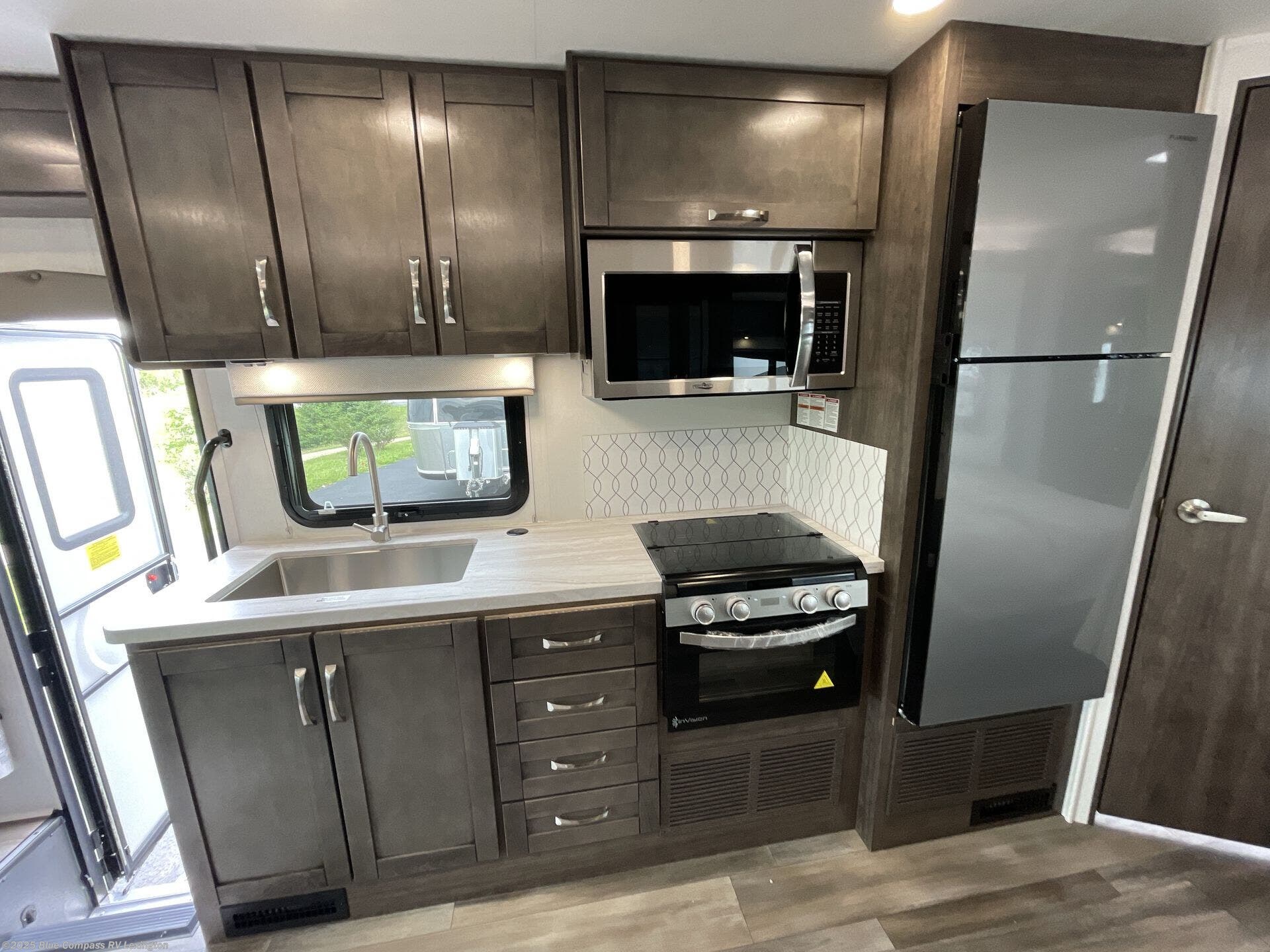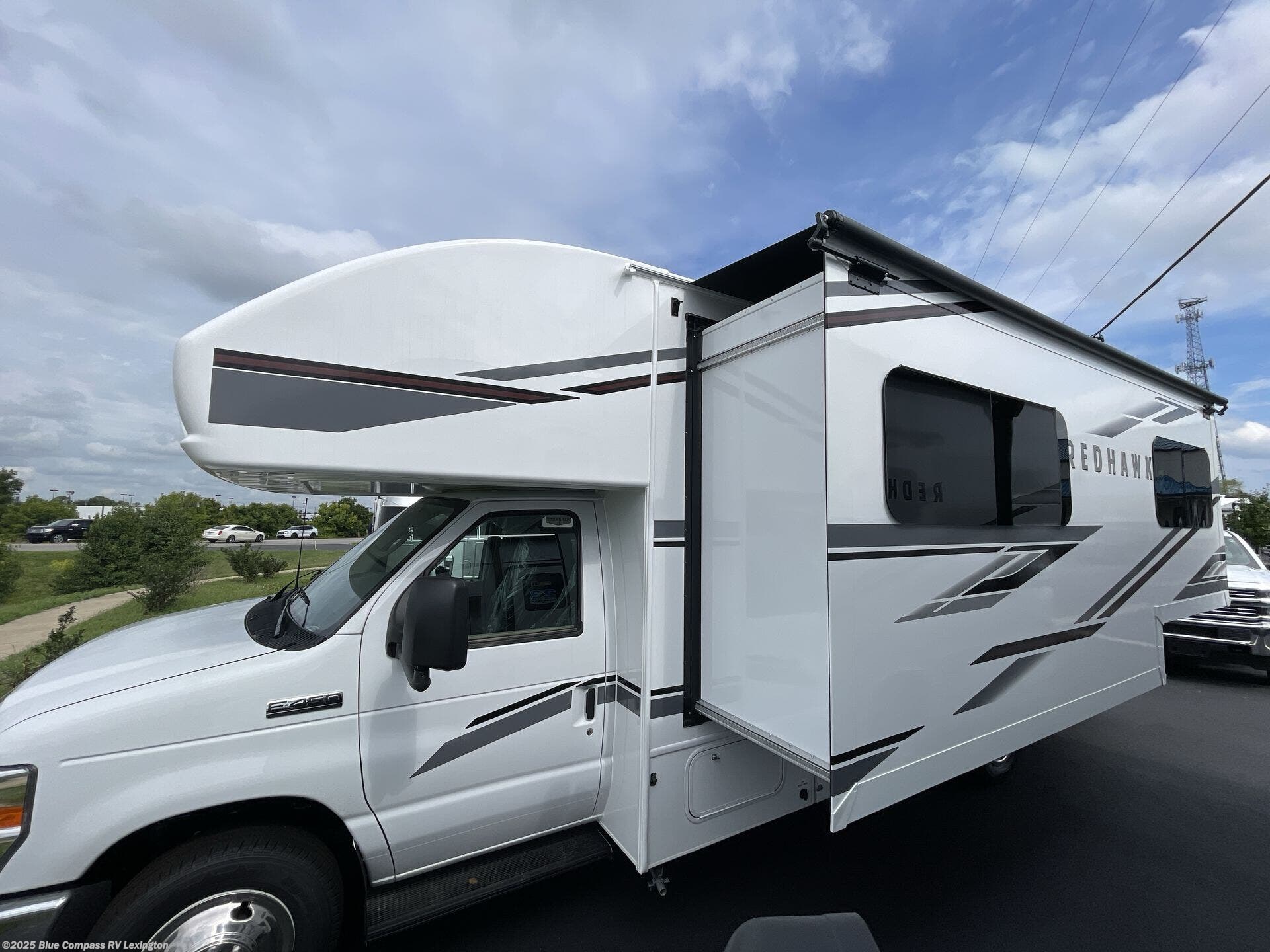 Easily load up and head out for an adventure in this Redhawk with sleeping space for five, a full bathroom, and kitchen amenities to stay fed the whole trip. Once at your campsite, easily let out the slide and the 16' electric awning and plan your next activity. You an use the full bath, make a meal in the kitchen with the Furrion all-in-one cooktop and oven, plus the residential-size microwave, and grab your beverage from the 10 cu. ft. refrigerator. The driver and passenger seats swivel for more interior seating, and if you like, choose the theater seating option in place of the U-shaped dinette.