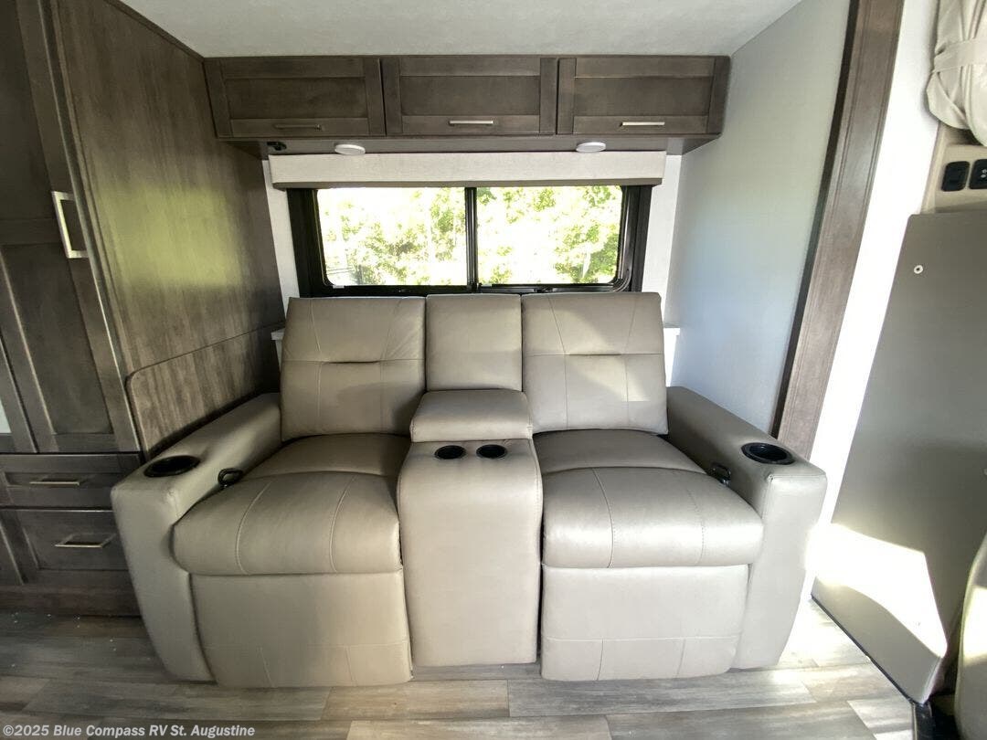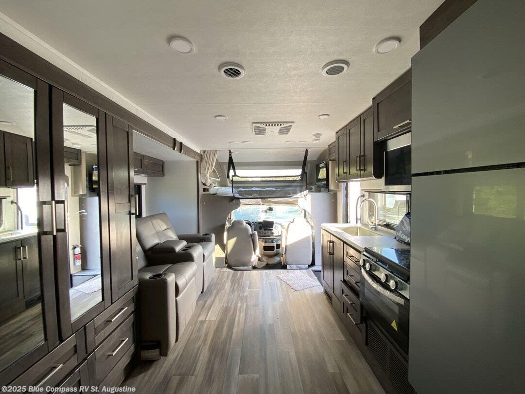 Easily load up and head out for an adventure in this Redhawk with sleeping space for five, a full bathroom, and kitchen amenities to stay fed the whole trip. Once at your campsite, easily let out the slide and the 16' electric awning and plan your next activity. You an use the full bath, make a meal in the kitchen with the Furrion all-in-one cooktop and oven, plus the residential-size microwave, and grab your beverage from the 10 cu. ft. refrigerator. The driver and passenger seats swivel for more interior seating, and if you like, choose the theater seating option in place of the U-shaped dinette.
