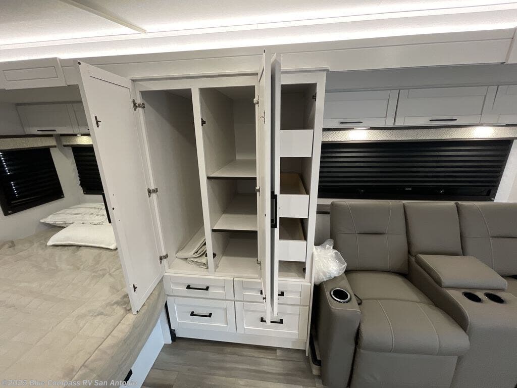 Easily load up and head out for an adventure in this Redhawk with sleeping space for five, a full bathroom, and kitchen amenities to stay fed the whole trip. Once at your campsite, easily let out the slide and the 16' electric awning and plan your next activity. You an use the full bath, make a meal in the kitchen with the Furrion all-in-one cooktop and oven, plus the residential-size microwave, and grab your beverage from the 10 cu. ft. refrigerator. The driver and passenger seats swivel for more interior seating, and if you like, choose the theater seating option in place of the U-shaped dinette.