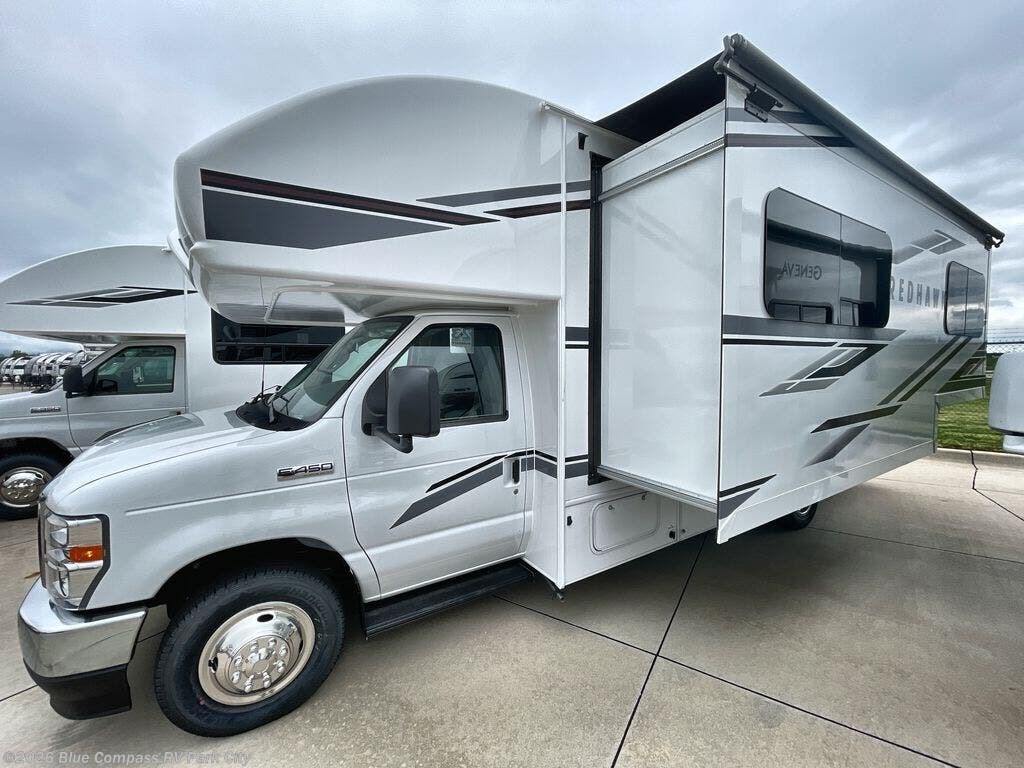 Easily load up and head out for an adventure in this Redhawk with sleeping space for five, a full bathroom, and kitchen amenities to stay fed the whole trip. Once at your campsite, easily let out the slide and the 16' electric awning and plan your next activity. You an use the full bath, make a meal in the kitchen with the Furrion all-in-one cooktop and oven, plus the residential-size microwave, and grab your beverage from the 10 cu. ft. refrigerator. The driver and passenger seats swivel for more interior seating, and if you like, choose the theater seating option in place of the U-shaped dinette.
