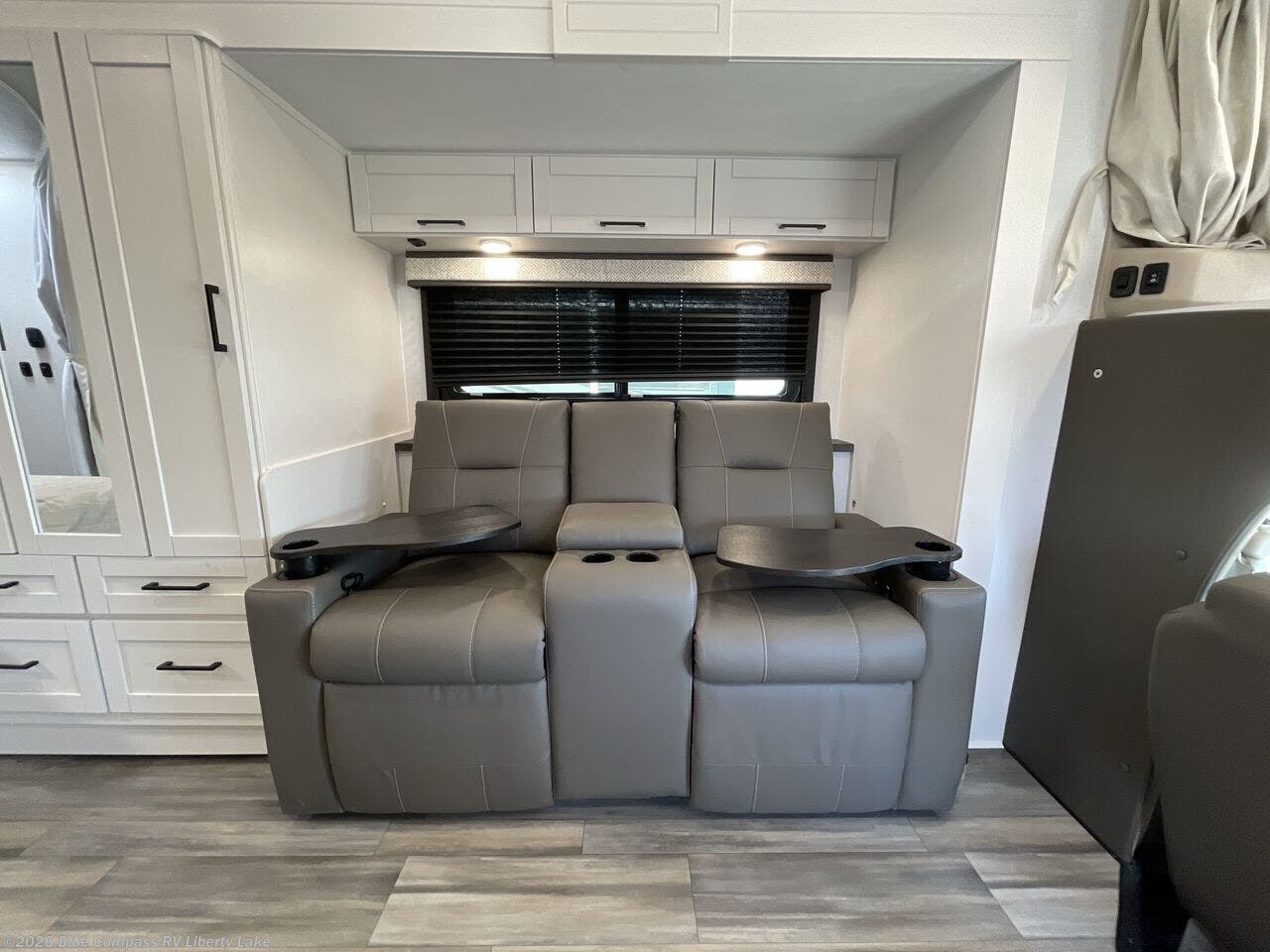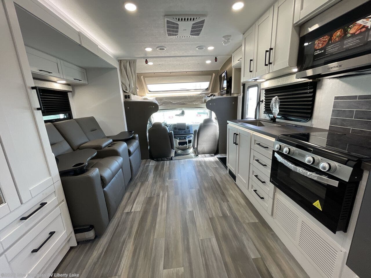 Easily load up and head out for an adventure in this Redhawk with sleeping space for five, a full bathroom, and kitchen amenities to stay fed the whole trip. Once at your campsite, easily let out the slide and the 16' electric awning and plan your next activity. You can use the full bath, make a meal in the kitchen with the all-in-one cooktop and oven, plus the residential-size microwave, and grab your beverage from the 10-cu. ft. refrigerator. The driver and passenger seats swivel for more interior seating, and if you like, choose the theater seating option in place of the U-shaped dinette.