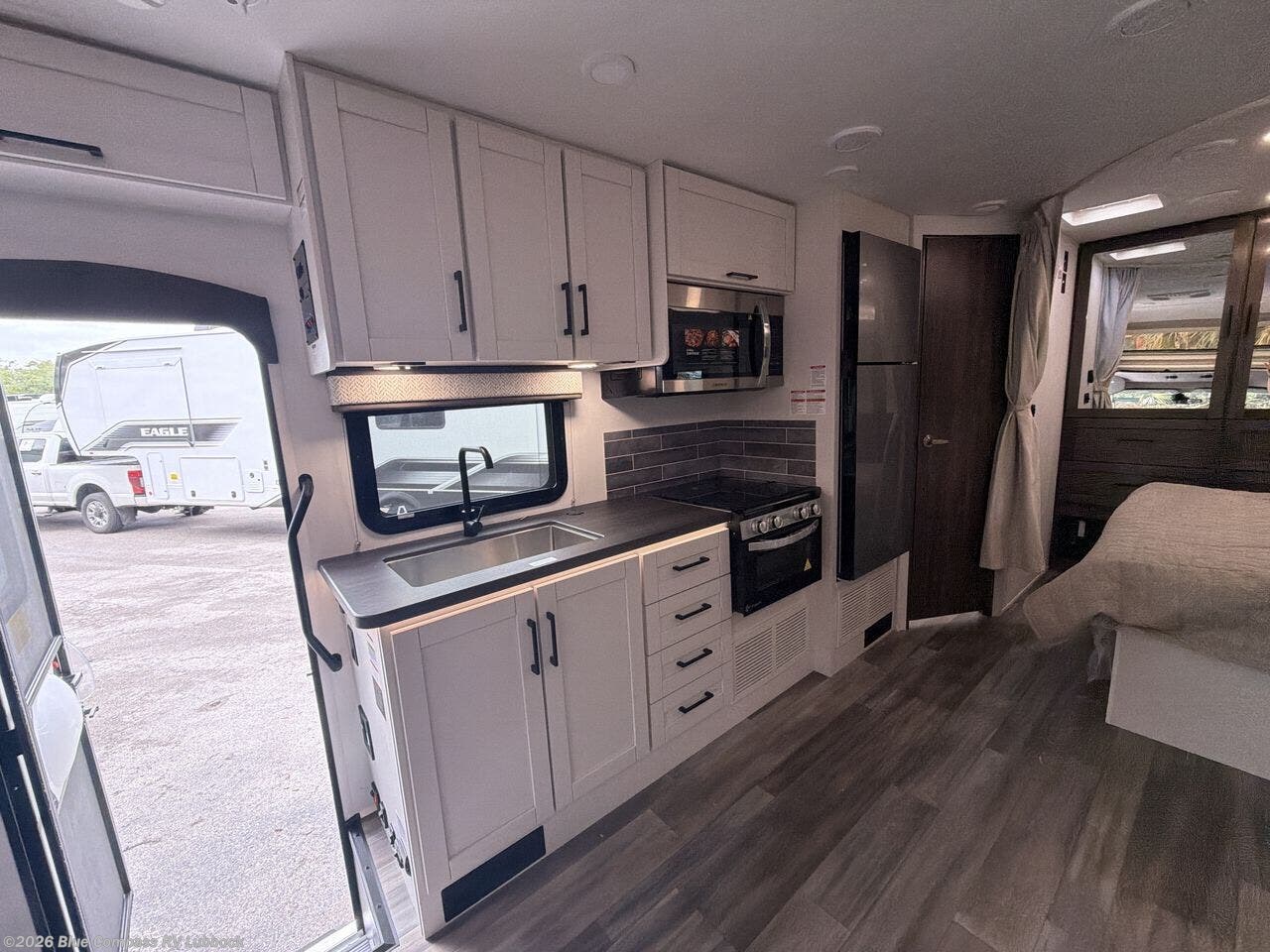 Each Jayco Redhawk Class C gas motorhome includes the JRIDE® system that features a computer-balanced driveshaft, standard front and rear stabilizer bars, Hellwig helper springs, and rubber isolation body mounts to absorb road shock, dampen noise and minimize vibrations. The cab offers a Sony® infotainment center with Apple CarPlay and Android Auto, backup and side-view cameras for safety and easier parking, and a tire pressure monitoring system. Inside you will love the headroom with a 7-foot ceiling height, the LED-lit pressed countertops and decorative kitchen backsplash, plus the stainless-steel bathroom sink when it is time to clean up. Looking for value, technology and comfort, choose your favorite Redhawk today!