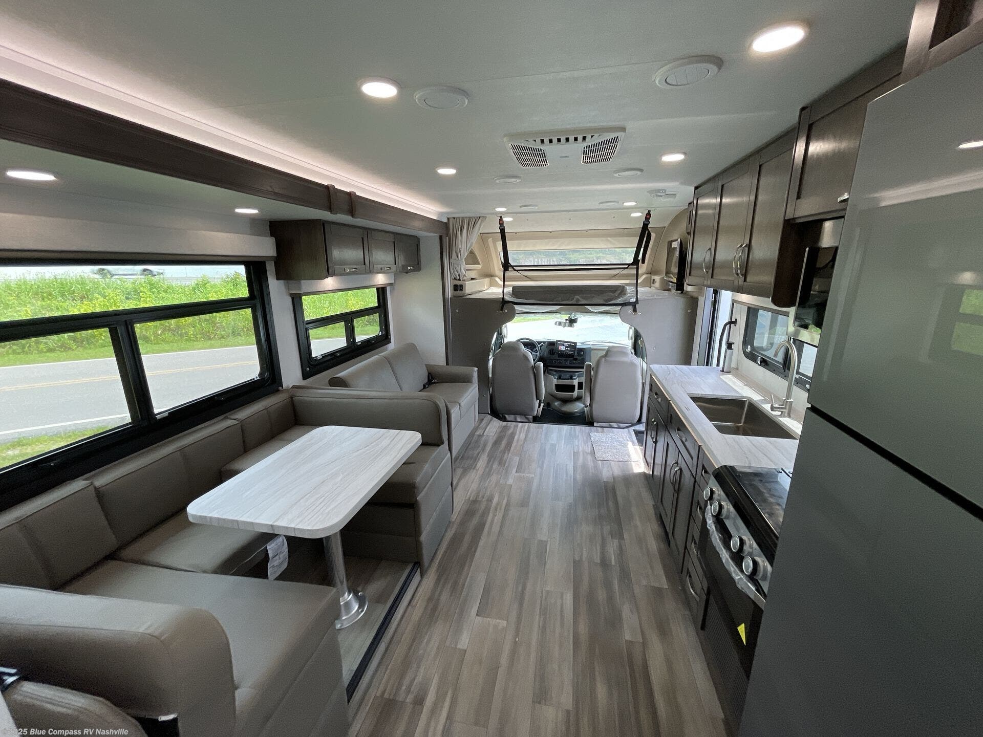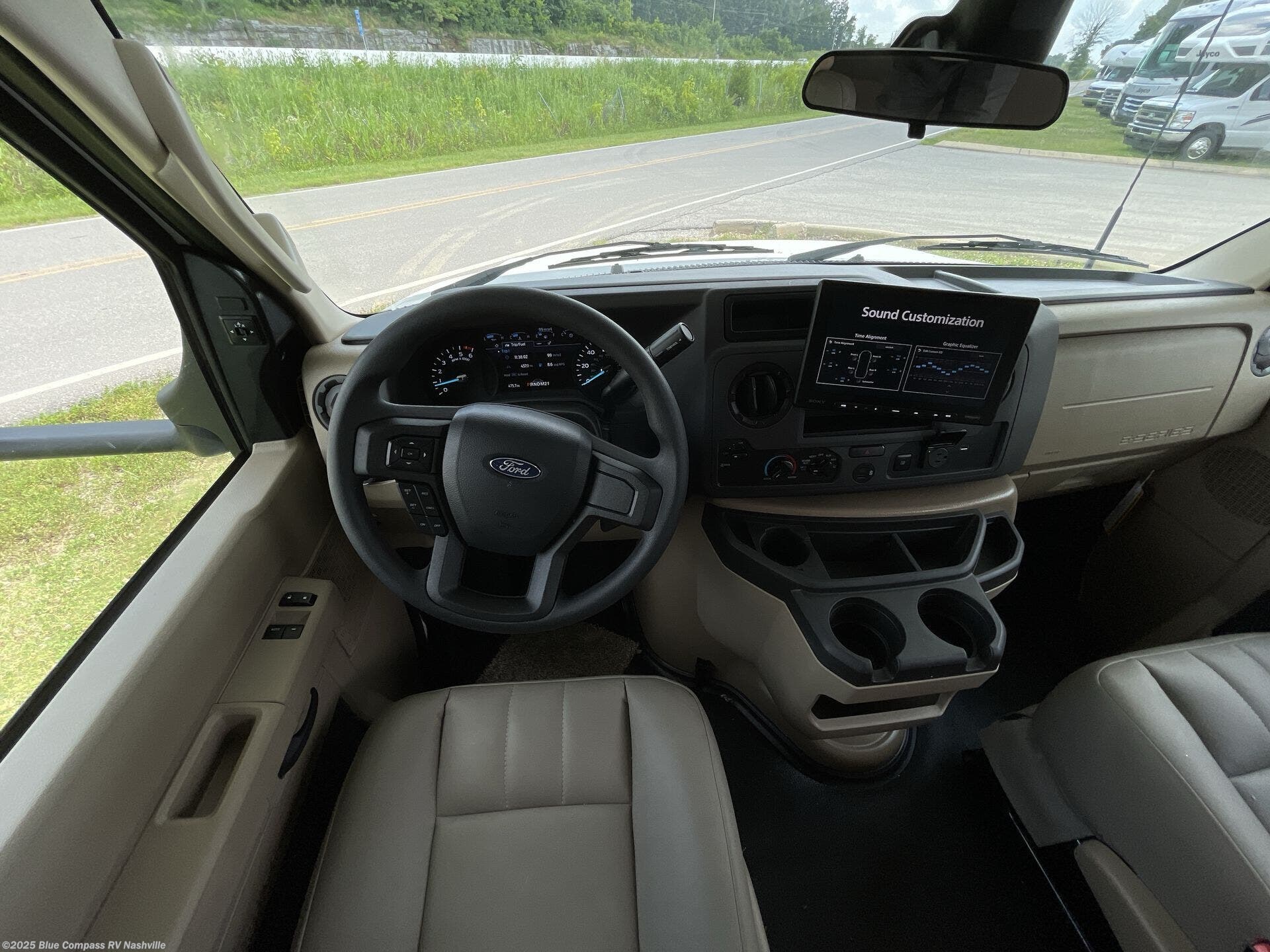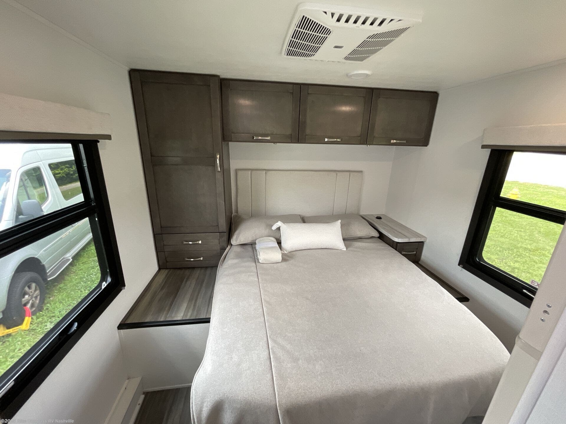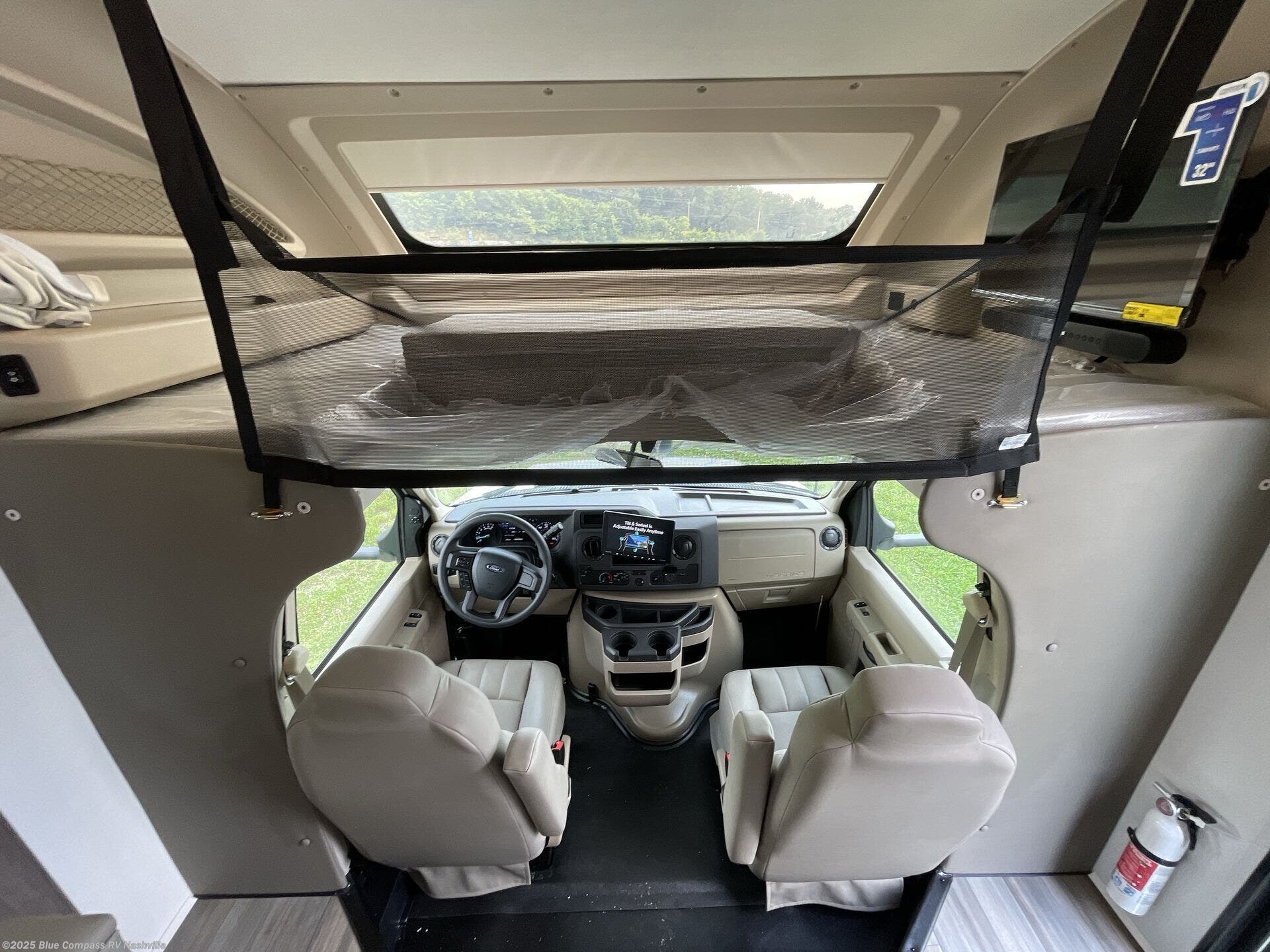 Explore new places as you travel in this coach with the comforts of home and the conveniences you are accustom to. In the rear bedroom, you will appreciate privacy when you close the divider to enjoy the walk-around queen bed with storage for your clothes. There is a private toilet and sink with the shower right across the hall so two people can freshen up at once. The chef will love the galley kitchen which is spacious thanks to the furniture slide out. The Furrion all-in-one cooktop along with the residential-size microwave, plus the 10 cu. ft. refrigerator will give the cook everything for warm meals for two or more. The driver and passenger seats swivel to become a part of the living area seating, and the cab-over bunk her will be a big plus for the little ones. You can also choose the optional theater seating in place of the sofa if you're not needing the additional sleeping space.