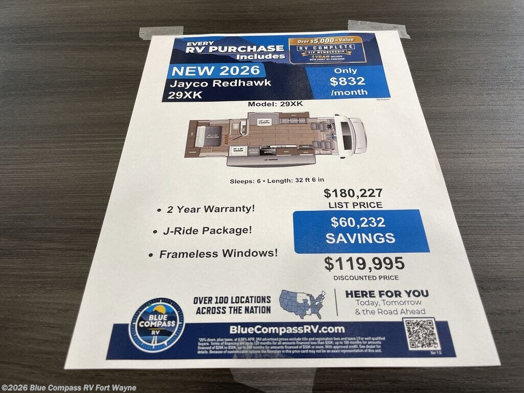 Request More Info on this 2026 Jayco Redhawk 29XK Offered for sale by Blue Compass RV Fort Wayne