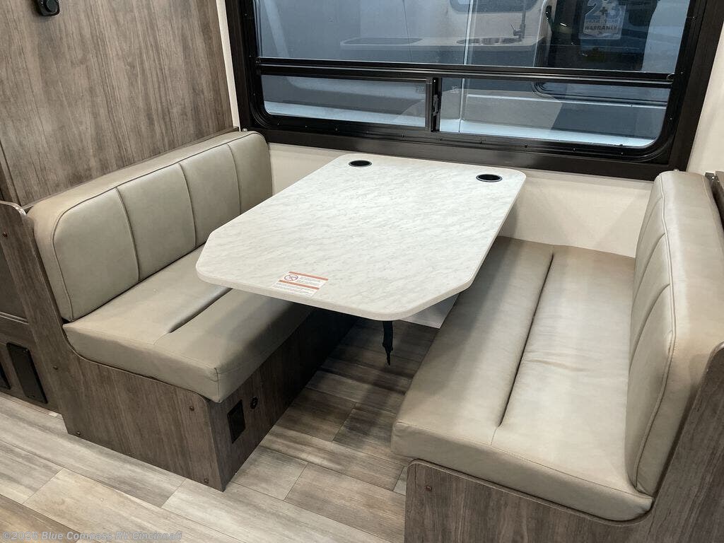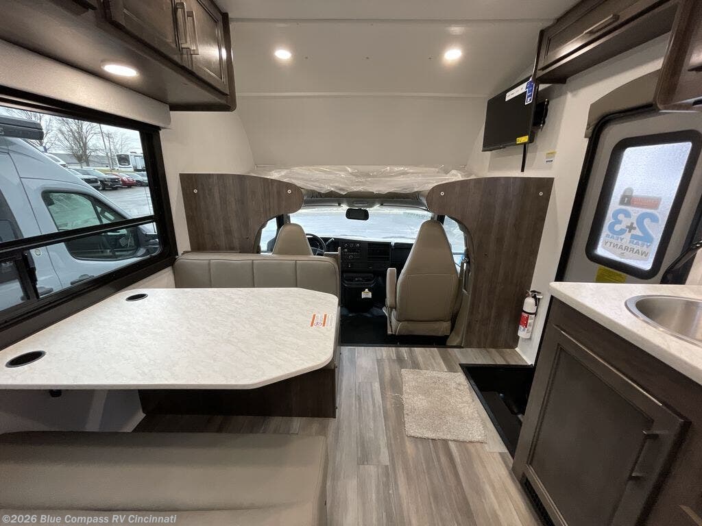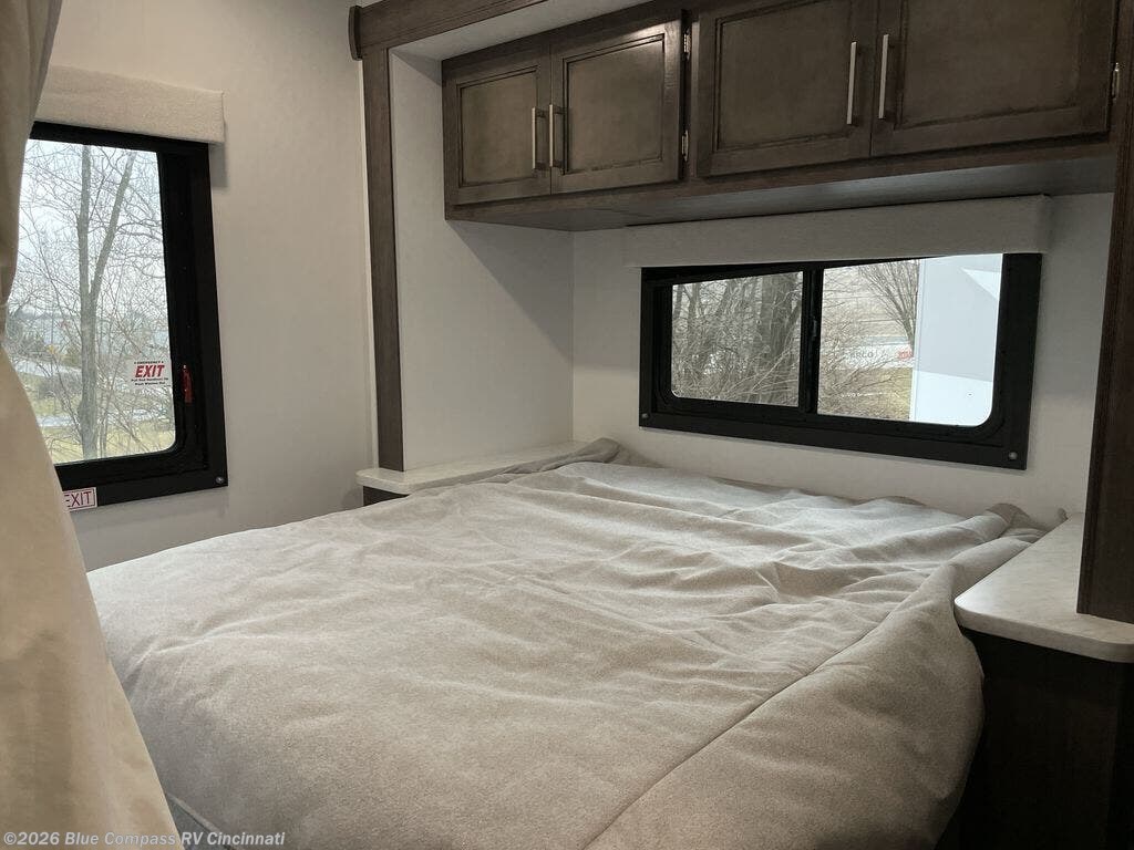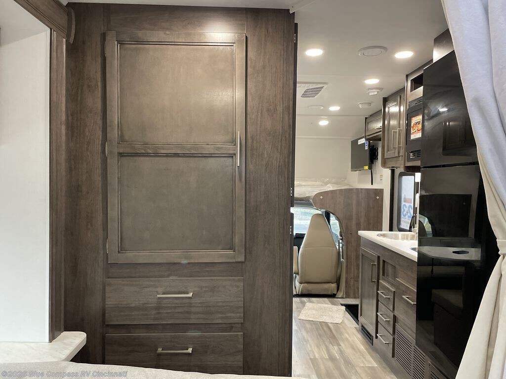 There's a comfortable place to sleep for everyone in this motorhome! From the corner 60" x 70" queen bed that slides out to the bunk over cab, and even the 42" x 70" booth dinette once converted. You can store your favorite snacks and hang up your clothes in the wardrobe/pantry. The chef can prepare delicious meals with the two burner cooktop and if there happens to be any leftovers then they can be stored in the 10 cu. ft. 12V refrigerator. The rear corner bathroom has a 24" x 36" shower that you are sure to enjoy after a long day of traveling!