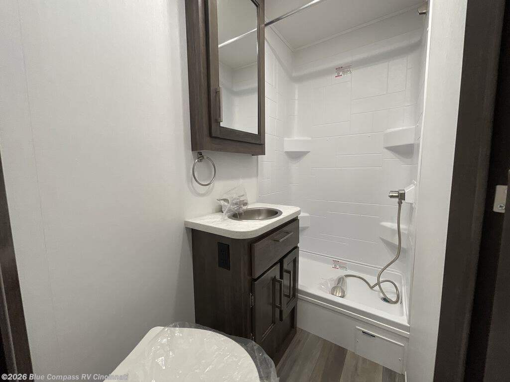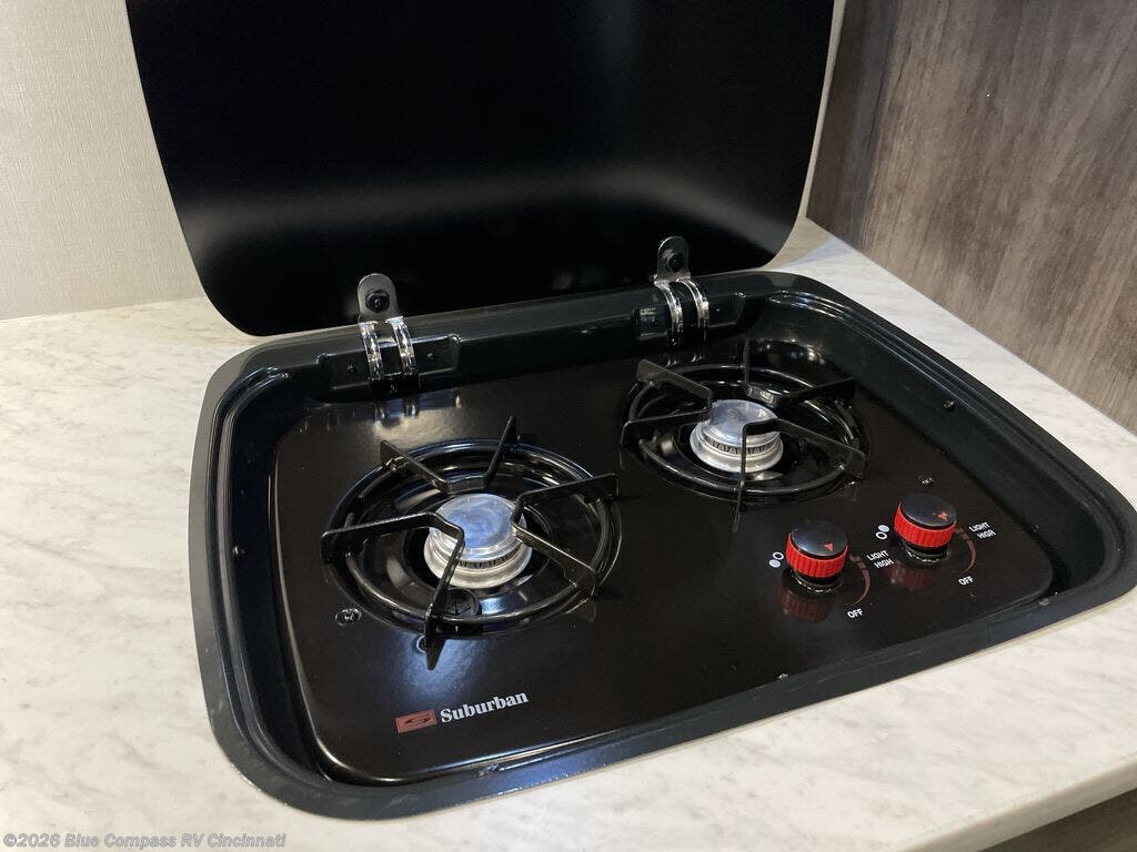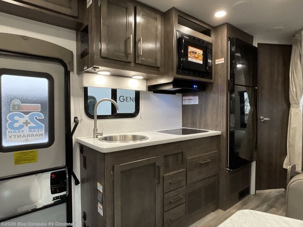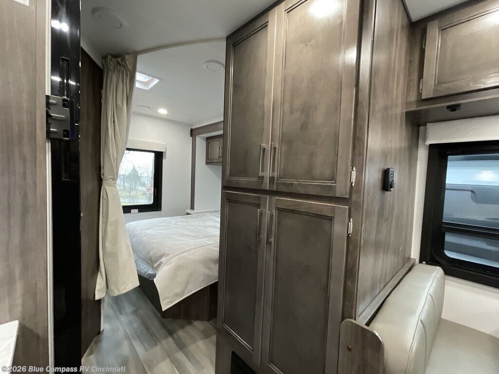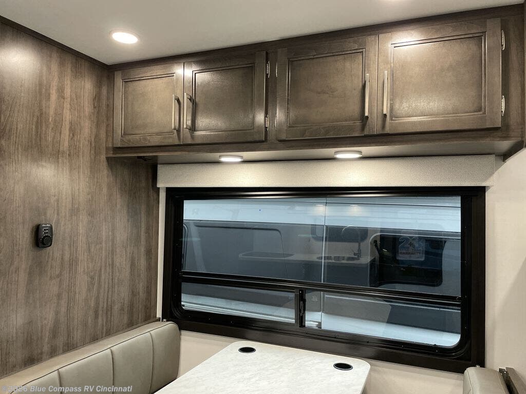 There's a comfortable place to sleep for everyone in this motorhome! From the corner 60" x 70" queen bed that slides out to the bunk over cab, and even the 42" x 70" booth dinette once converted. You can store your favorite snacks and hang up your clothes in the wardrobe/pantry. The chef can prepare delicious meals with the two burner cooktop and if there happens to be any leftovers then they can be stored in the 10 cu. ft. 12V refrigerator. The rear corner bathroom has a 24" x 36" shower that you are sure to enjoy after a long day of traveling!
