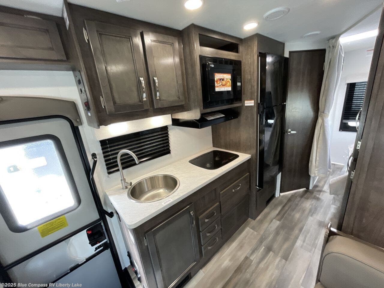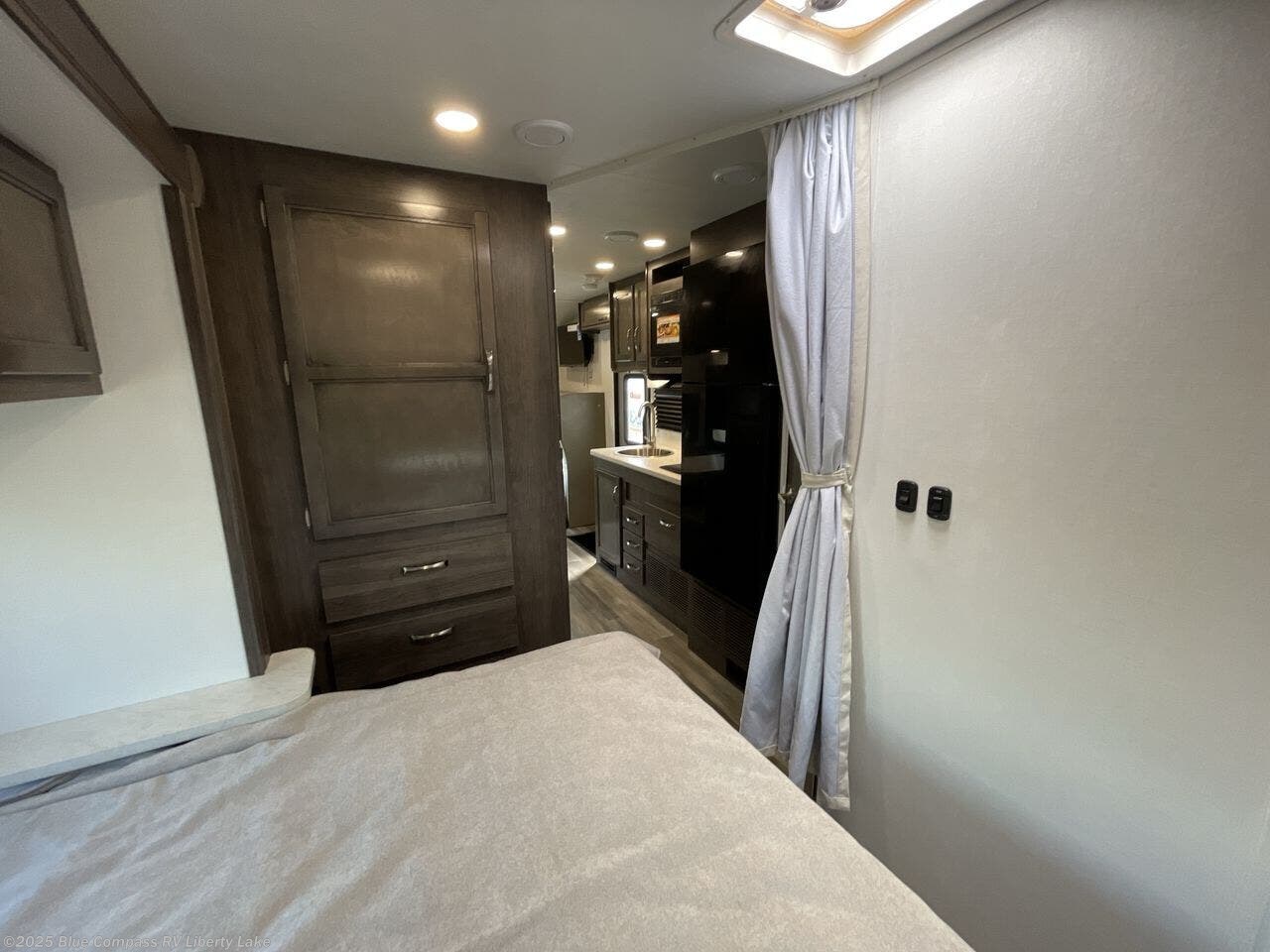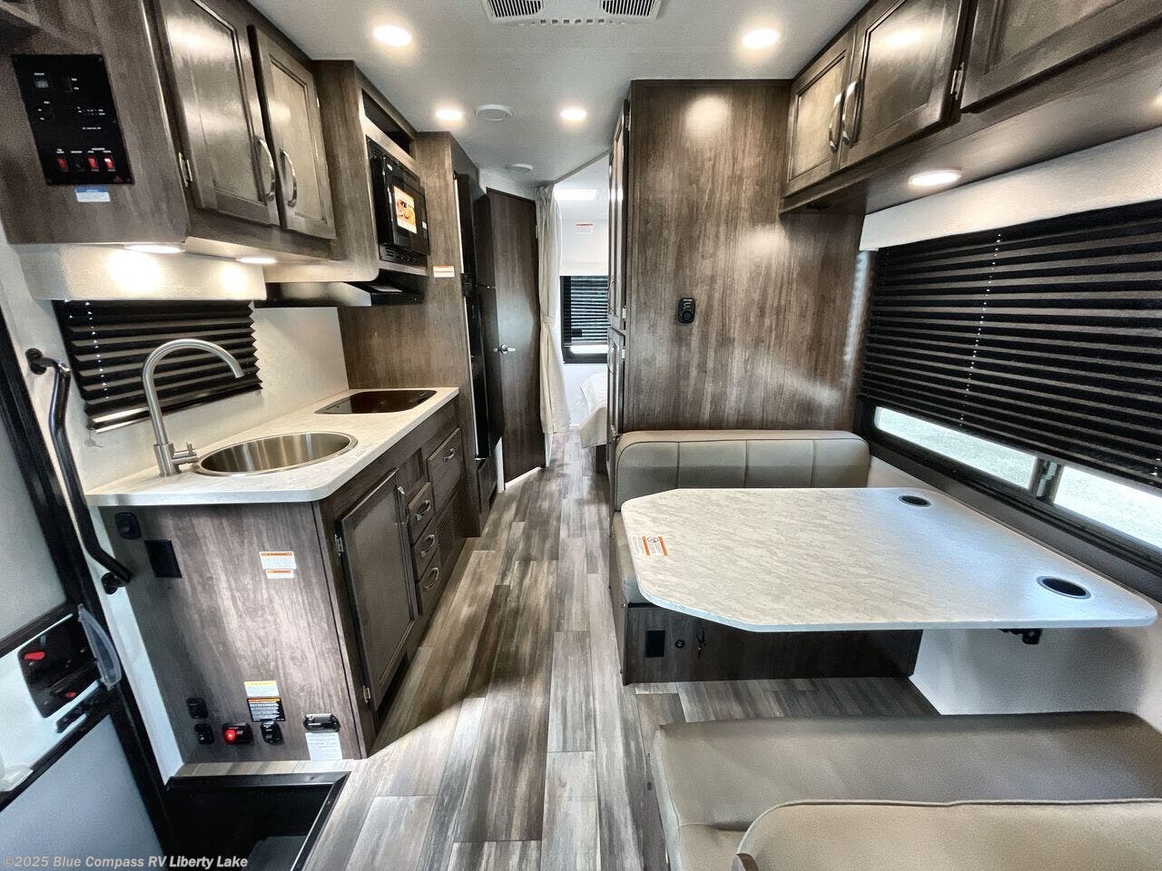 There's a comfortable place to sleep for everyone in this motorhome! From the corner 60" x 70" queen bed that slides out to the bunk over cab, and even the 42" x 70" booth dinette once converted. You can store your favorite snacks and hang up your clothes in the wardrobe/pantry. The chef can prepare delicious meals with the two burner cooktop and if there happens to be any leftovers then they can be stored in the 10 cu. ft. 12V refrigerator. The rear corner bathroom has a 24" x 36" shower that you are sure to enjoy after a long day of traveling!