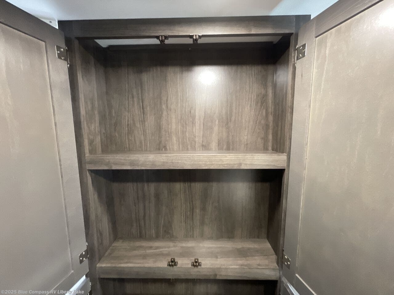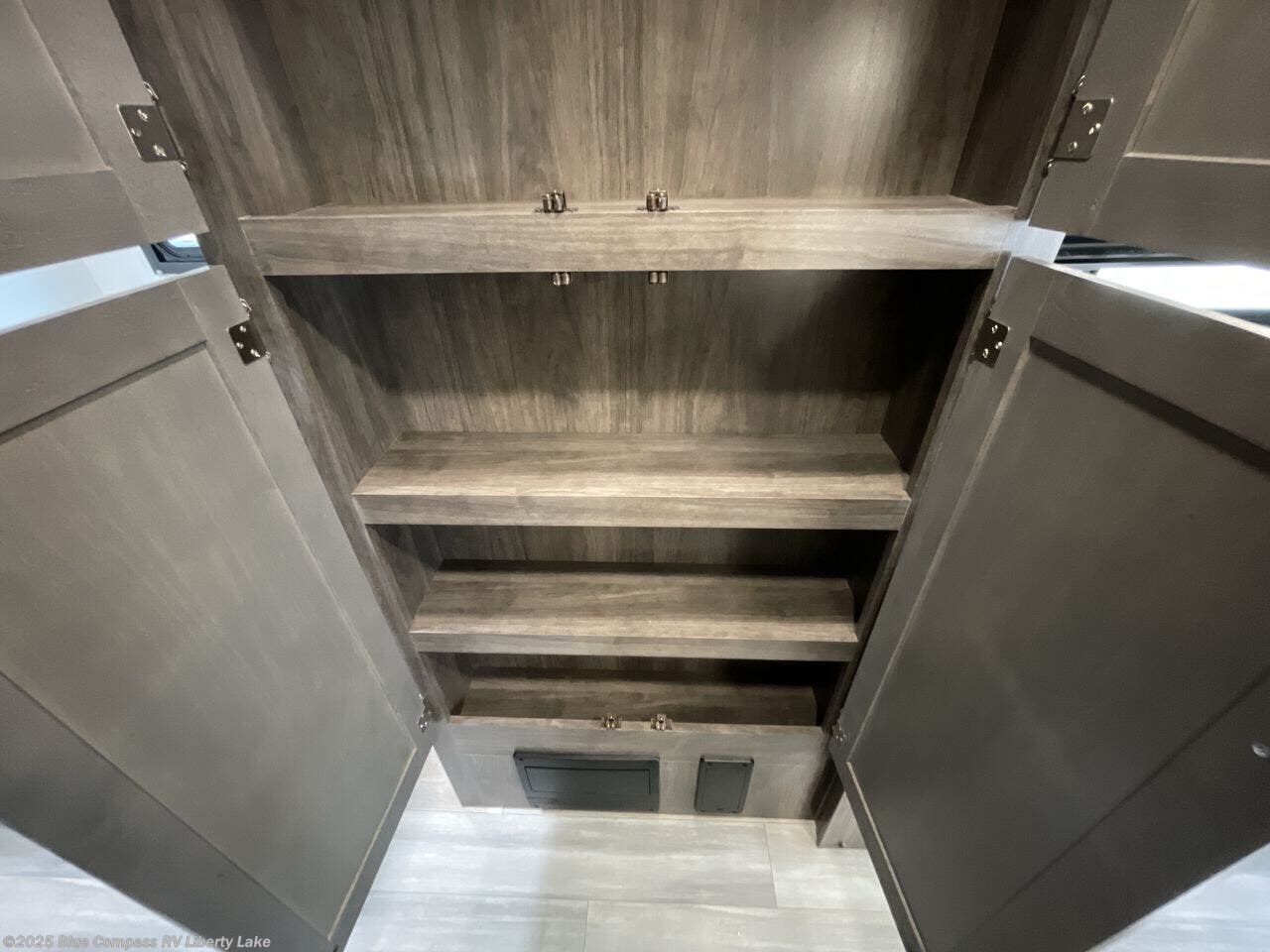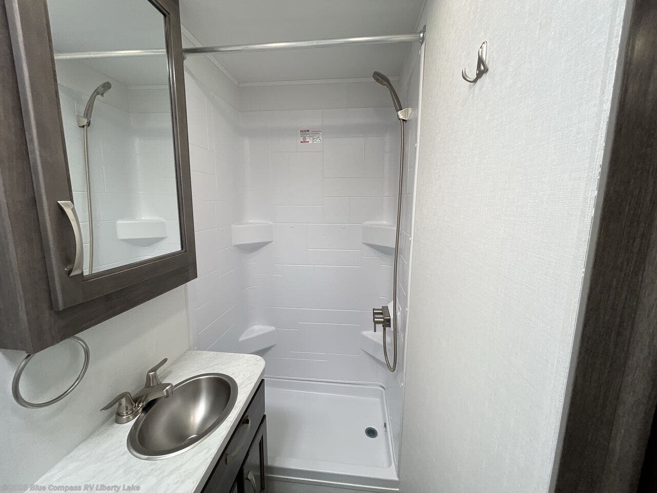 There's a comfortable place to sleep for everyone in this motorhome! From the corner 60" x 70" queen bed that slides out to the bunk over cab, and even the 42" x 70" booth dinette once converted. You can store your favorite snacks and hang up your clothes in the wardrobe/pantry. The chef can prepare delicious meals with the two burner cooktop and if there happens to be any leftovers then they can be stored in the 10 cu. ft. 12V refrigerator. The rear corner bathroom has a 24" x 36" shower that you are sure to enjoy after a long day of traveling!