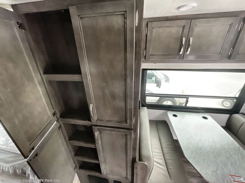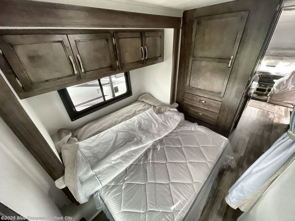There's a comfortable place to sleep for everyone in this motorhome! From the corner 60" x 70" queen bed that slides out to the bunk over cab, and even the 42" x 70" booth dinette once converted. You can store your favorite snacks and hang up your clothes in the wardrobe/pantry. The chef can prepare delicious meals with the two burner cooktop and if there happens to be any leftovers then they can be stored in the 10 cu. ft. 12V refrigerator. The rear corner bathroom has a 24" x 36" shower that you are sure to enjoy after a long day of traveling!