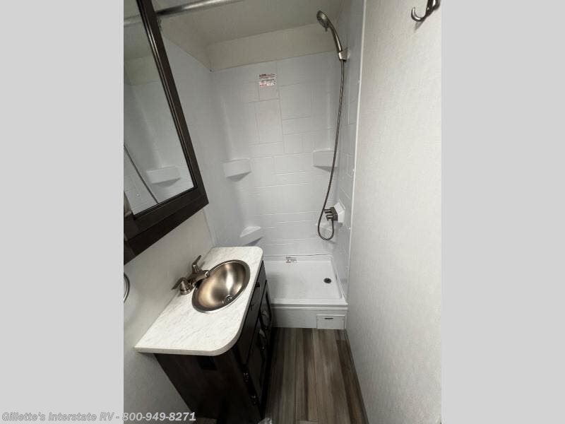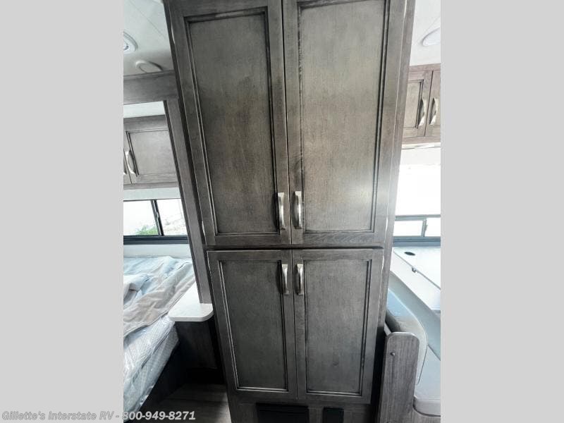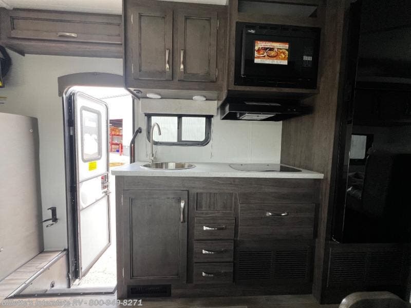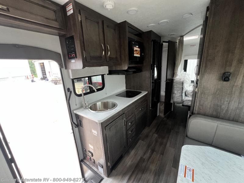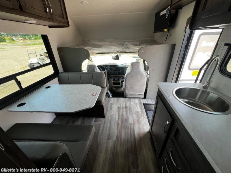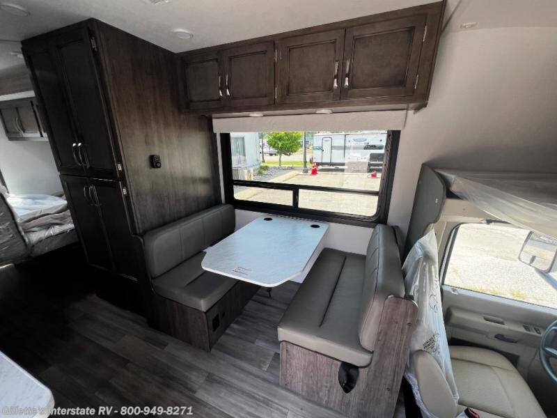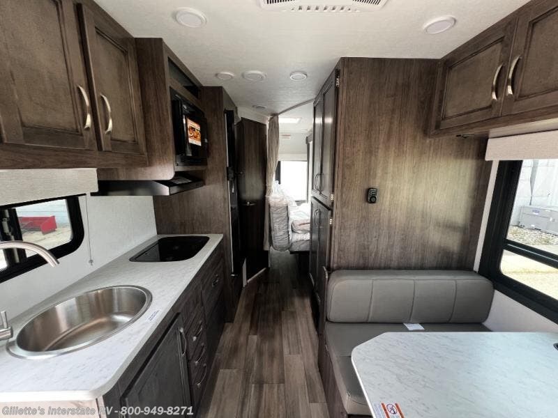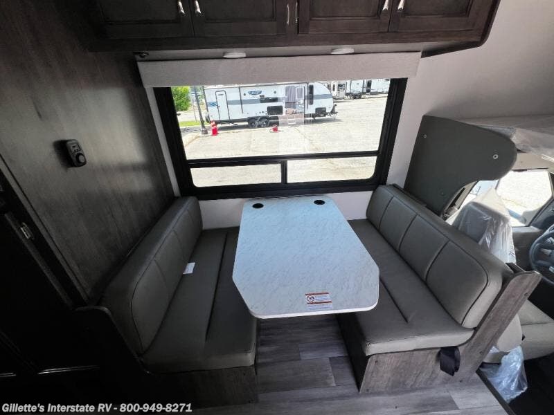 There's a comfortable place to sleep for everyone in this motorhome! From the corner 60" x 70" queen bed that slides out to the bunk over cab, and even the 42" x 70" booth dinette once converted. You can store your favorite snacks and hang up your clothes in the wardrobe/pantry. The chef can prepare delicious meals with the two burner cooktop and if there happens to be any leftovers then they can be stored in the 10 cu. ft. 12V refrigerator. The rear corner bathroom has a 24" x 36" shower that you are sure to enjoy after a long day of traveling!