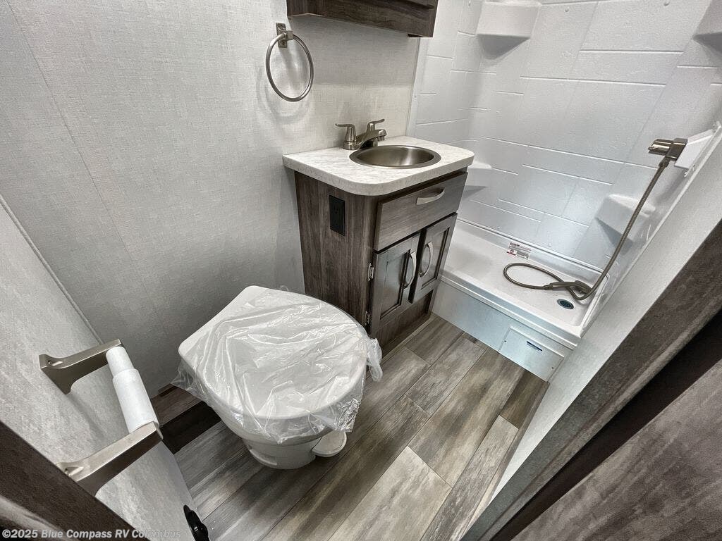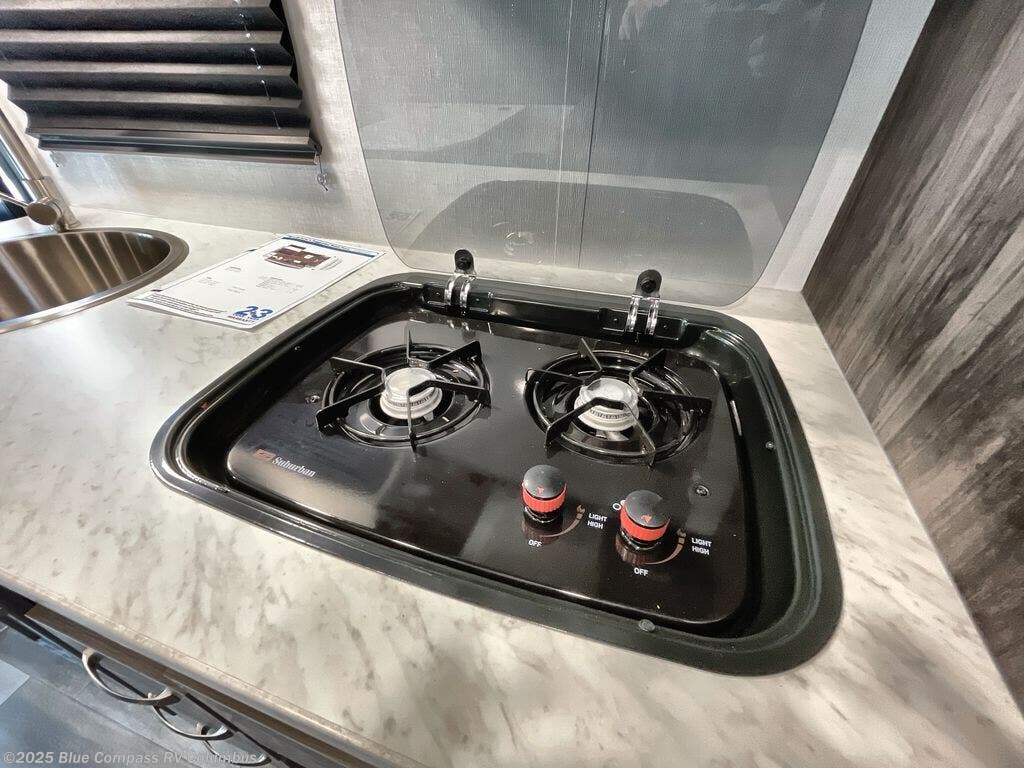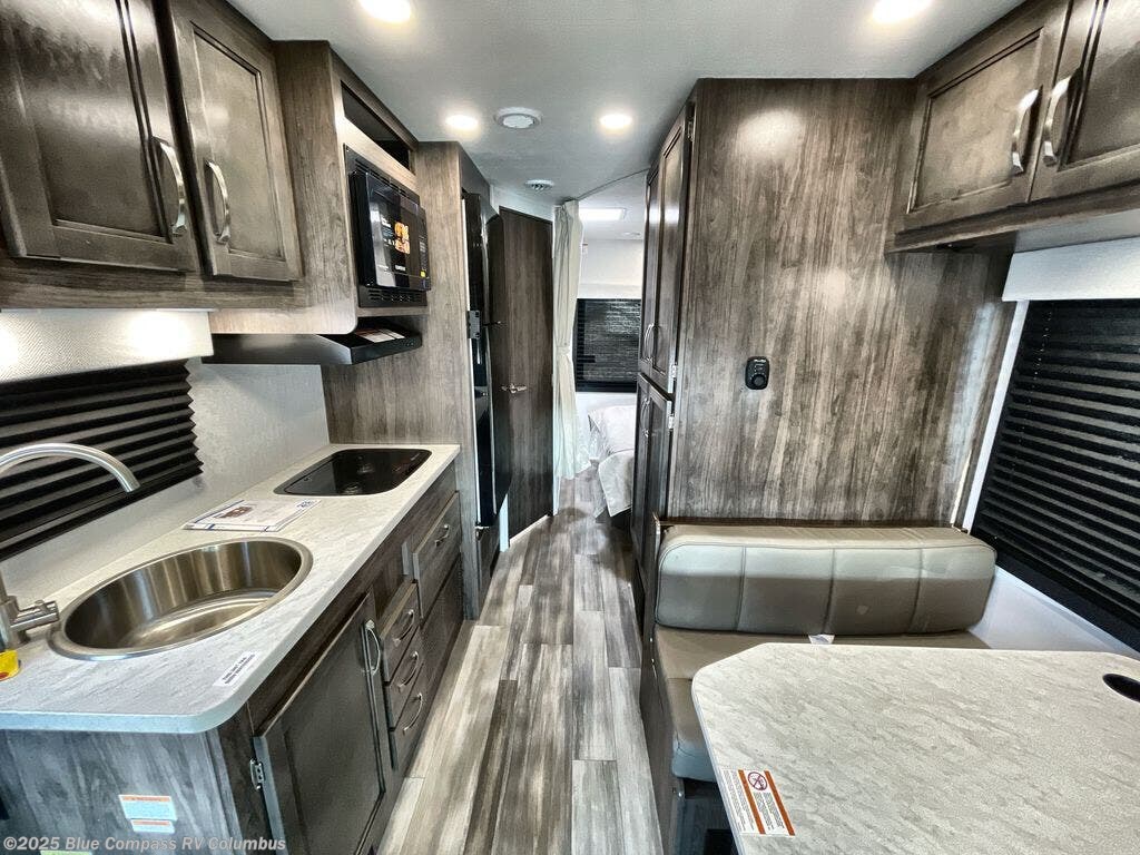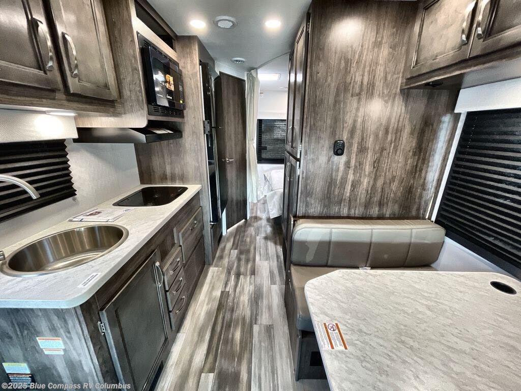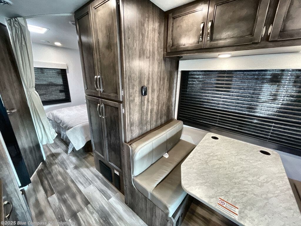 There's a comfortable place to sleep for everyone in this motorhome! From the corner 60" x 70" queen bed that slides out to the bunk over cab, and even the 42" x 70" booth dinette once converted. You can store your favorite snacks and hang up your clothes in the wardrobe/pantry. The chef can prepare delicious meals with the two burner cooktop and if there happens to be any leftovers then they can be stored in the 10 cu. ft. 12V refrigerator. The rear corner bathroom has a 24" x 36" shower that you are sure to enjoy after a long day of traveling!