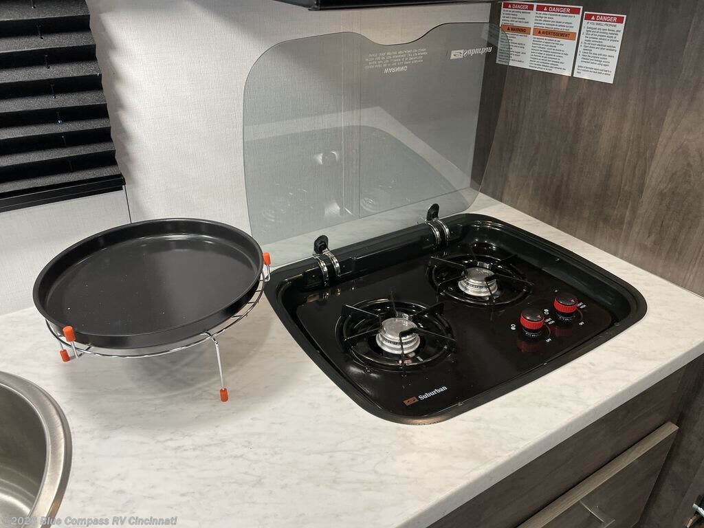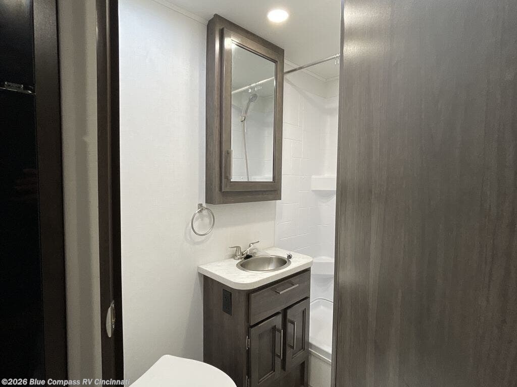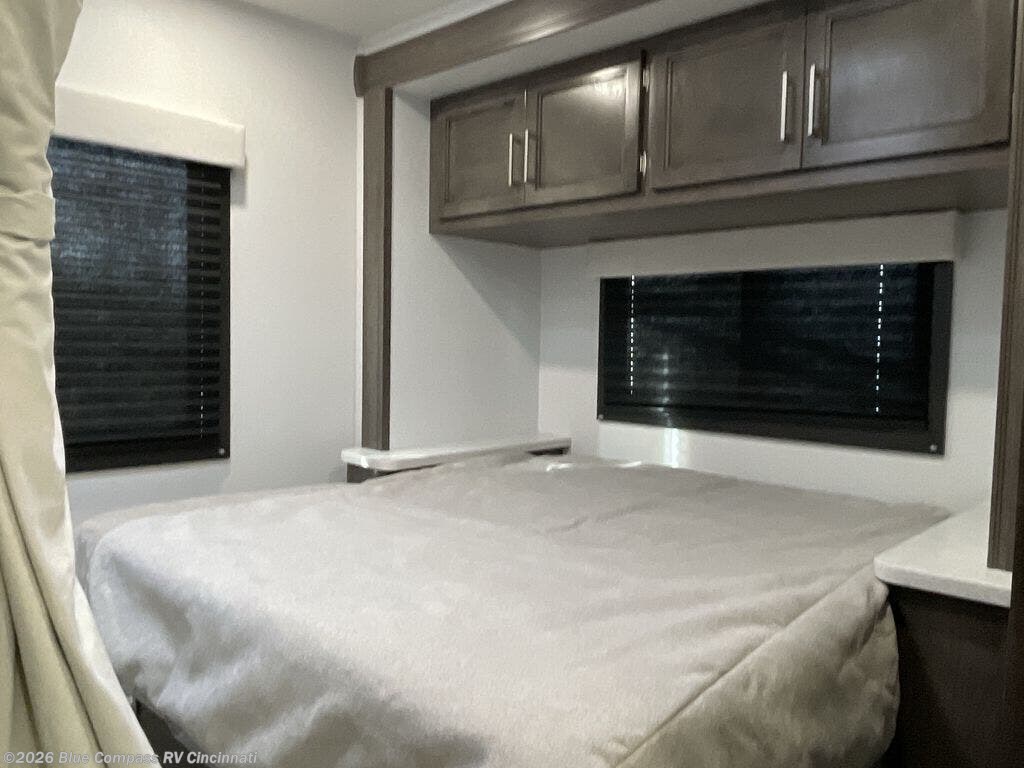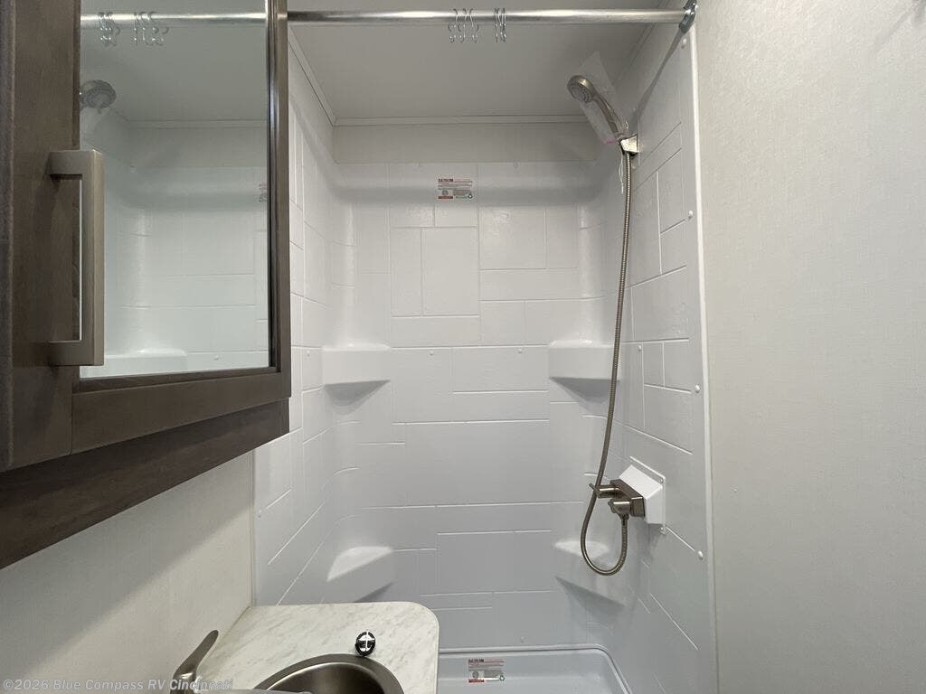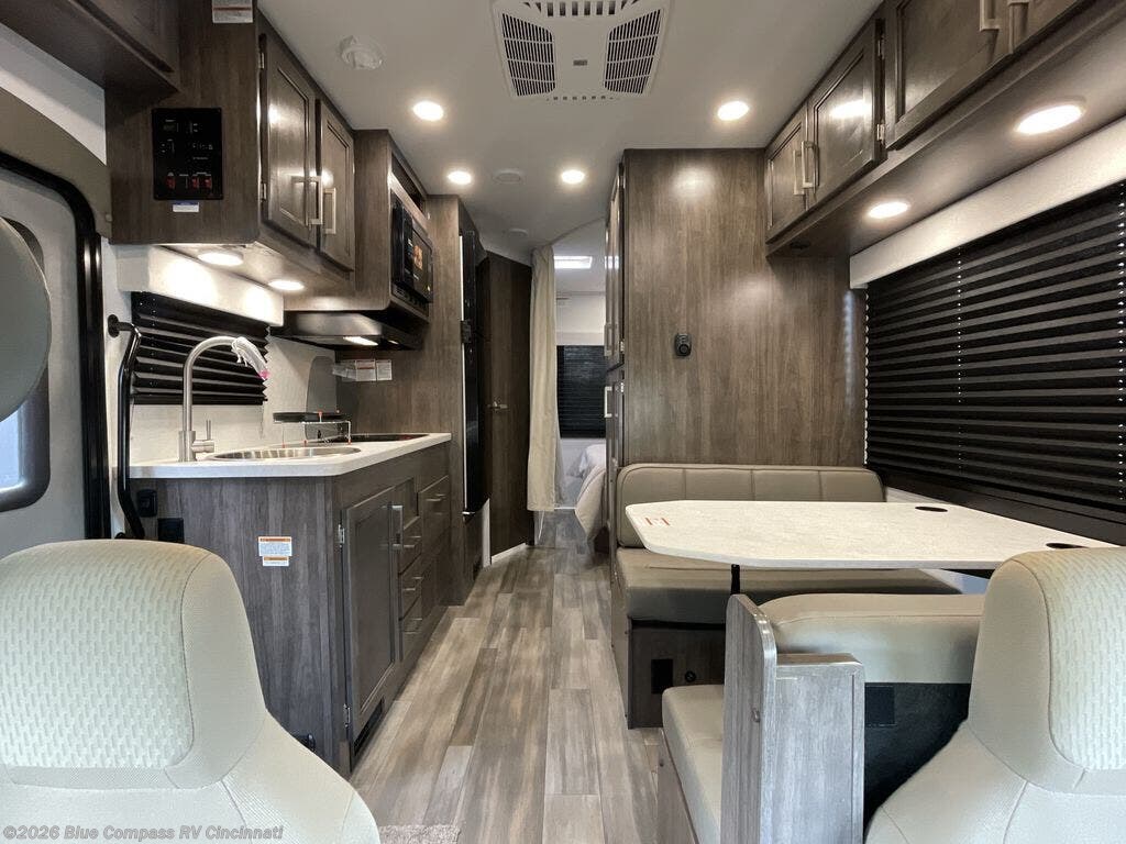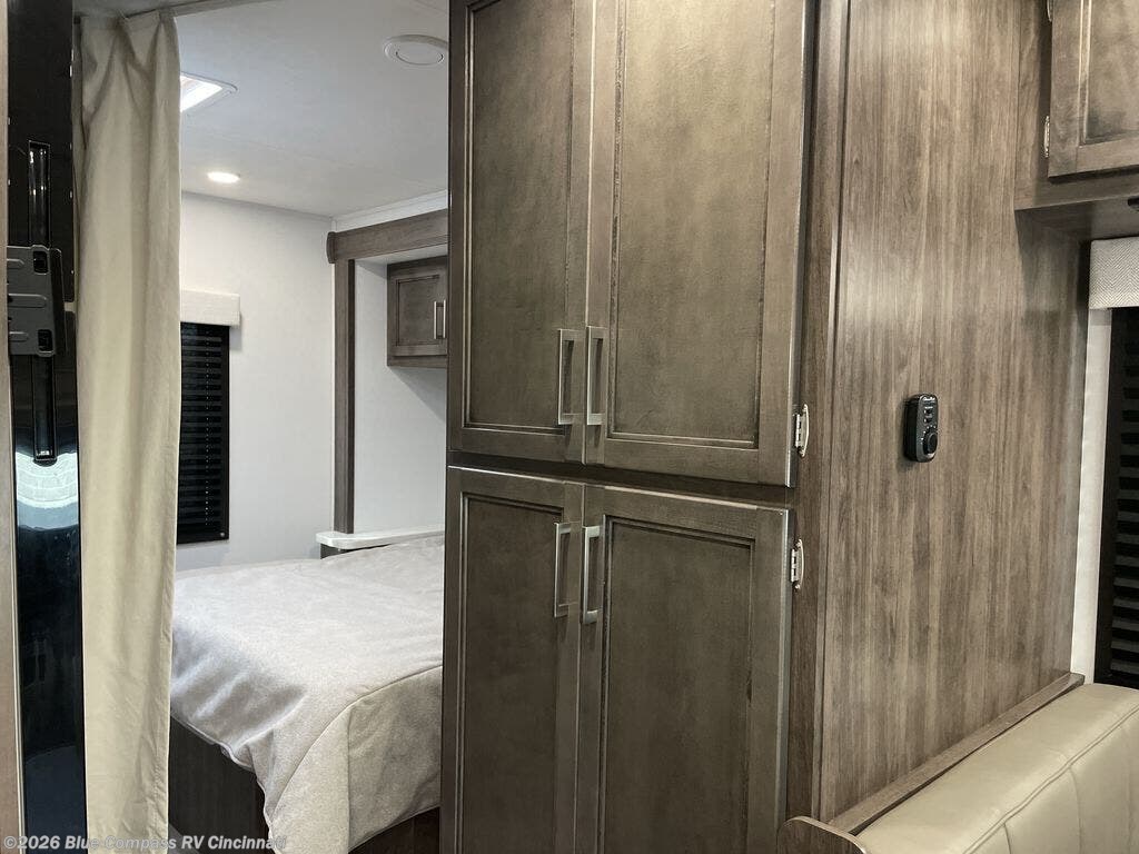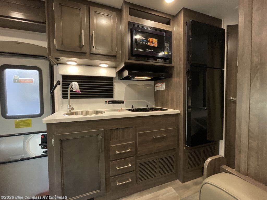 There's a comfortable place to sleep for everyone in this motorhome! From the corner 60" x 70" queen bed that slides out to the bunk over cab, and even the 42" x 70" booth dinette once converted. You can store your favorite snacks and hang up your clothes in the wardrobe/pantry. The chef can prepare delicious meals with the two burner cooktop and if there happens to be any leftovers then they can be stored in the 10 cu. ft. 12V refrigerator. The rear corner bathroom has a 24" x 36" shower that you are sure to enjoy after a long day of traveling!