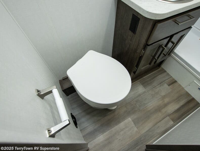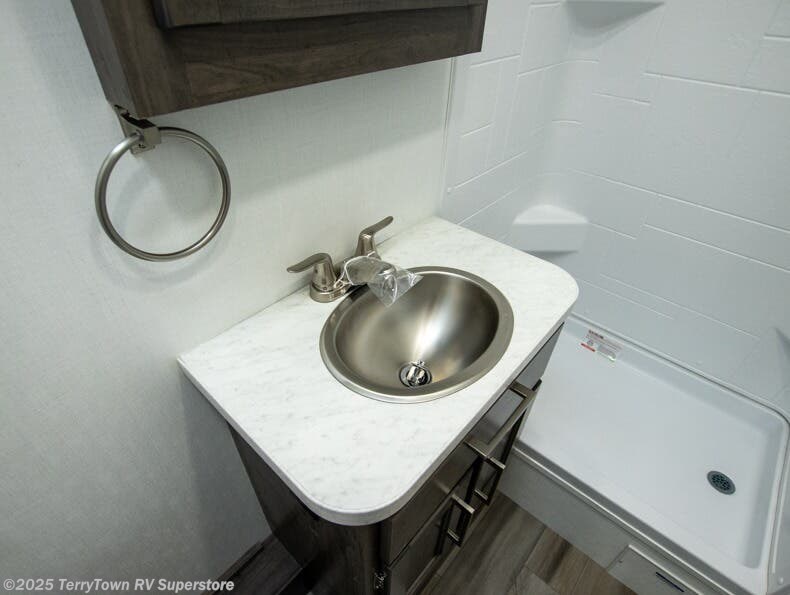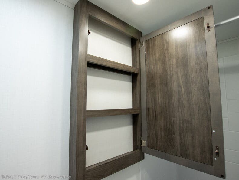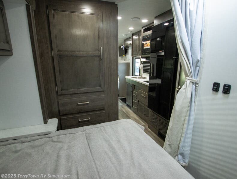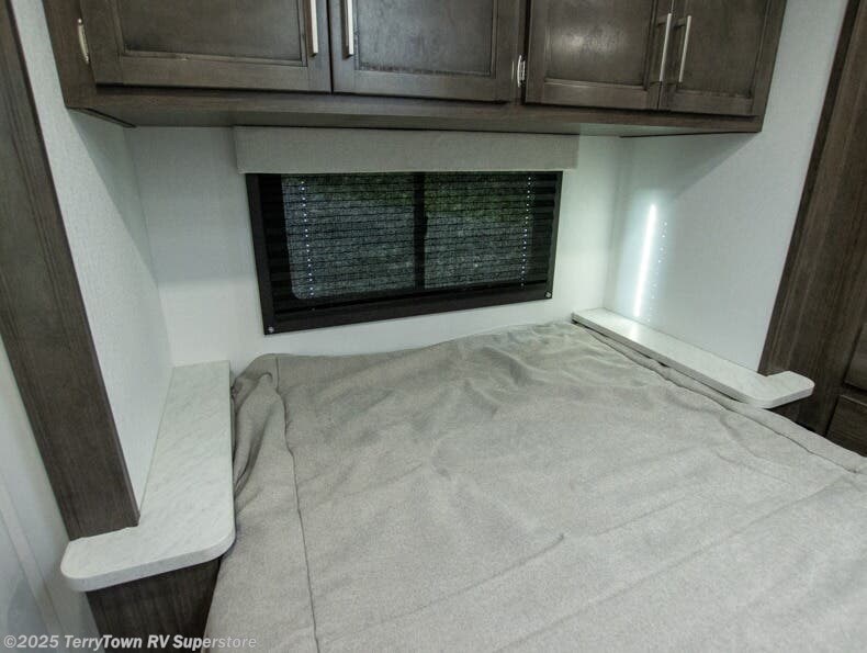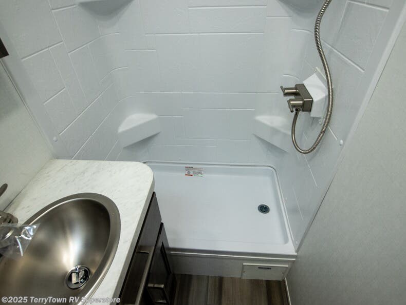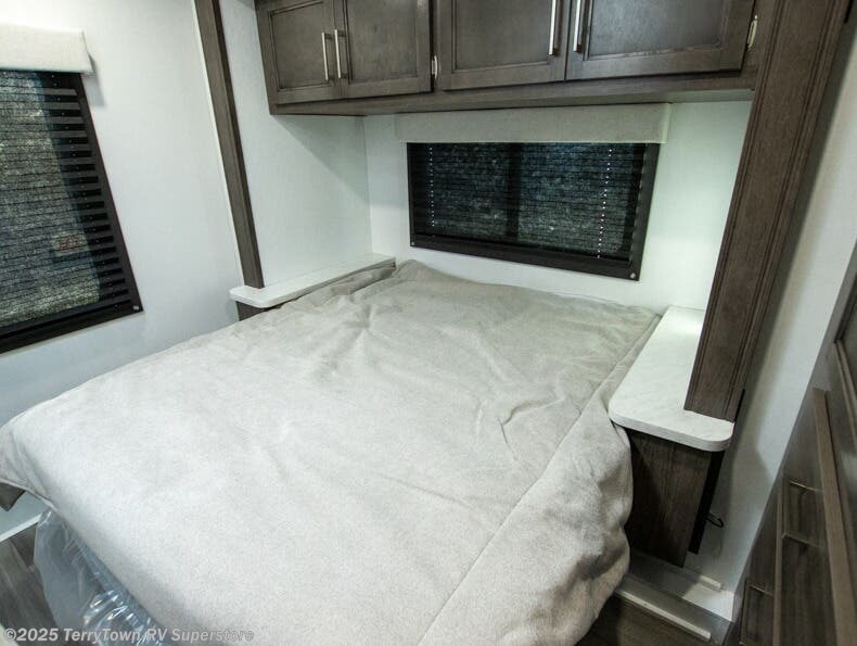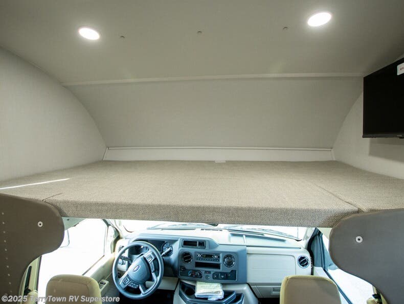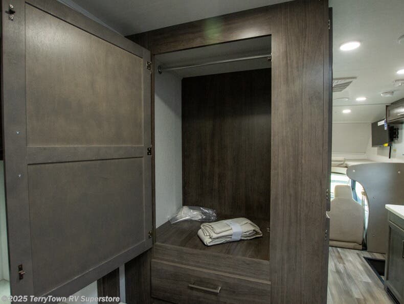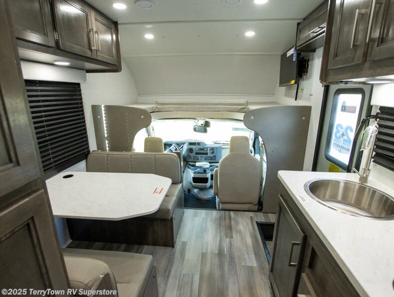 There's a comfortable place to sleep for everyone in this motorhome! From the corner 60" x 70" queen bed that slides out to the bunk over cab, and even the 42" x 70" booth dinette once converted. You can store your favorite snacks and hang up your clothes in the wardrobe/pantry. The chef can prepare delicious meals with the two burner cooktop and if there happens to be any leftovers then they can be stored in the 10 cu. ft. 12V refrigerator. The rear corner bathroom has a 24" x 36" shower that you are sure to enjoy after a long day of traveling!